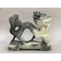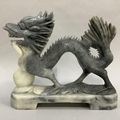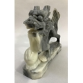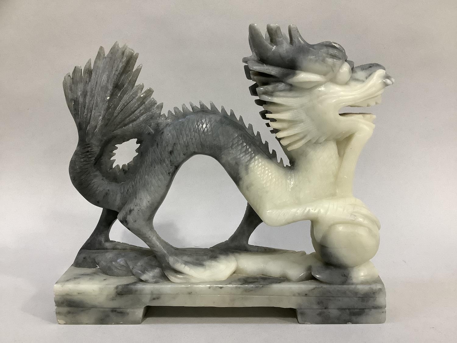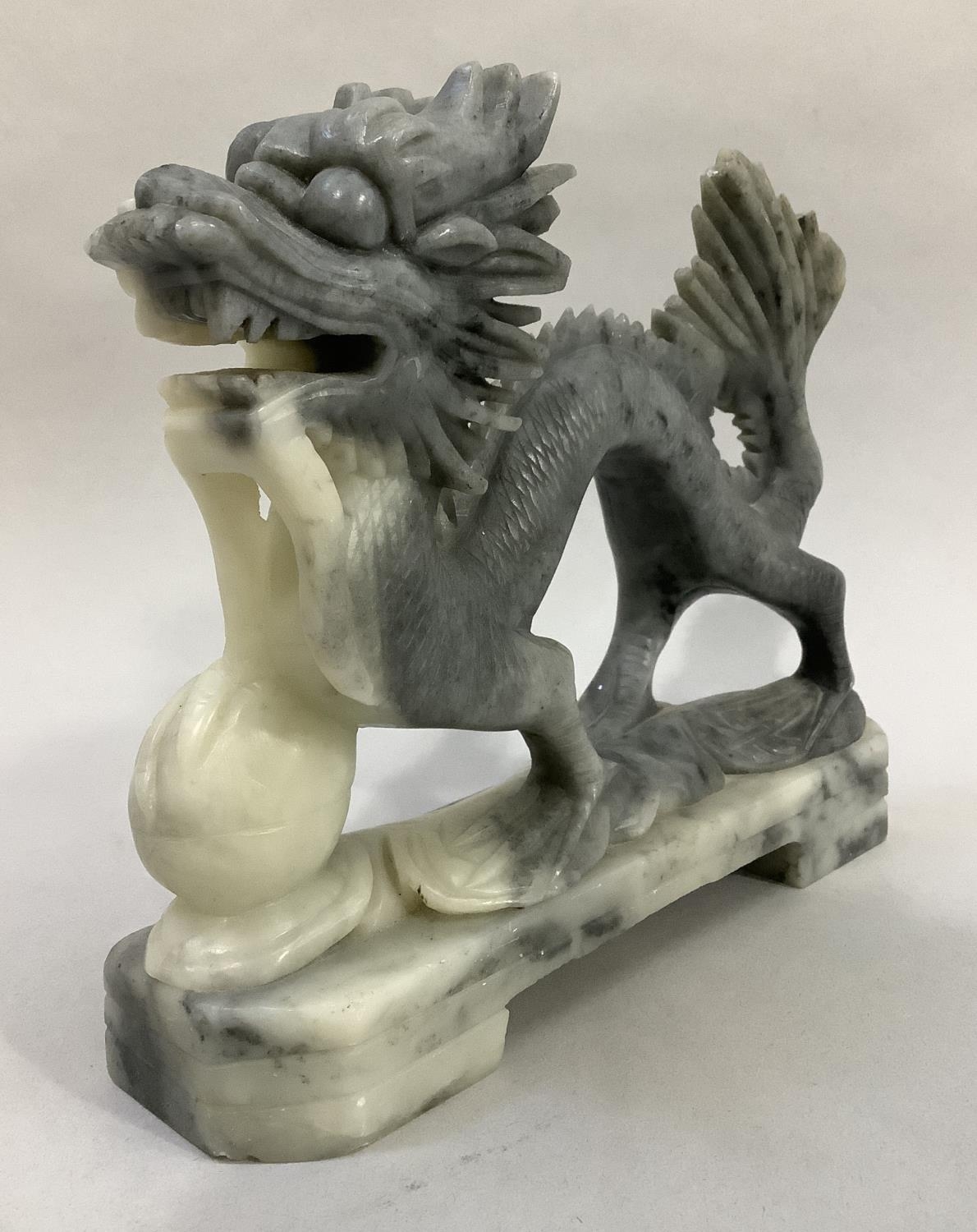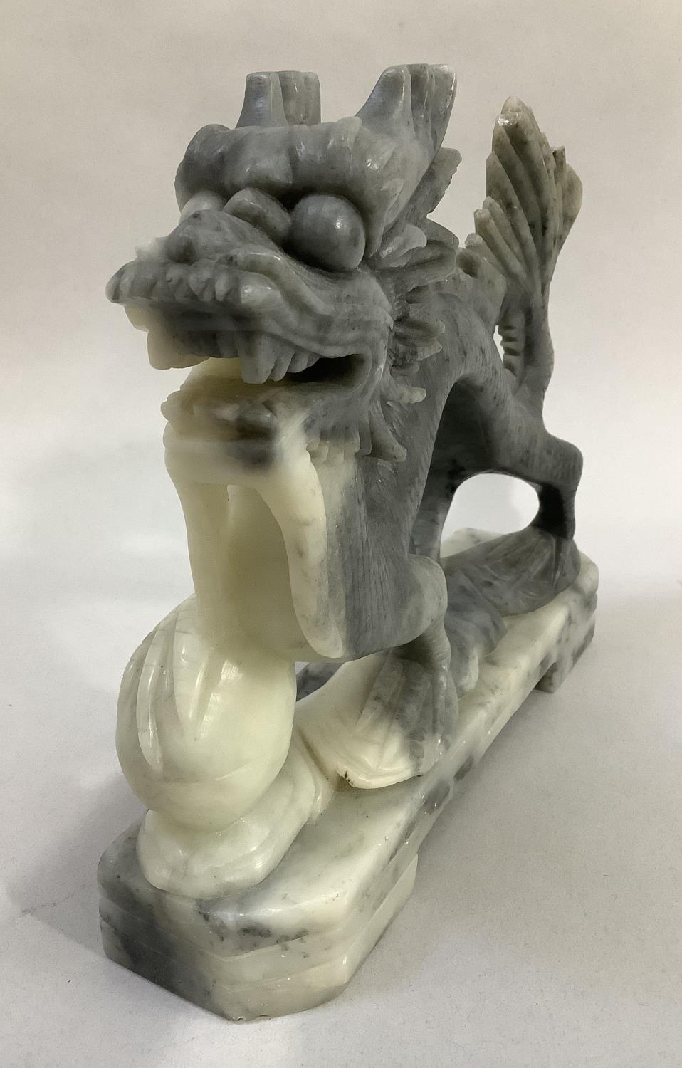 A Chinese soapstone carving of a dragon with pearl, 20.5cm long x 18cm high