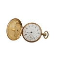 An early 20th century American Waltham 14k hunter keyless pocket watch, with Arabic dial and subsidiary seconds, the case front and back decorated with cottage scene amid scrolling foliage, case diameter 48mm, gross weight 88 grams.