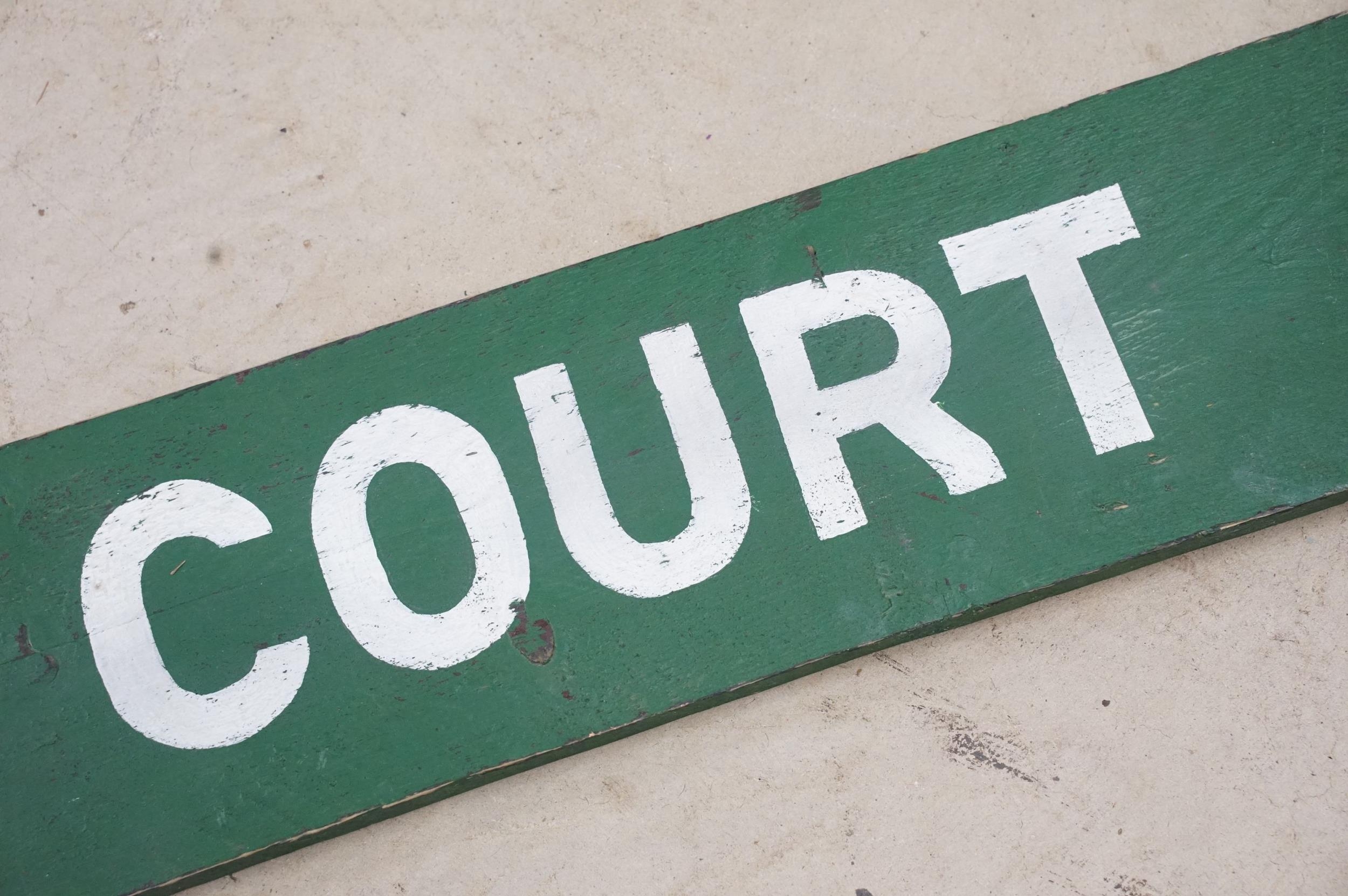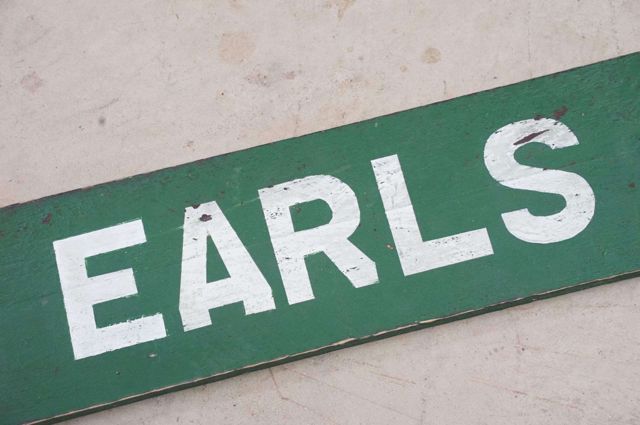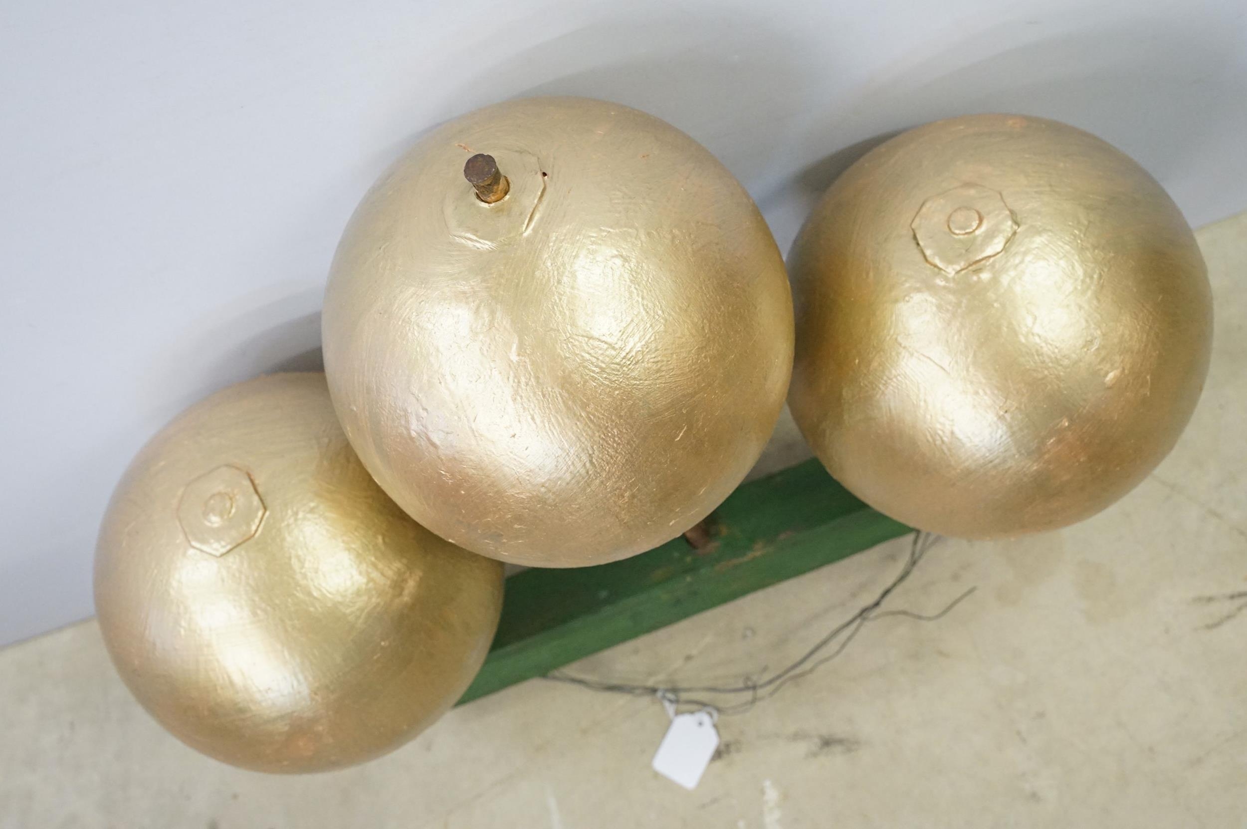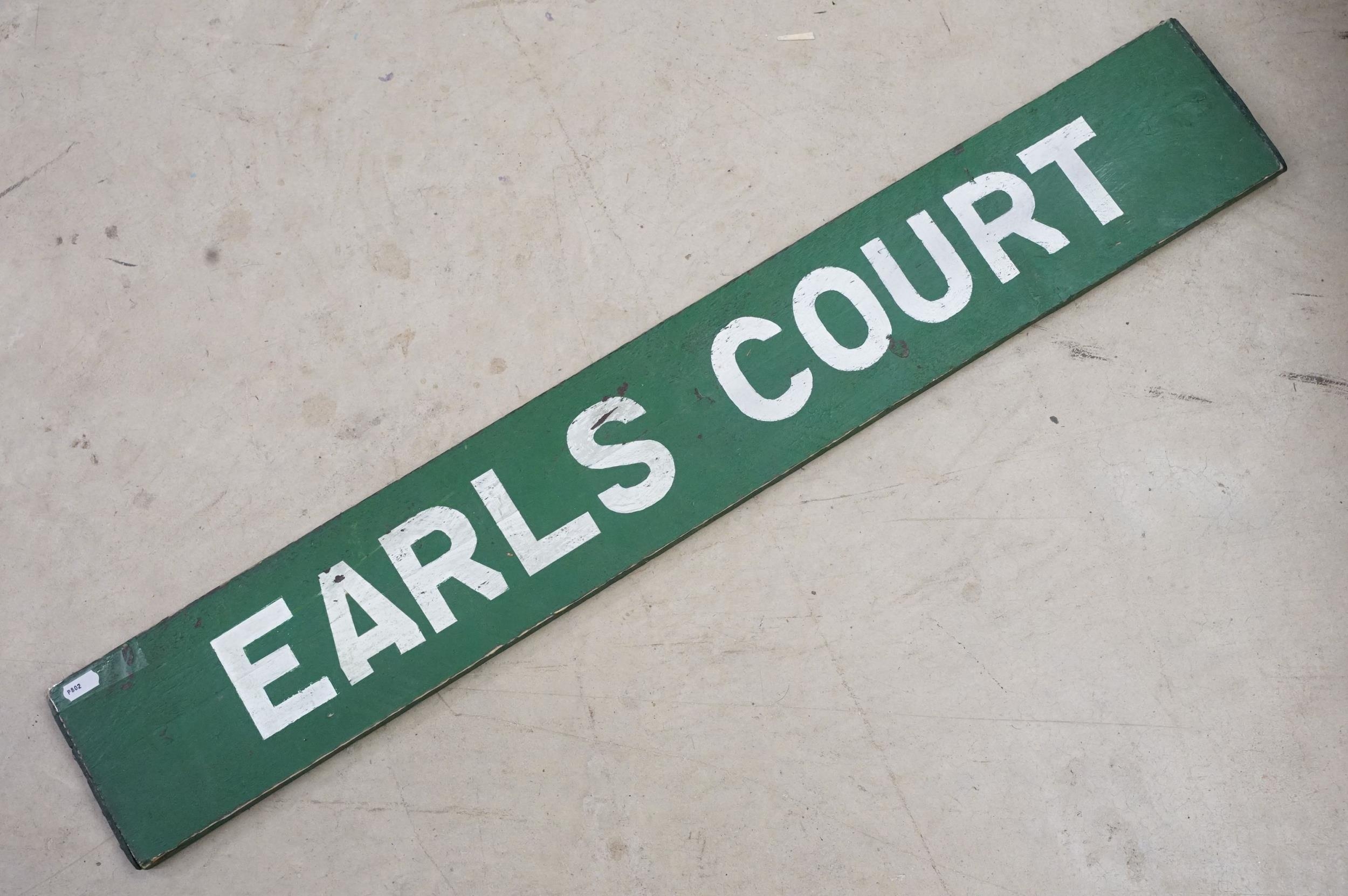 1950s pawn brokers painted glass golden balls on wooden hanger, together with a painted District Line Earls Court sign Circa 1920s