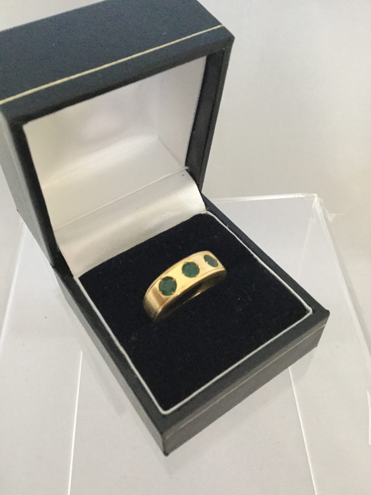 An emerald three stone ring -