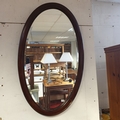 An oval wall mirror, with bevelled plate -