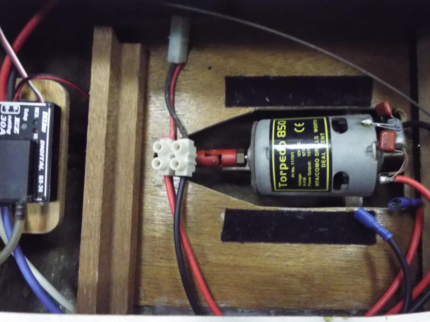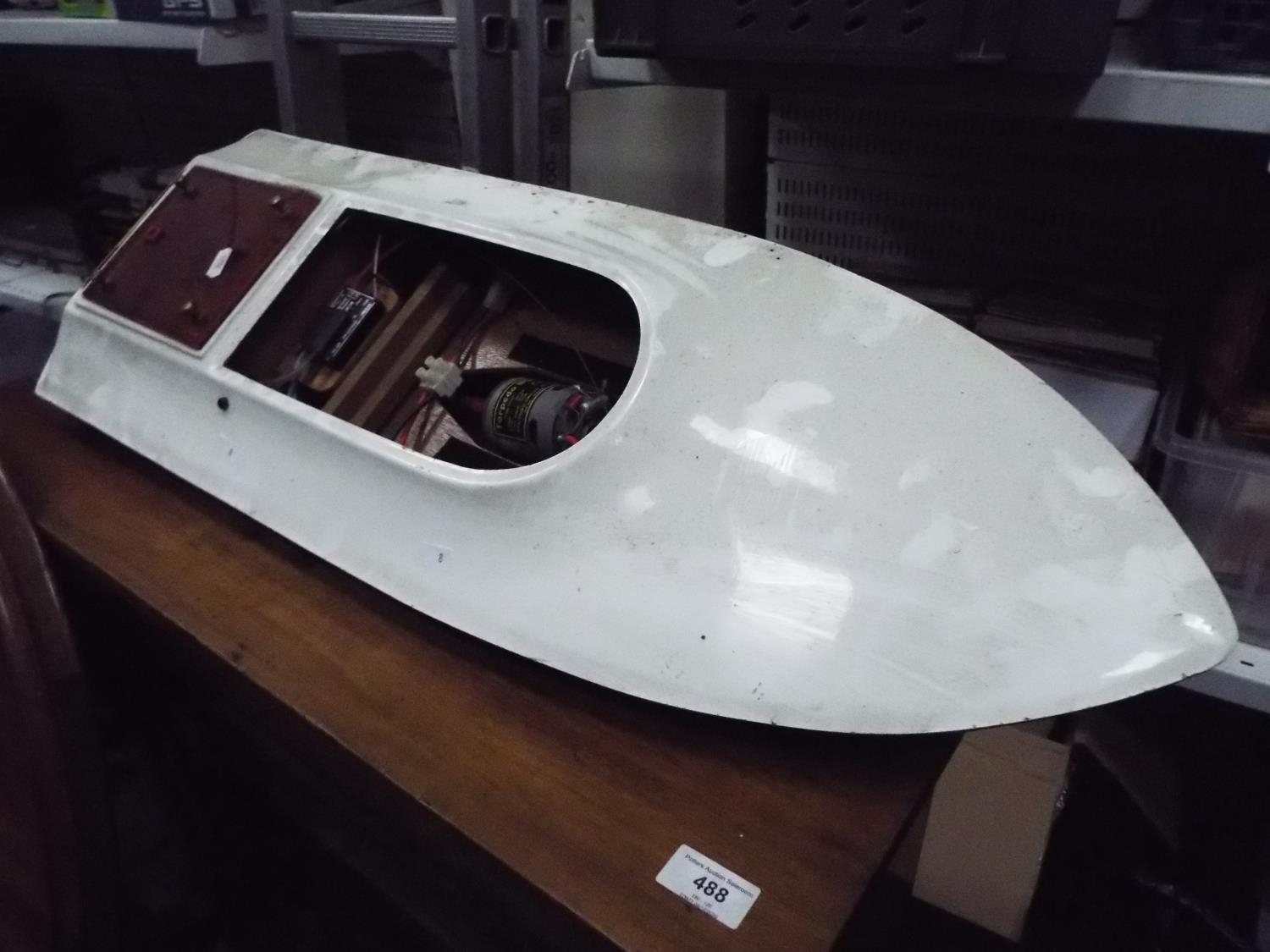 Racing Model power boat with Torpedo 850 electric motor 32 inches long. Working condition unknown.