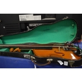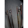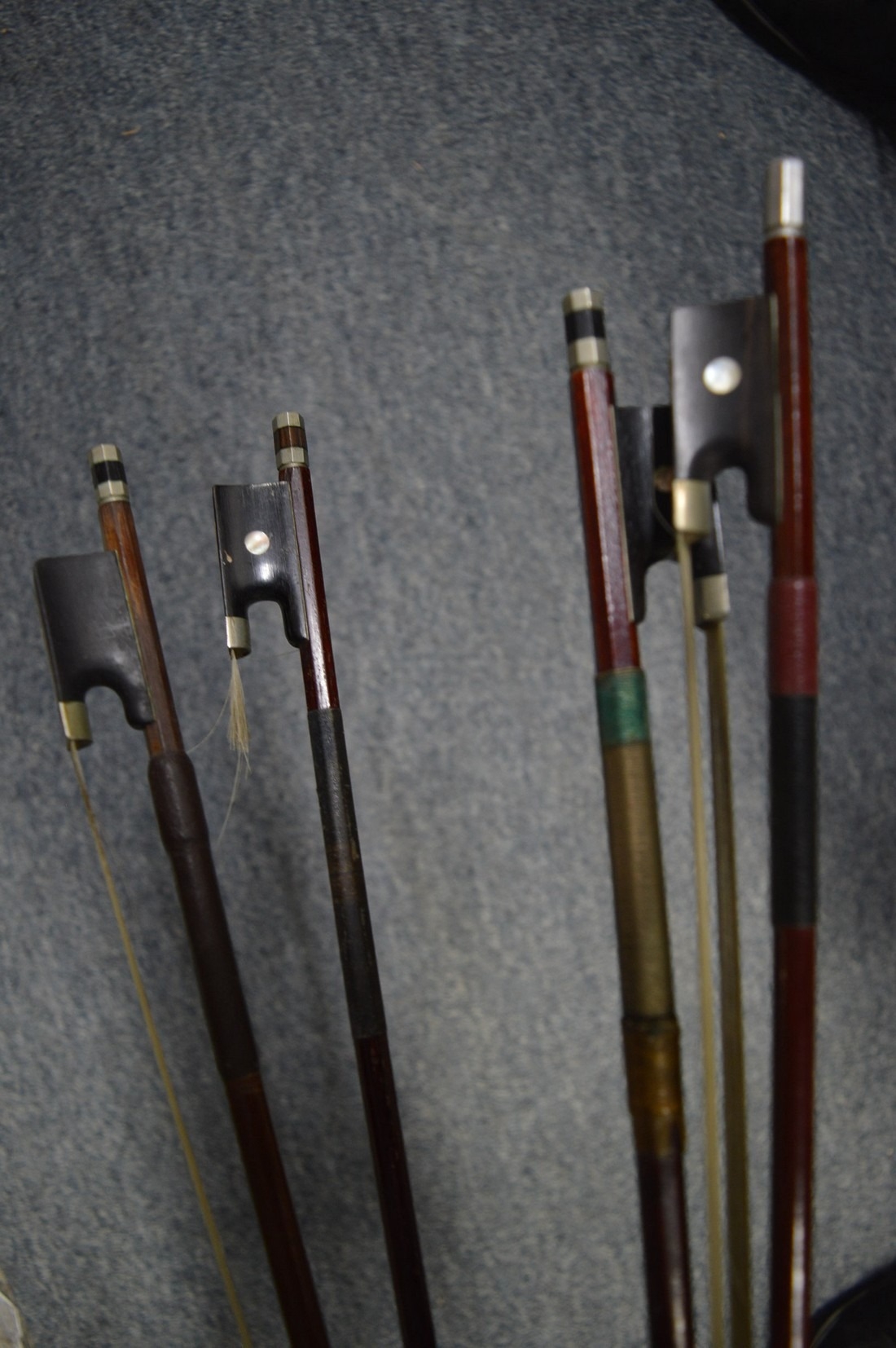 A violin and four various bows.