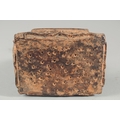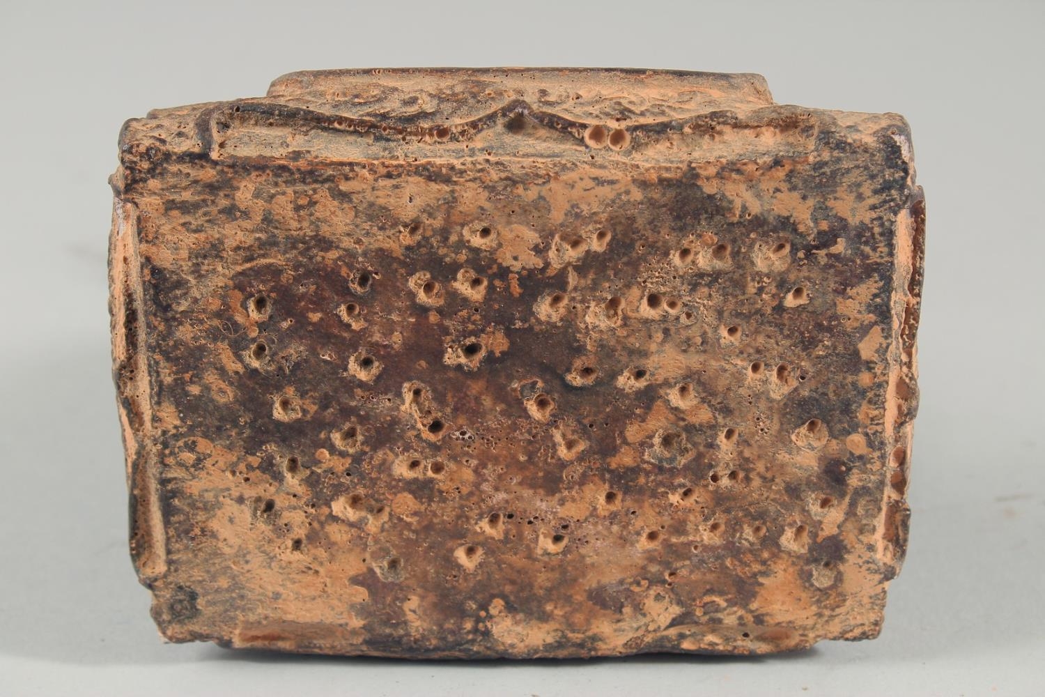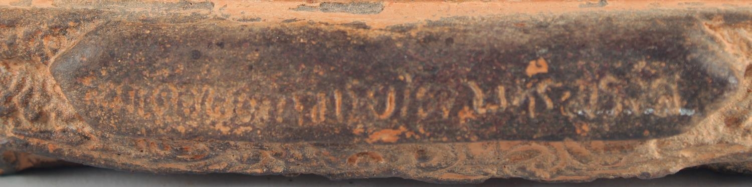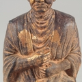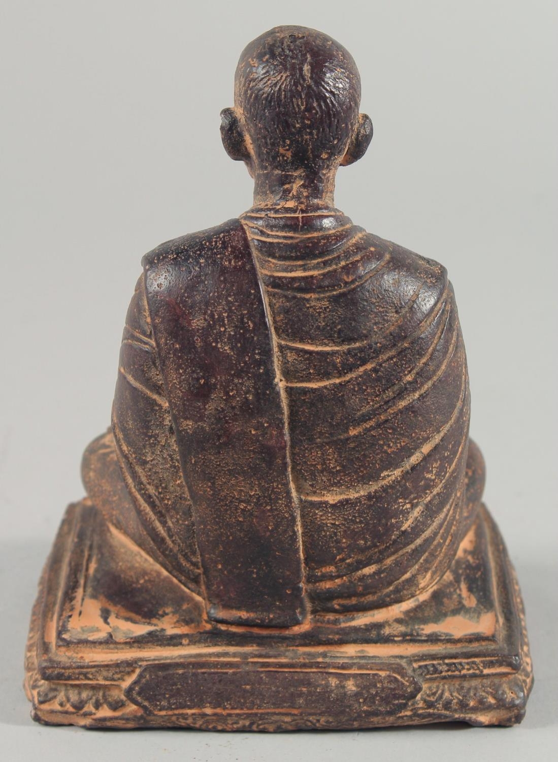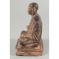 A TIBETAN CARVED STONE SEATED FIGURE, with traces of gold paint, inscribed to the base, 18.5cm high.