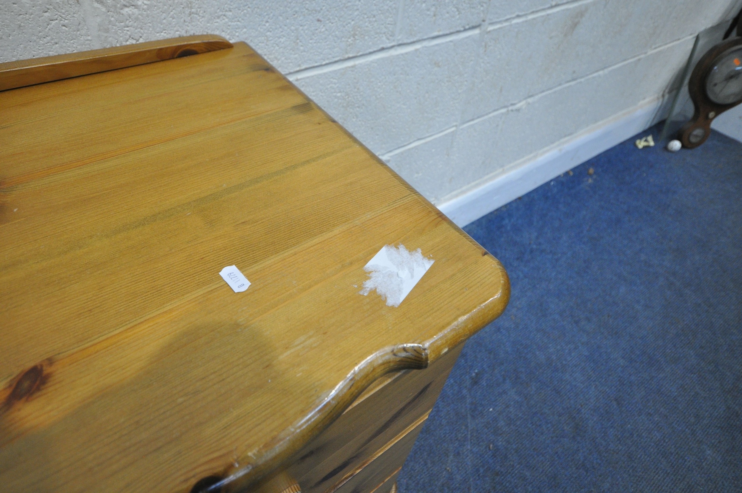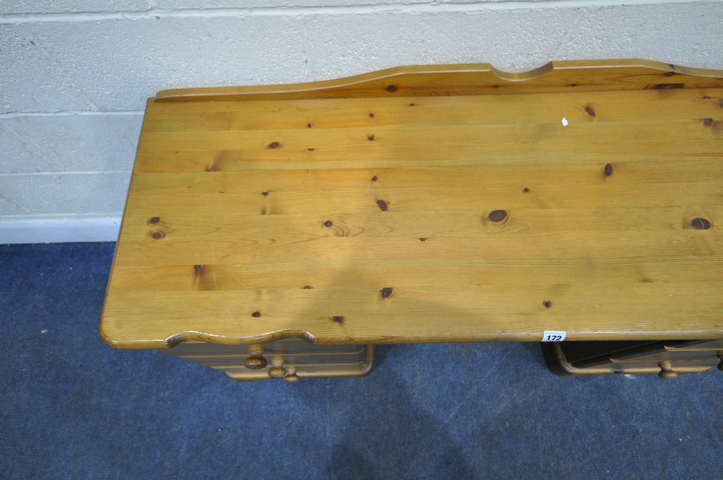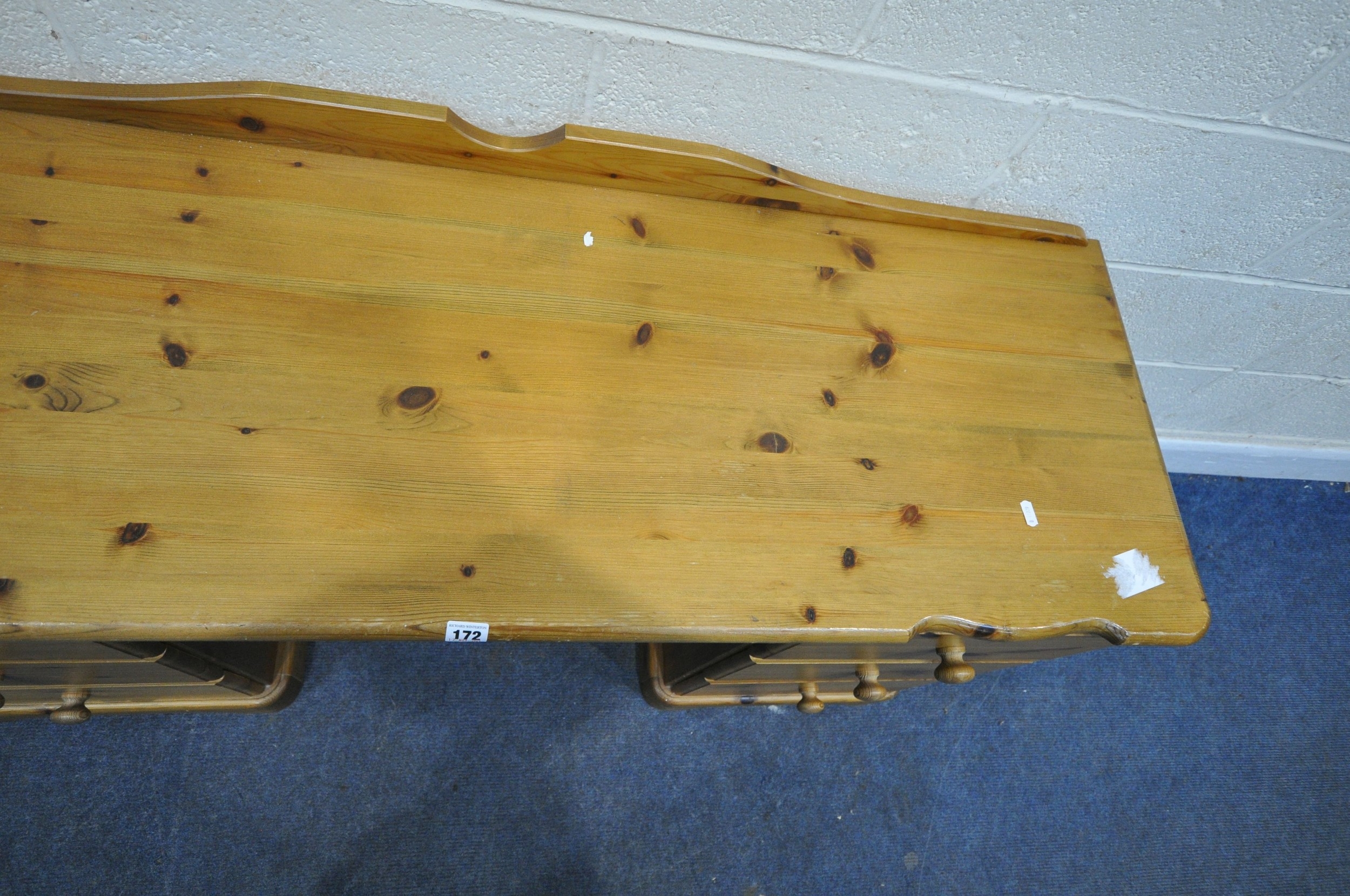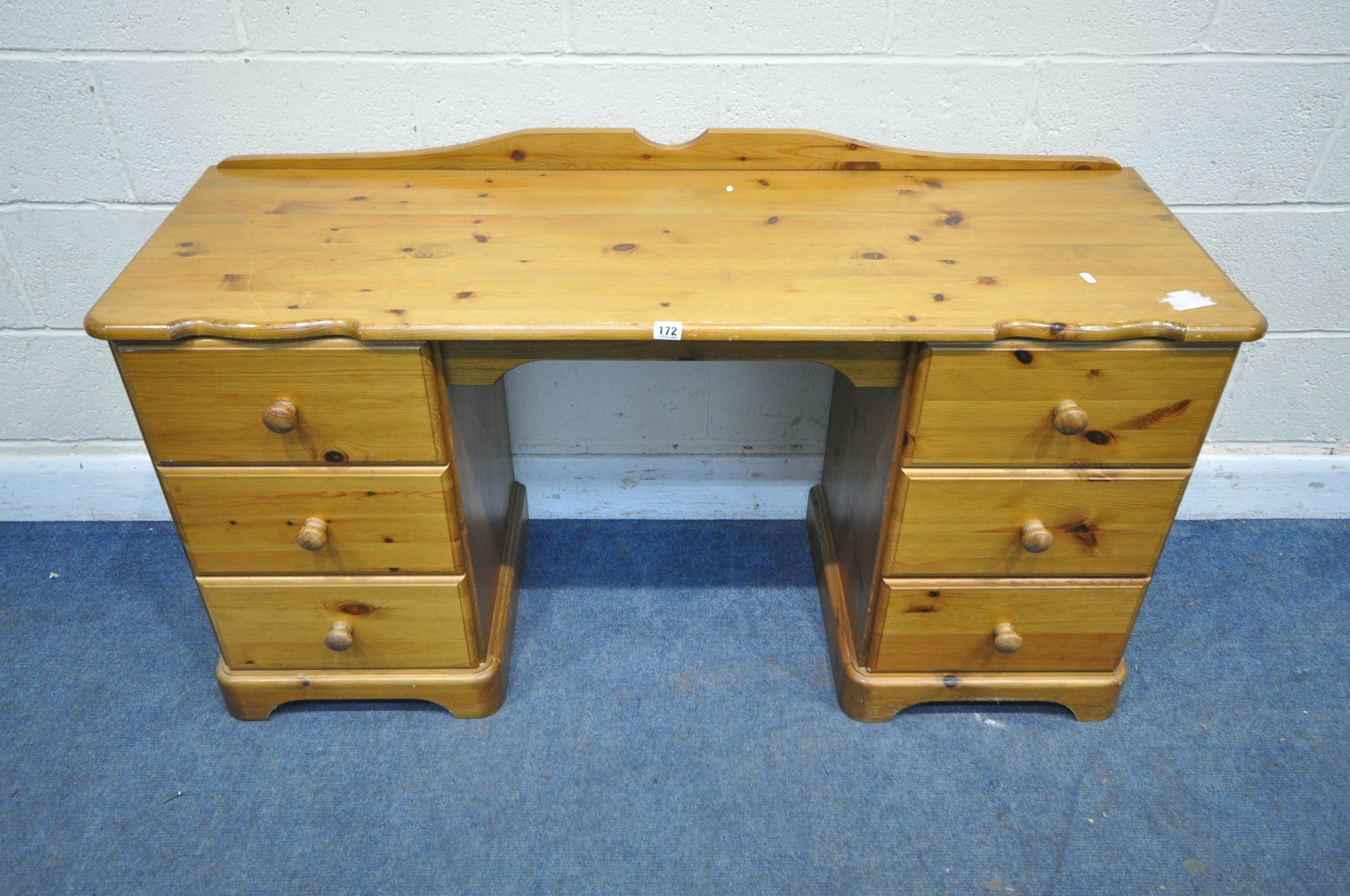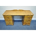 A MODERN PINE DRESSING TABLE, fitted with two banks of three drawers, width 138cm x depth 50cm x height 75cm, condition report: general signs of wear and usage, sticker residue