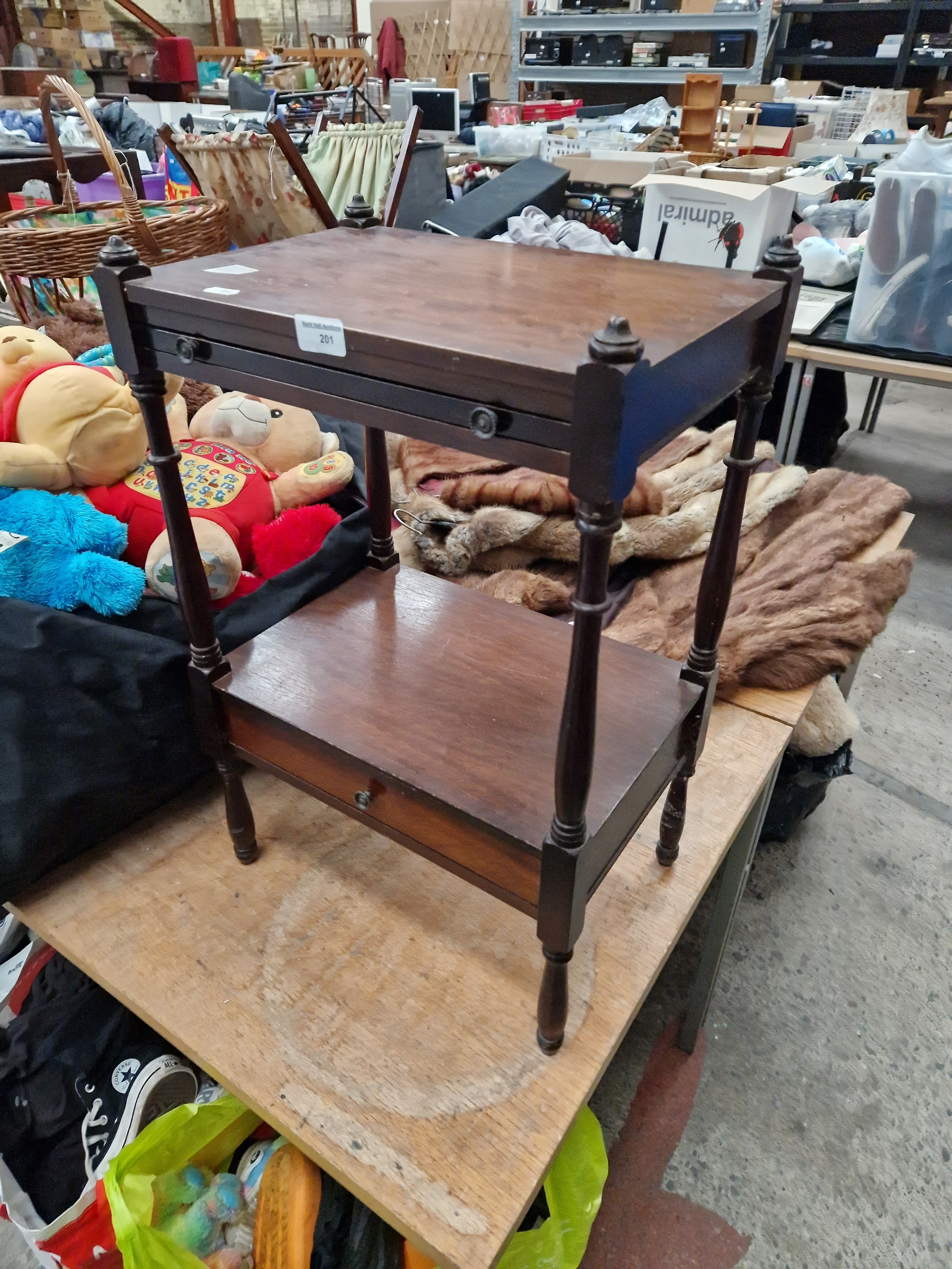 Small lamp table with pull out drawer