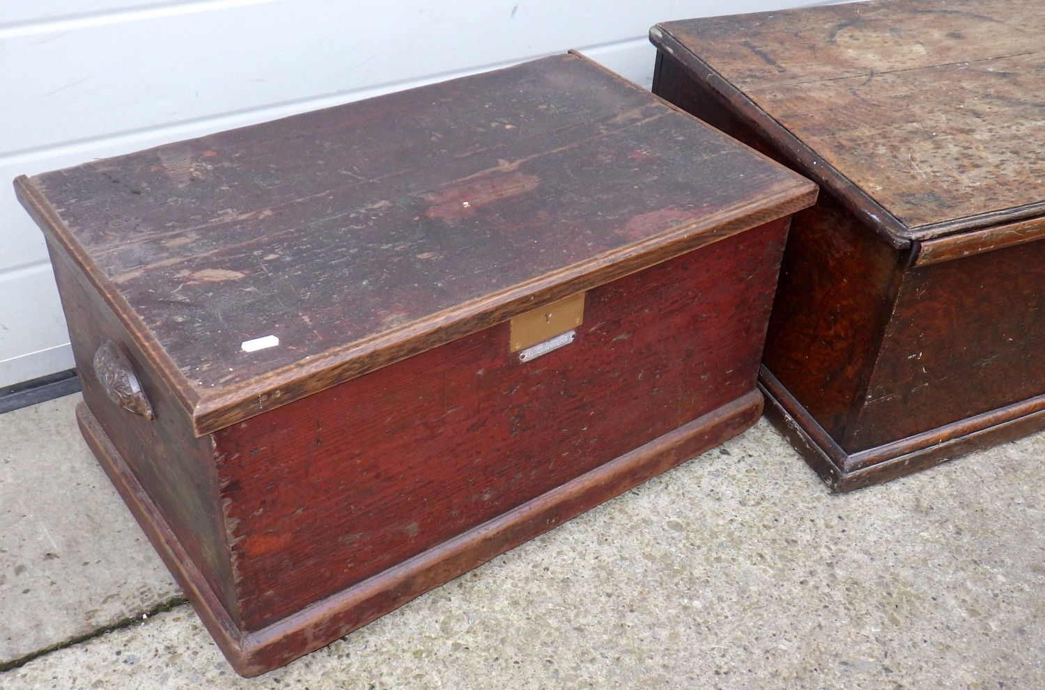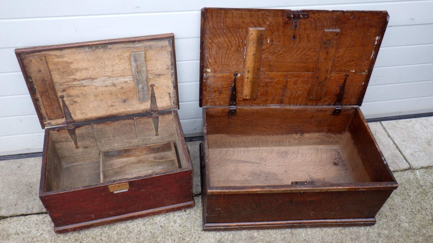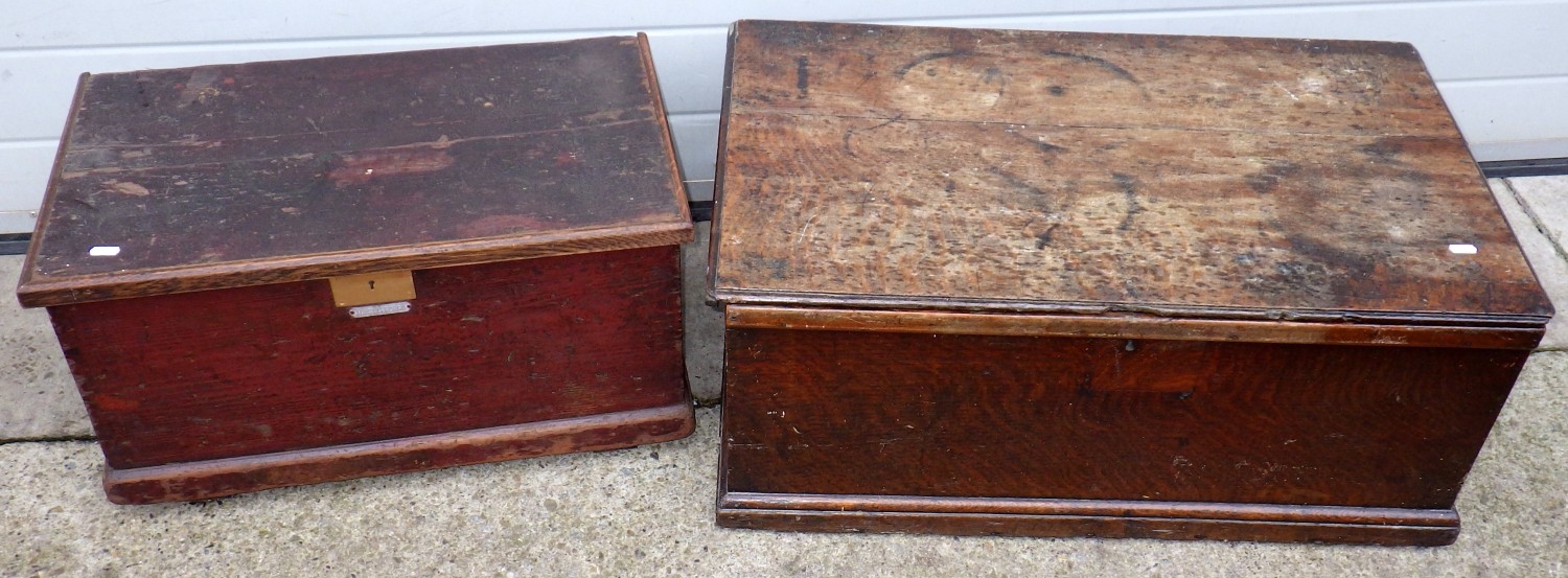 An oak blanket box together with a pine blanket box (2)