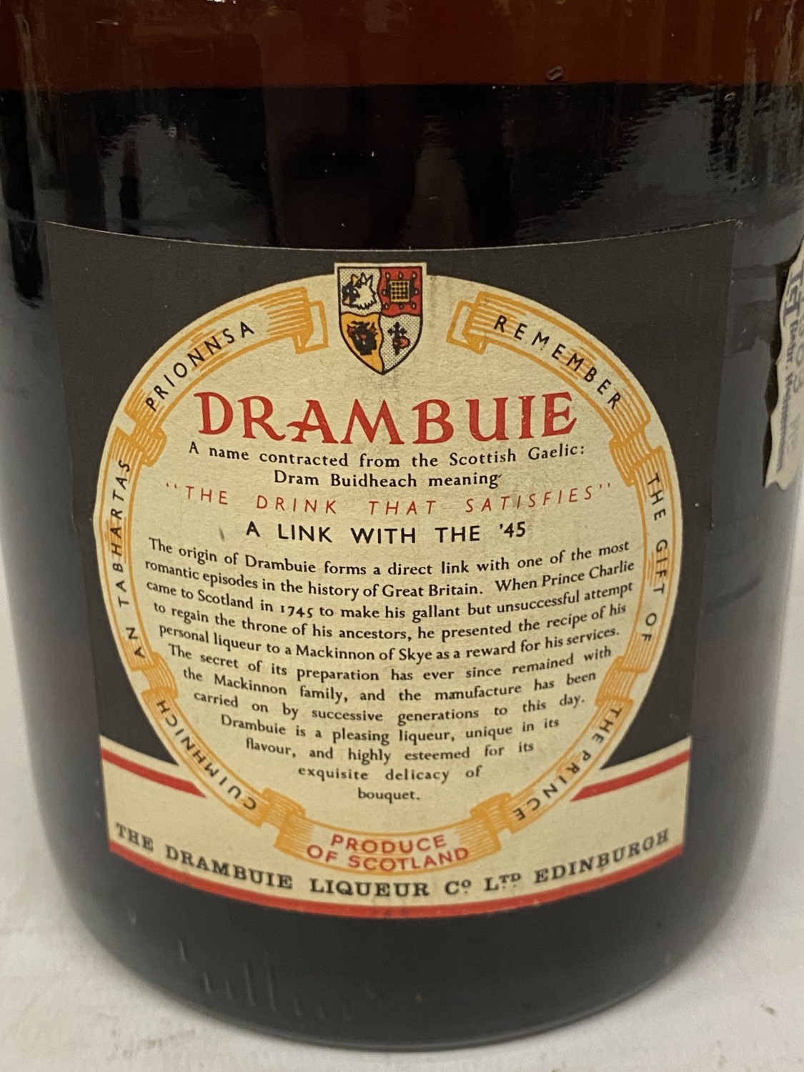 A VINTAGE 1 LITRE BOTTLE OF DRAMBUIE 'PRINCE CHARLES EDWARD'S LIQUEUER'