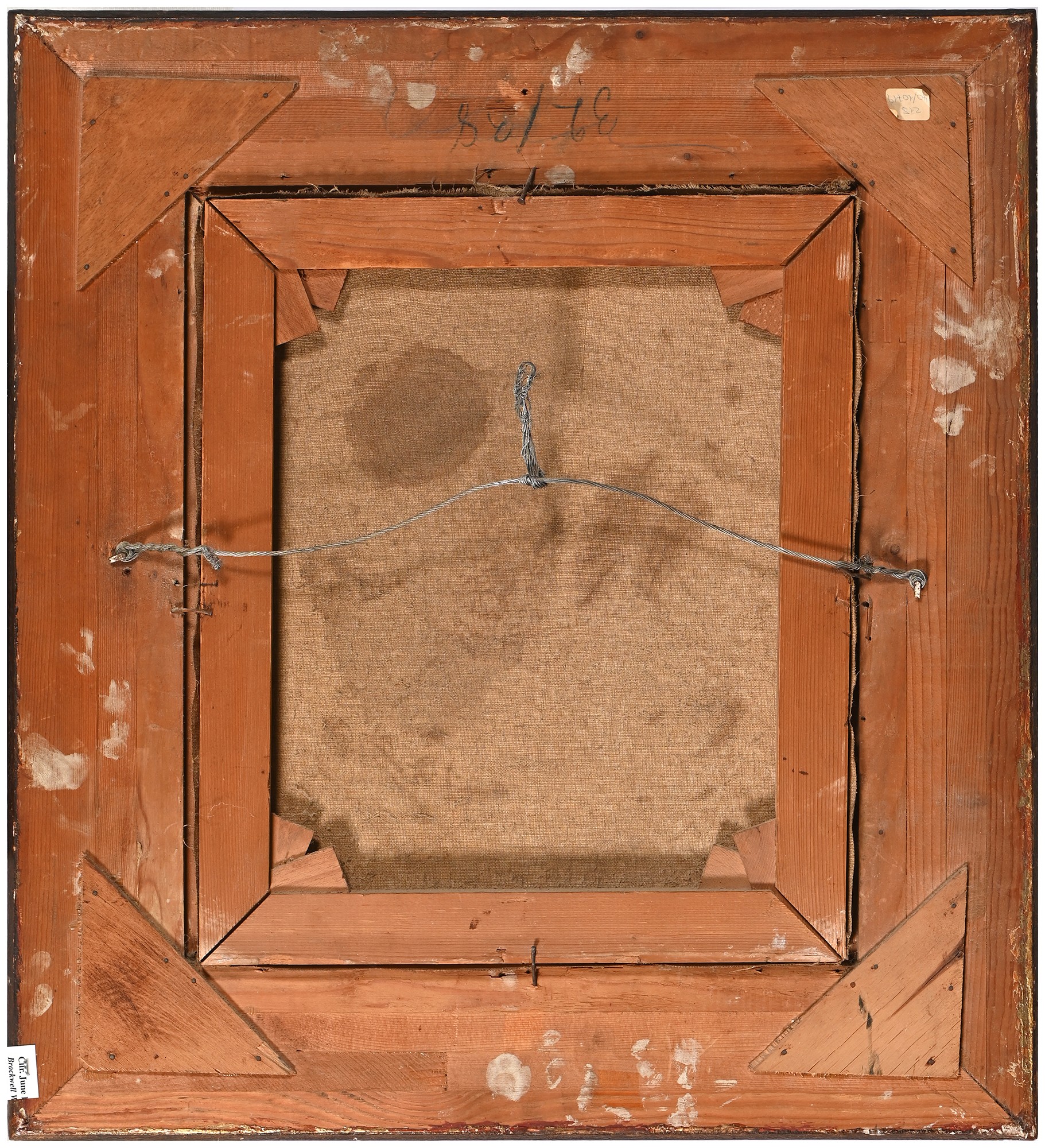 Signs of former cleaning, now some grime and minor shrinkage. Lined. Portraits in generally good condition