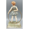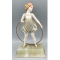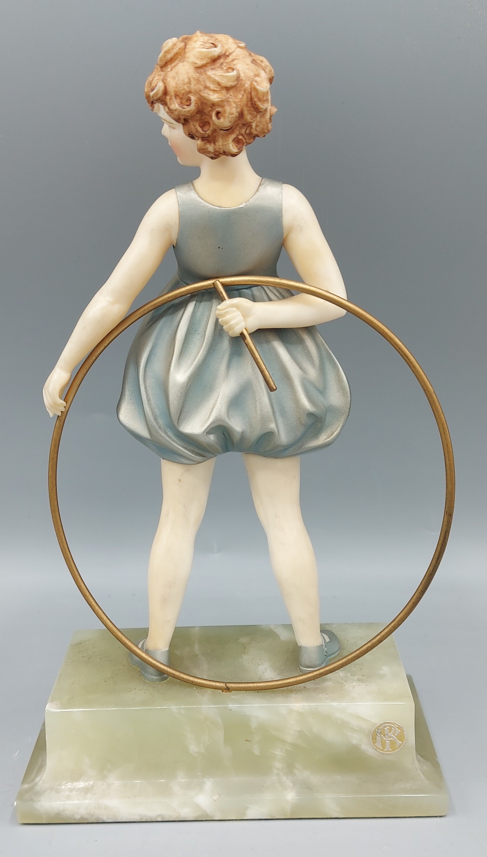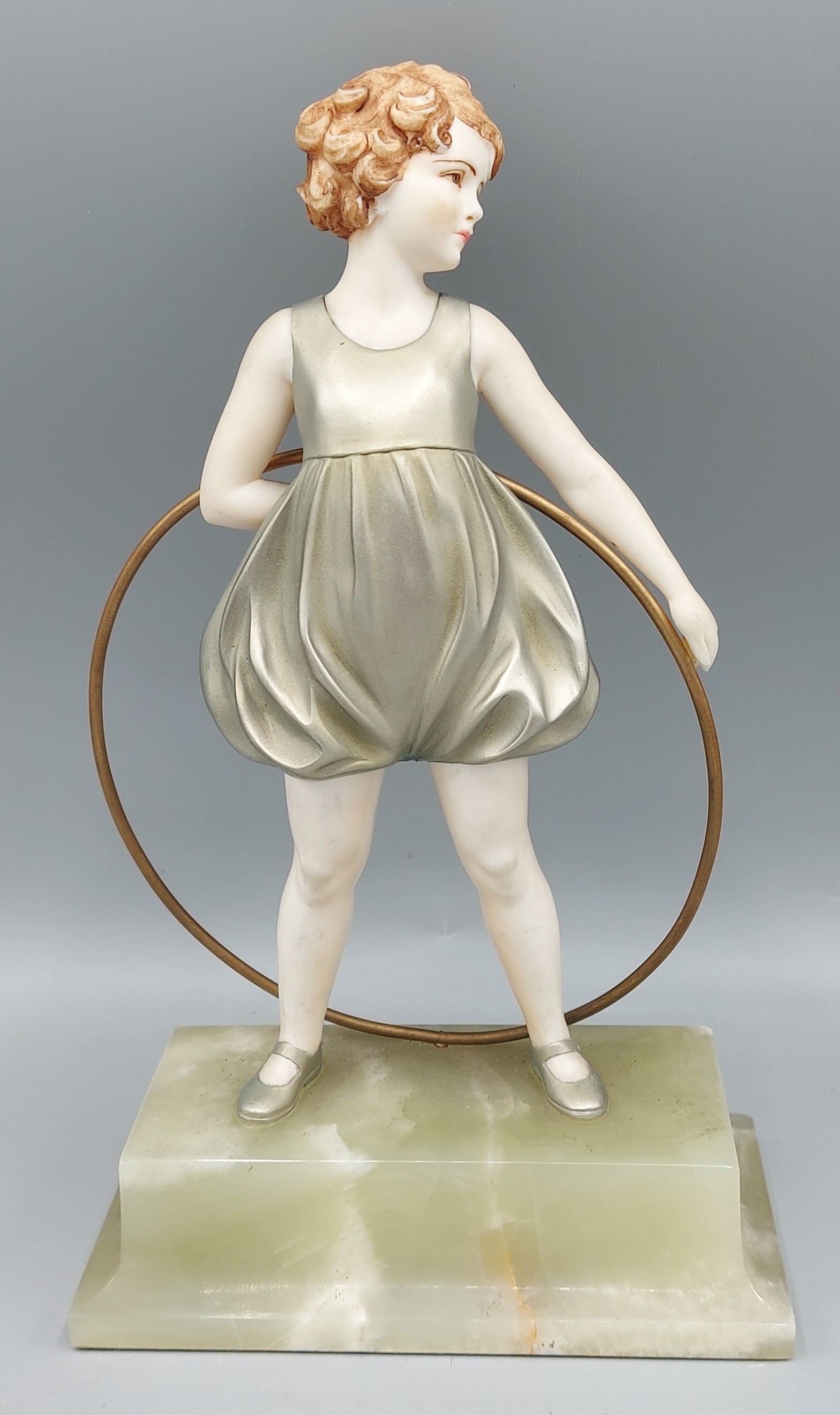 Johann Philipp Ferdinand Preiss, Hoop Girl, cold painted bronze and ivory with Onyx base, signed, Circa 1930, 20cms tall, Preiss and Kassler Foundry mark, Ivory item reference C7CFZ2G2