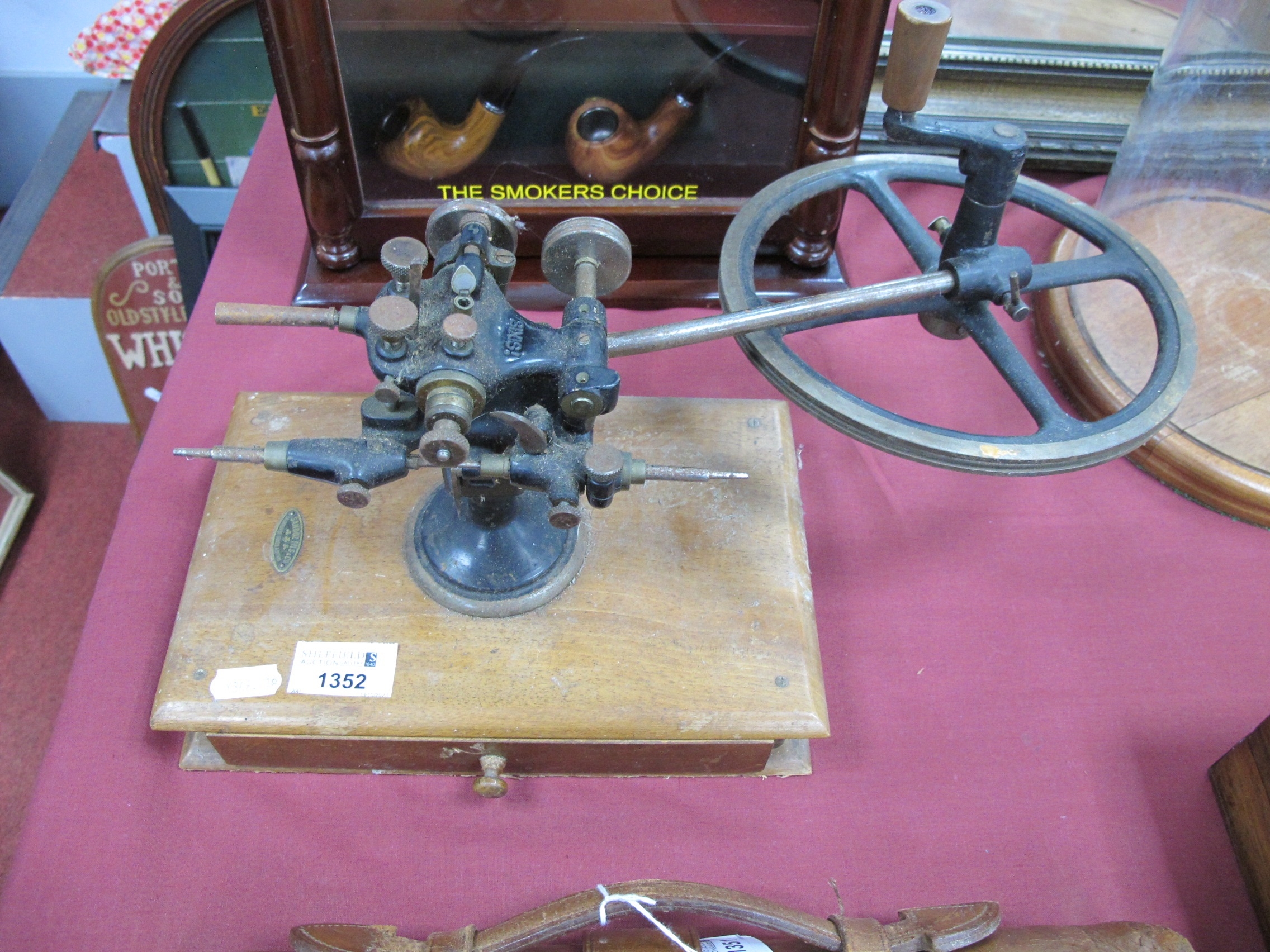 Sandoz Fils & Co Watchmakers Rounding Up Tool, with crank leve wheel, stamped sixis, some blades to drawer.