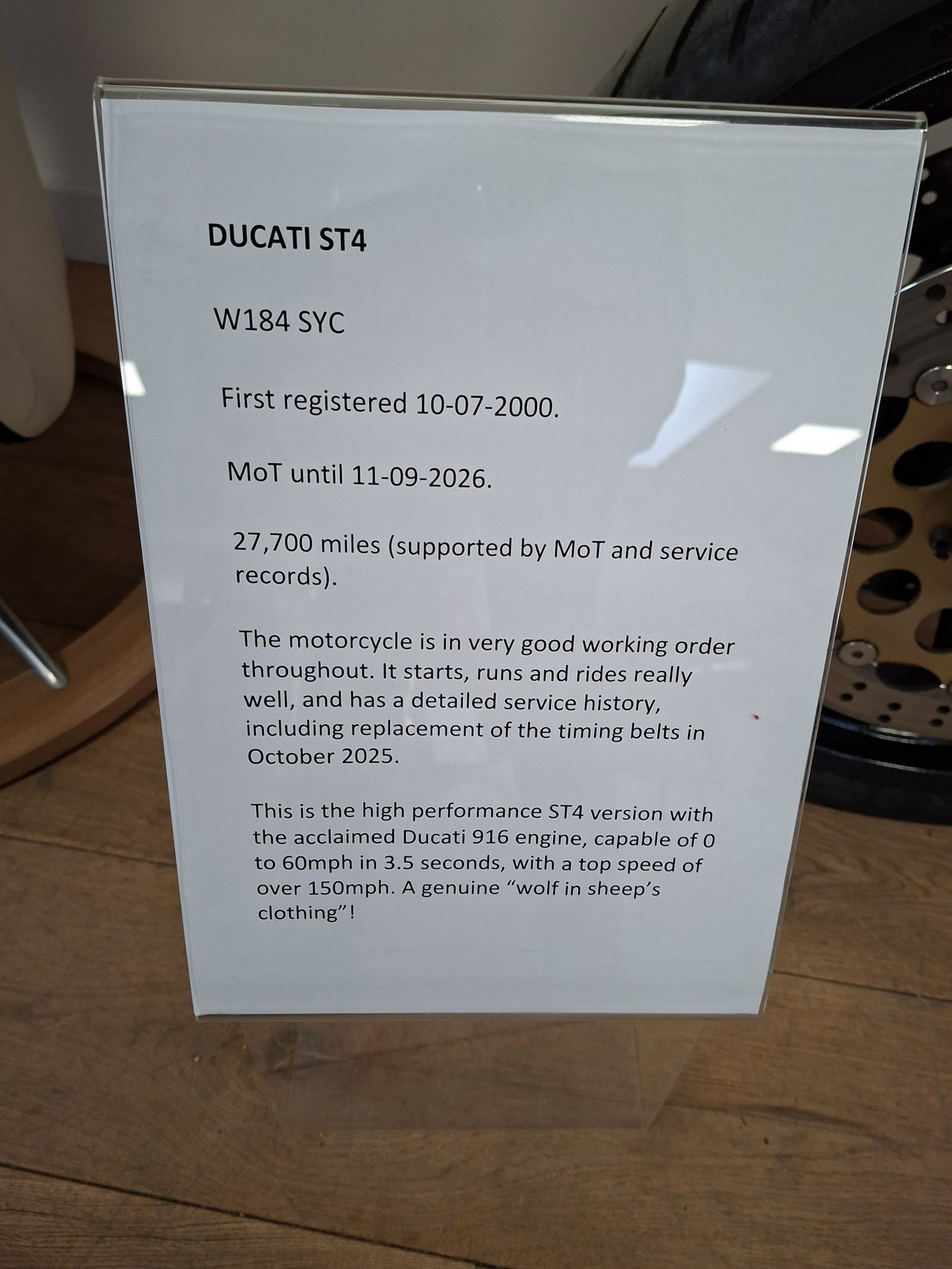 Ducati ST4s 2000W MOT and service records, 27000 miles, timing belts replaced in 2025,