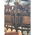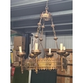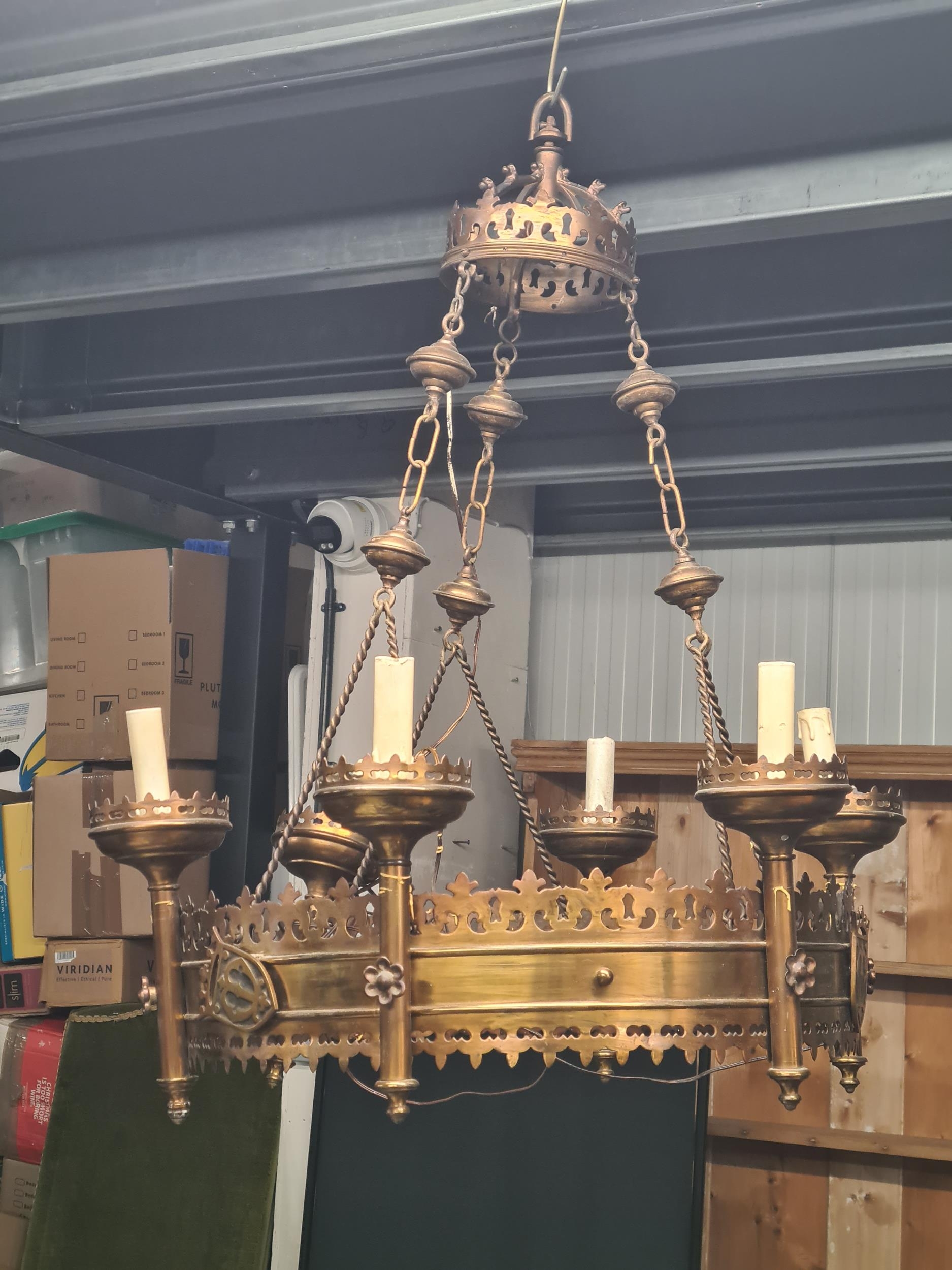 A Gothic style pierced brass Chandelier with six sconces, 22in diam, (R5)