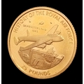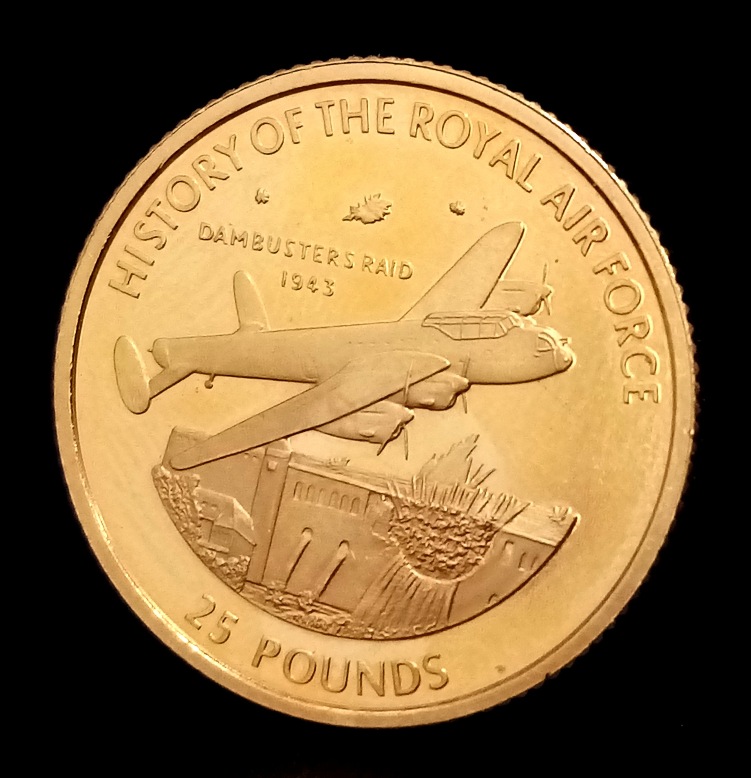 A 2008 RAF 25 POUND 22K GOLD COIN - TO COMMEMERATE THE DAMBUSTERS RAID 1943. 8G. Proof condition. C-9007.