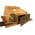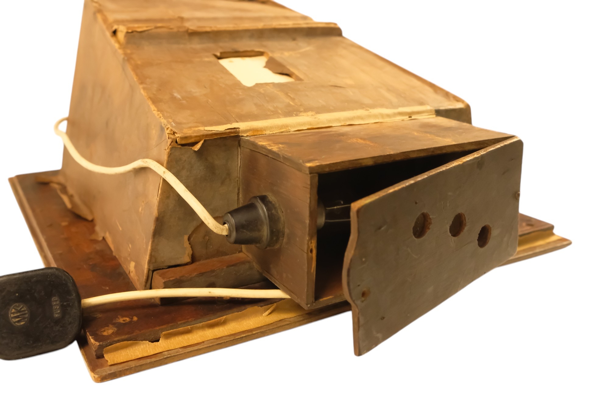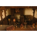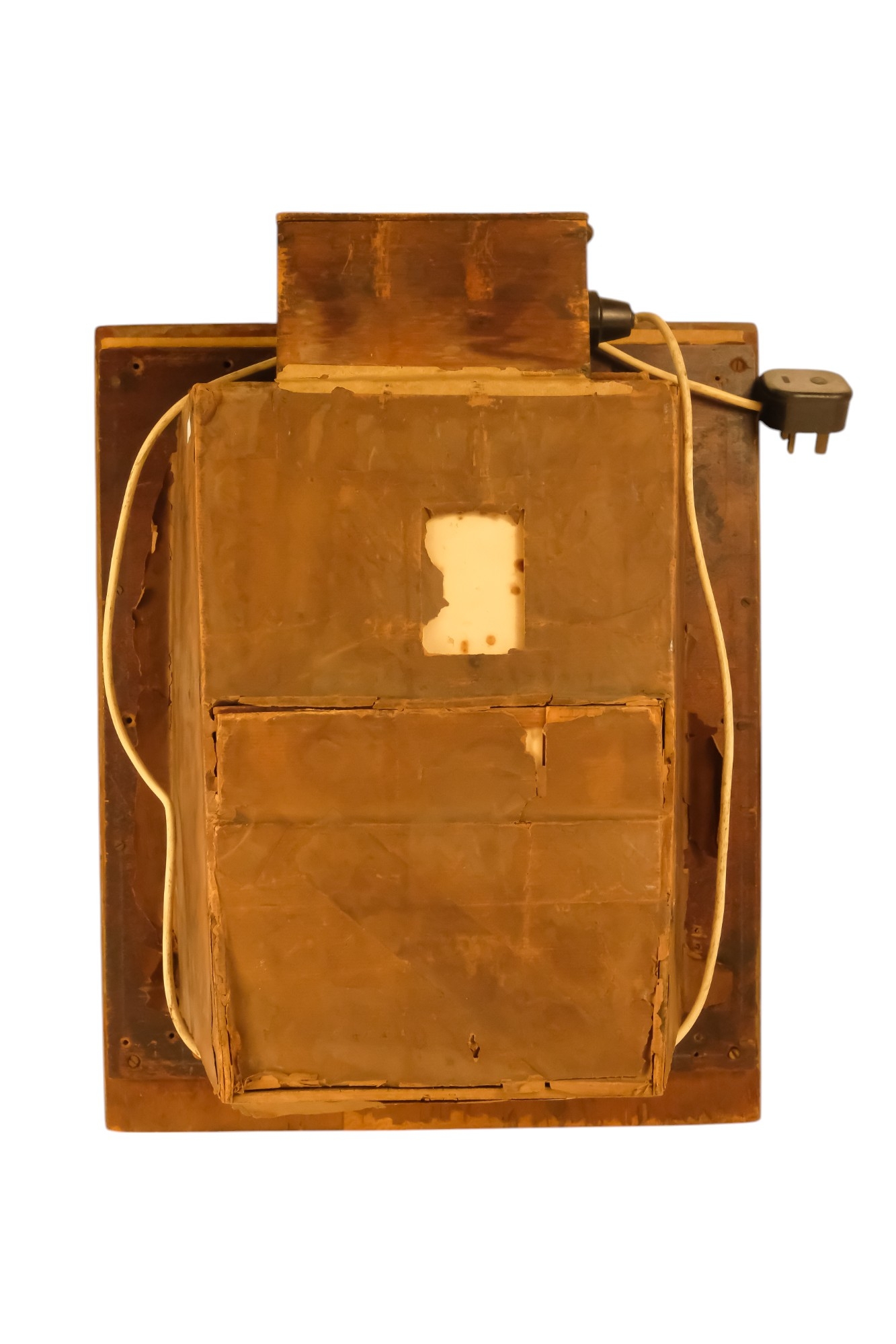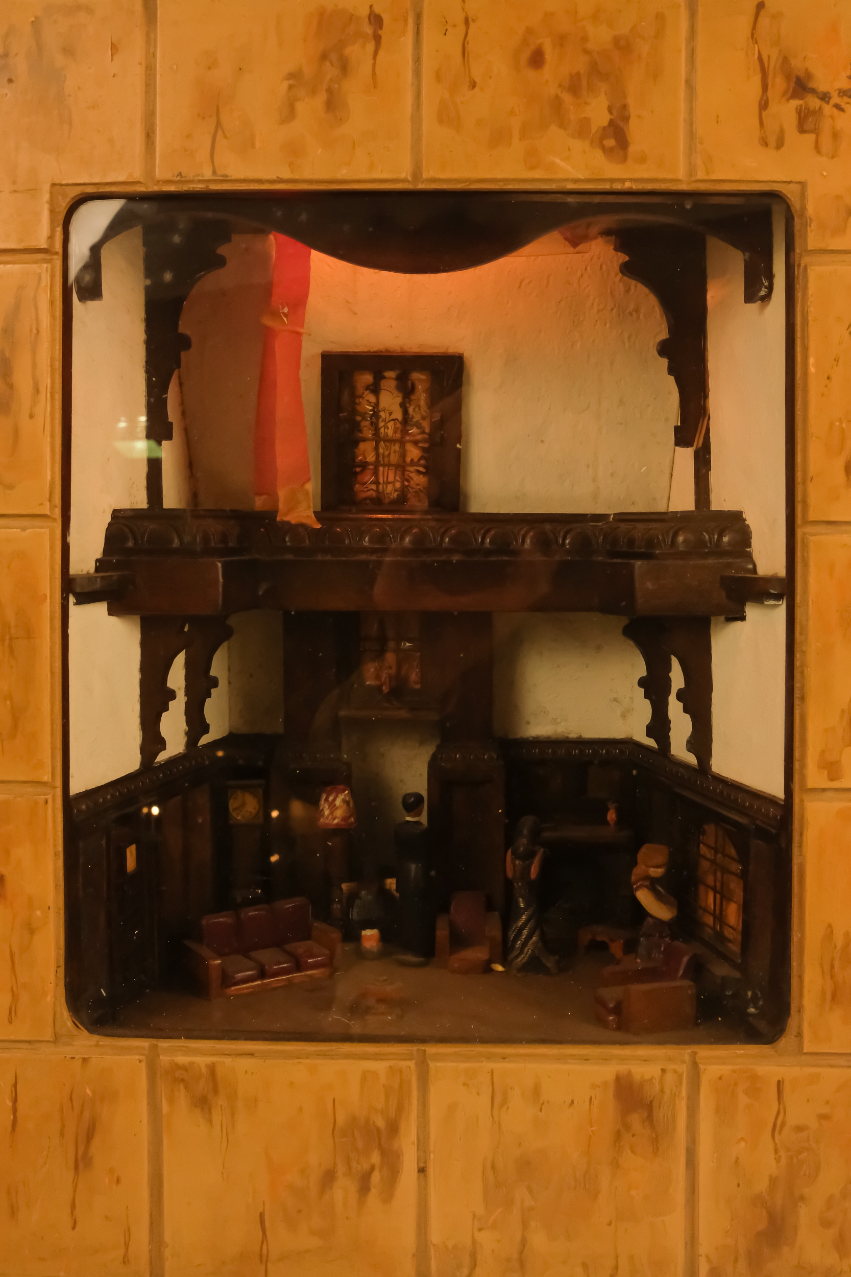 A vintage illuminated diorama - showing a 1930's mock Tudor country house interior with figures, 42 x 31 x 25cm.