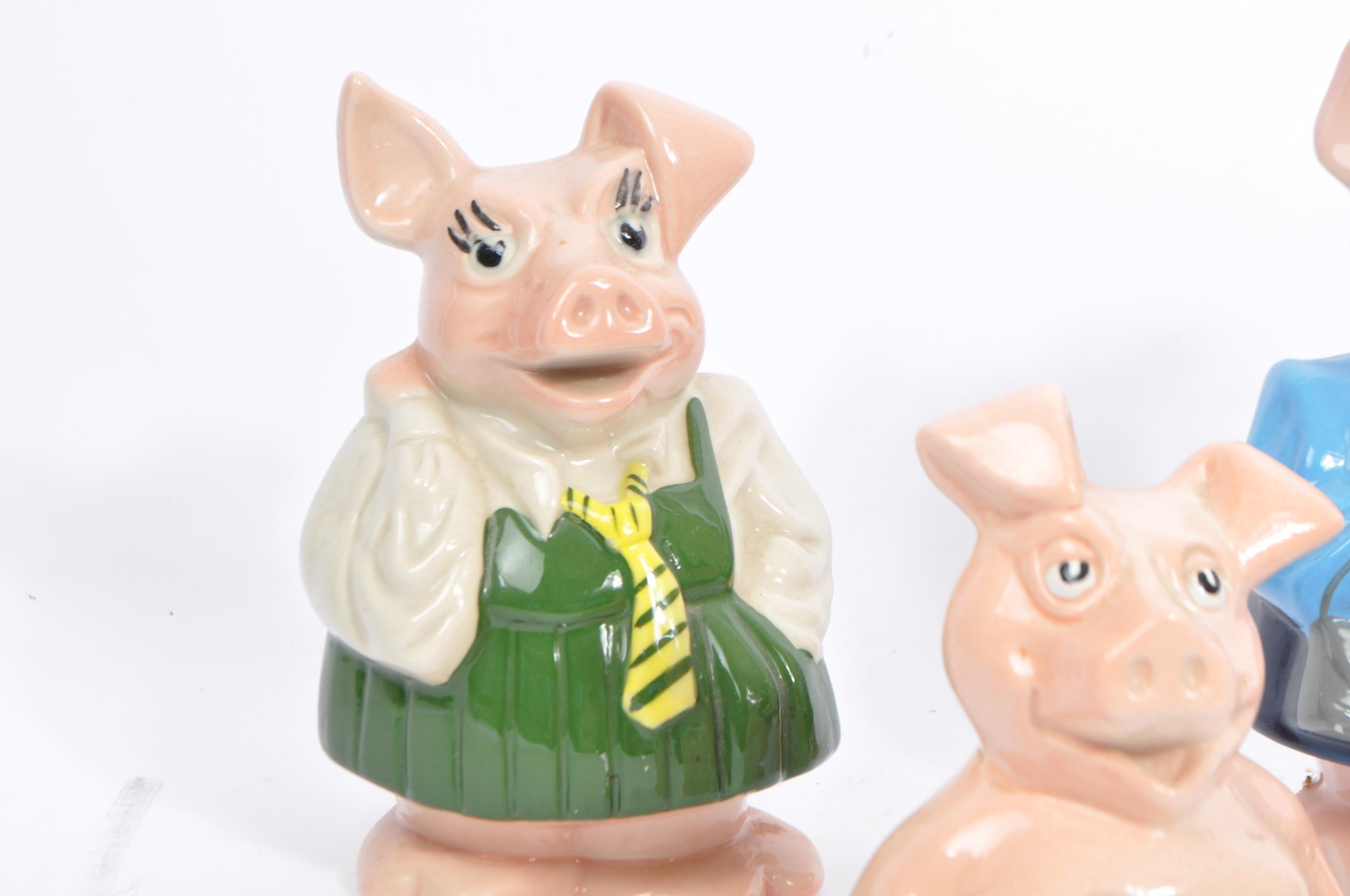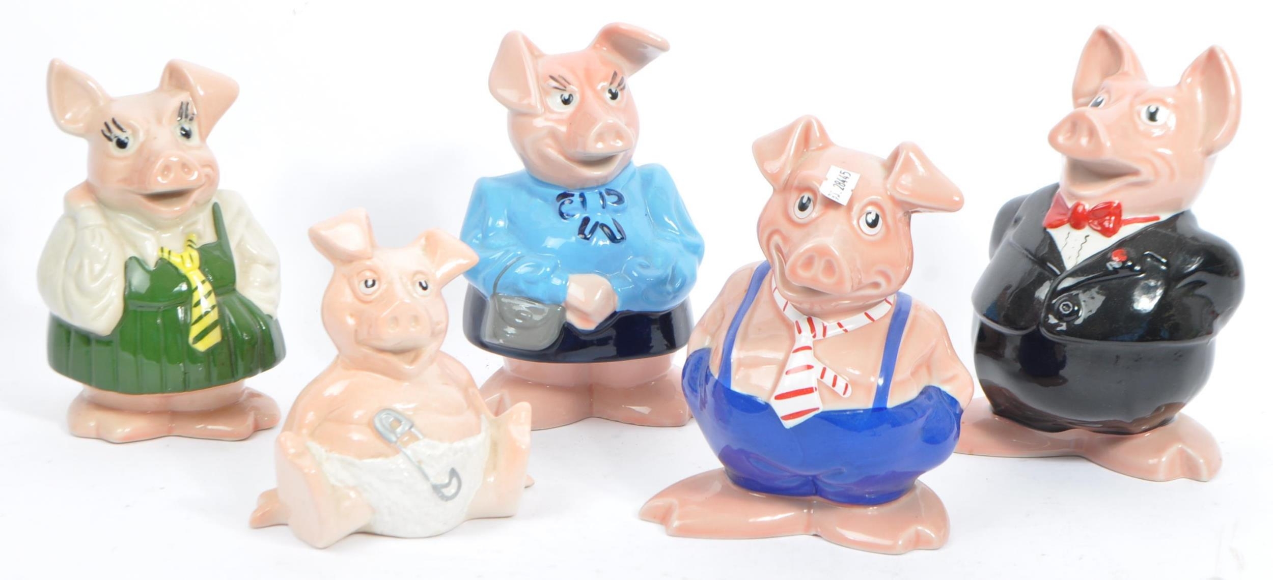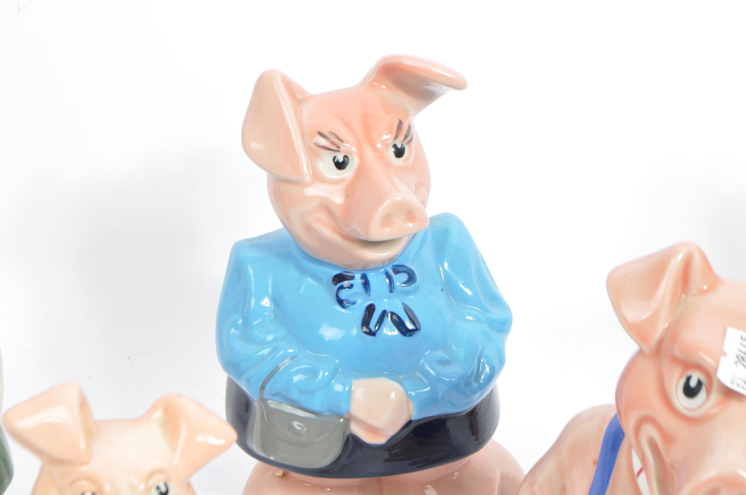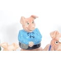 Wade - A collection of five 20tgh century Wade ceramic Natwest pig money banks / piggie banks. Four with stoppers and one without. Largest measures 20cm tall.