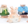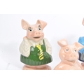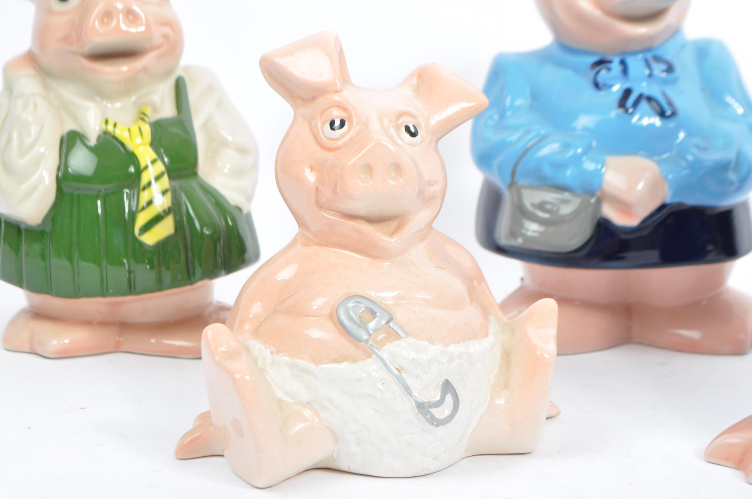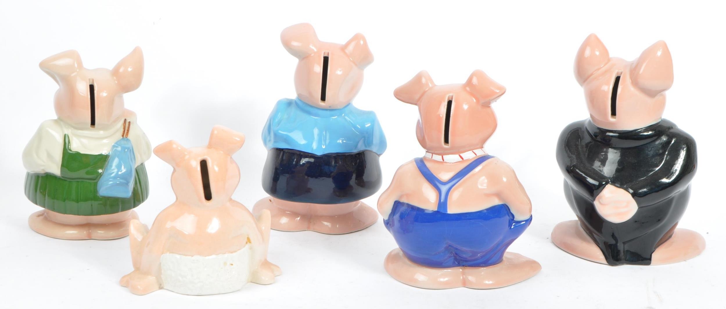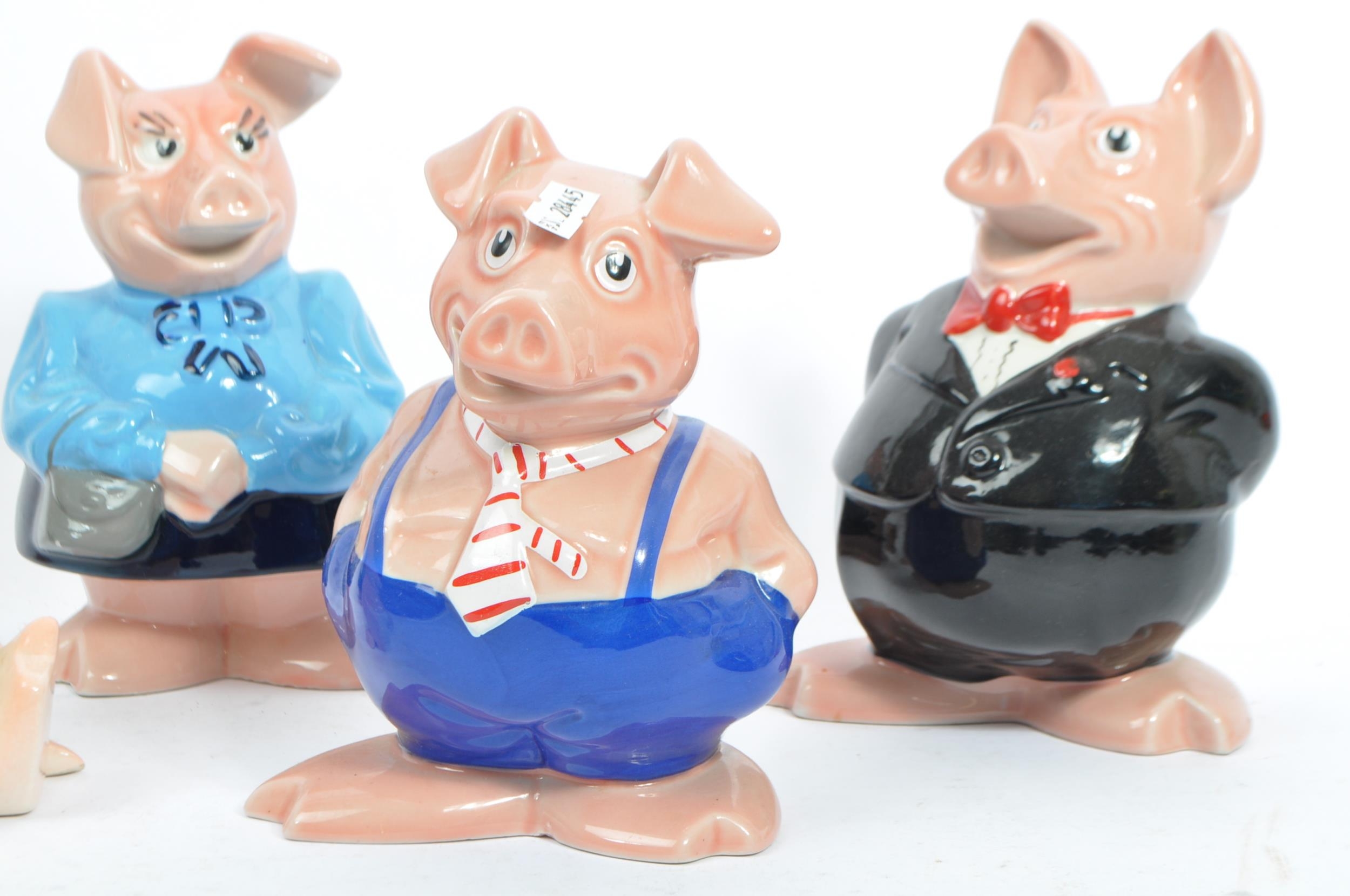 Wade - A collection of five 20tgh century Wade ceramic Natwest pig money banks / piggie banks. Four with stoppers and one without. Largest measures 20cm tall.