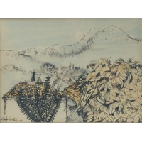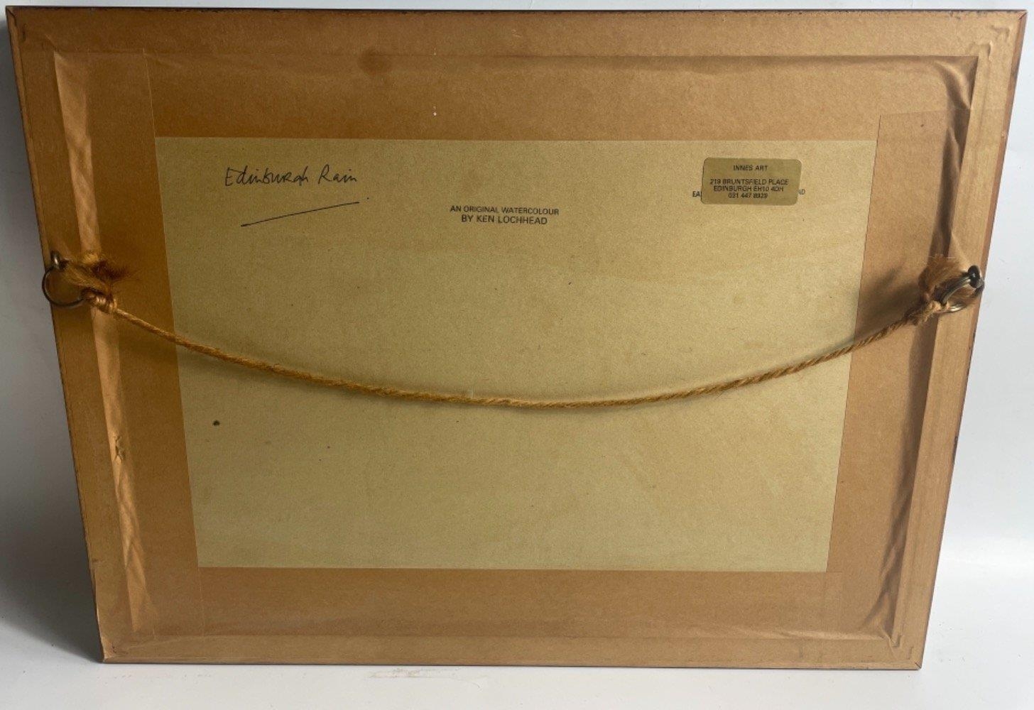 An ORIGINAL WATERCOLOUR by KEN LOCHHEAD, 'Edinburgh Rain' from 1988. Frame size 40 x 30cm