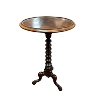 A VINTAGE MAHOGANY INLAID THREE TIER CAKE STAND with urn finial on splayed legs 97cm (h)