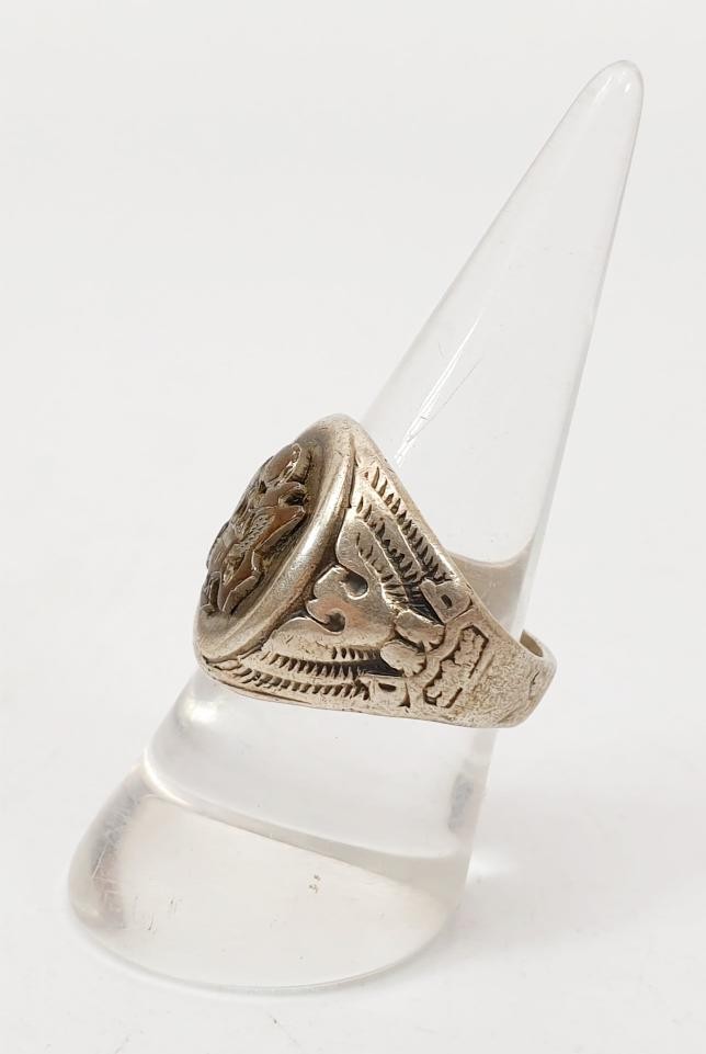 A Taylor Maid sterling silver USA seal ring, size Q, weight 11g. UK shipping £14.