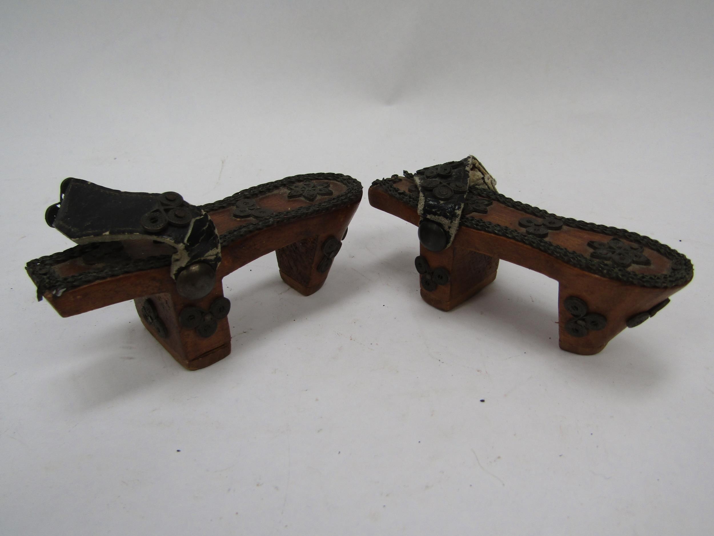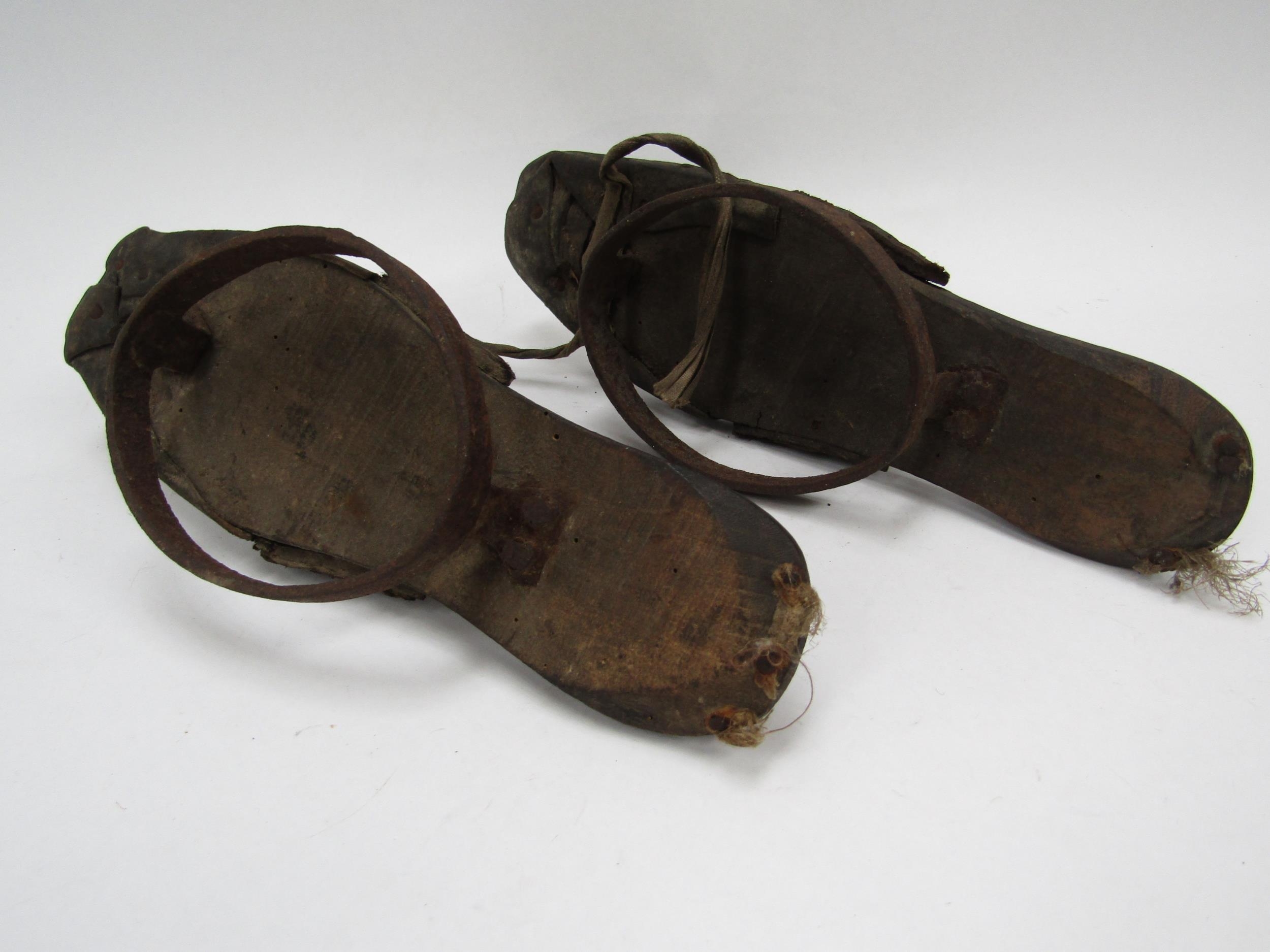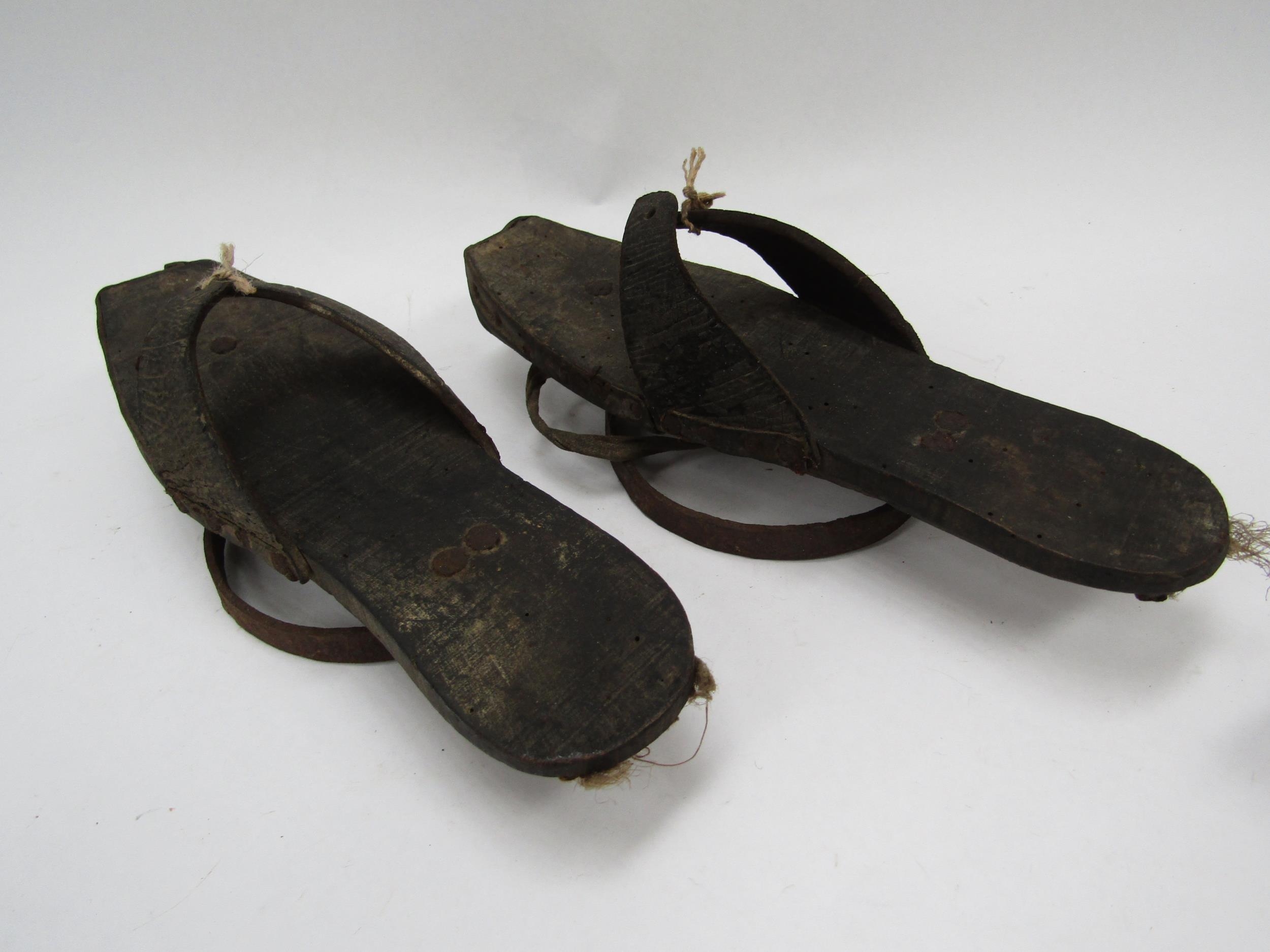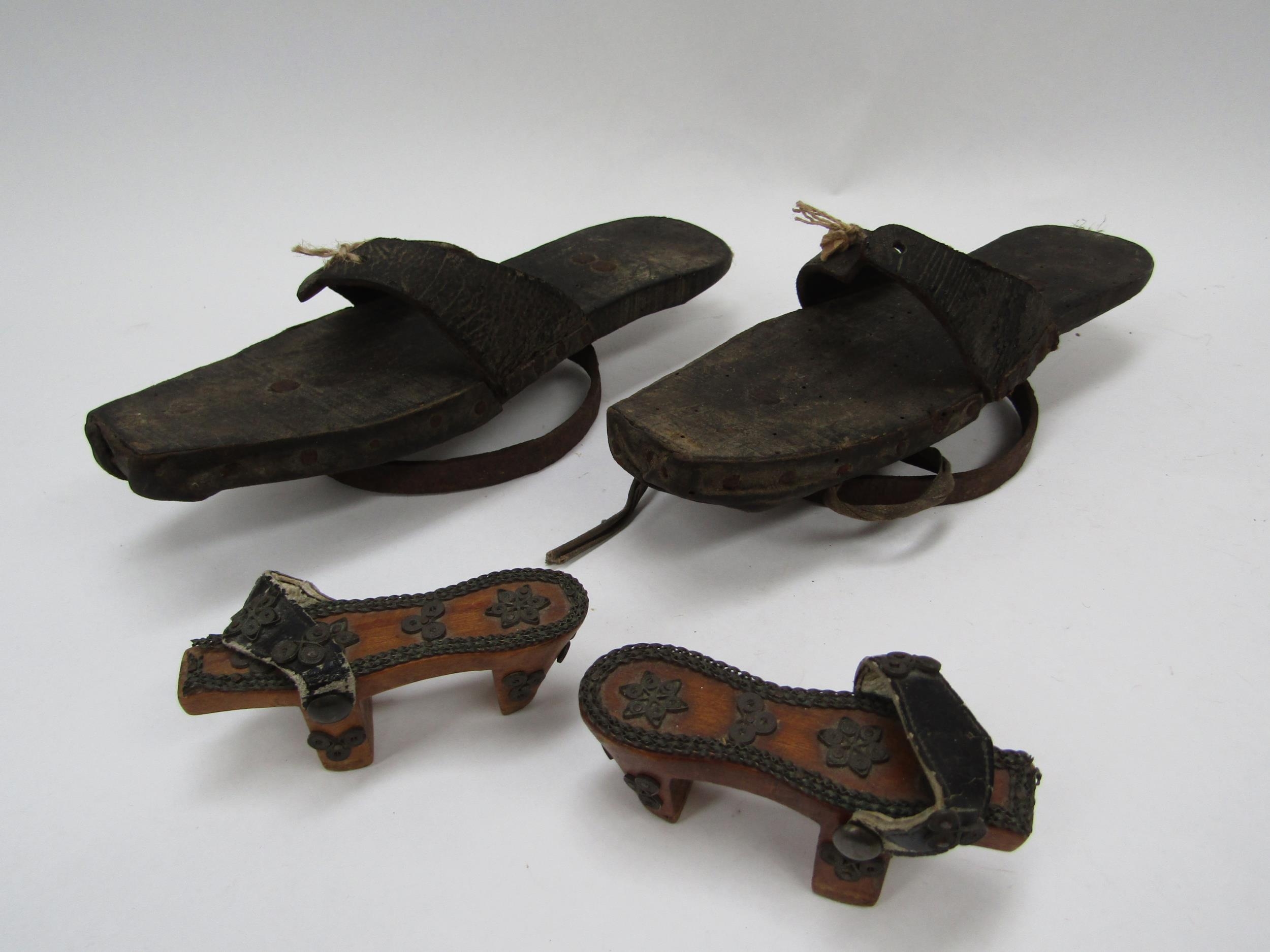 A pair of 18th Century Japanese overslippers and a smaller pair with filigree metal decoration (C)