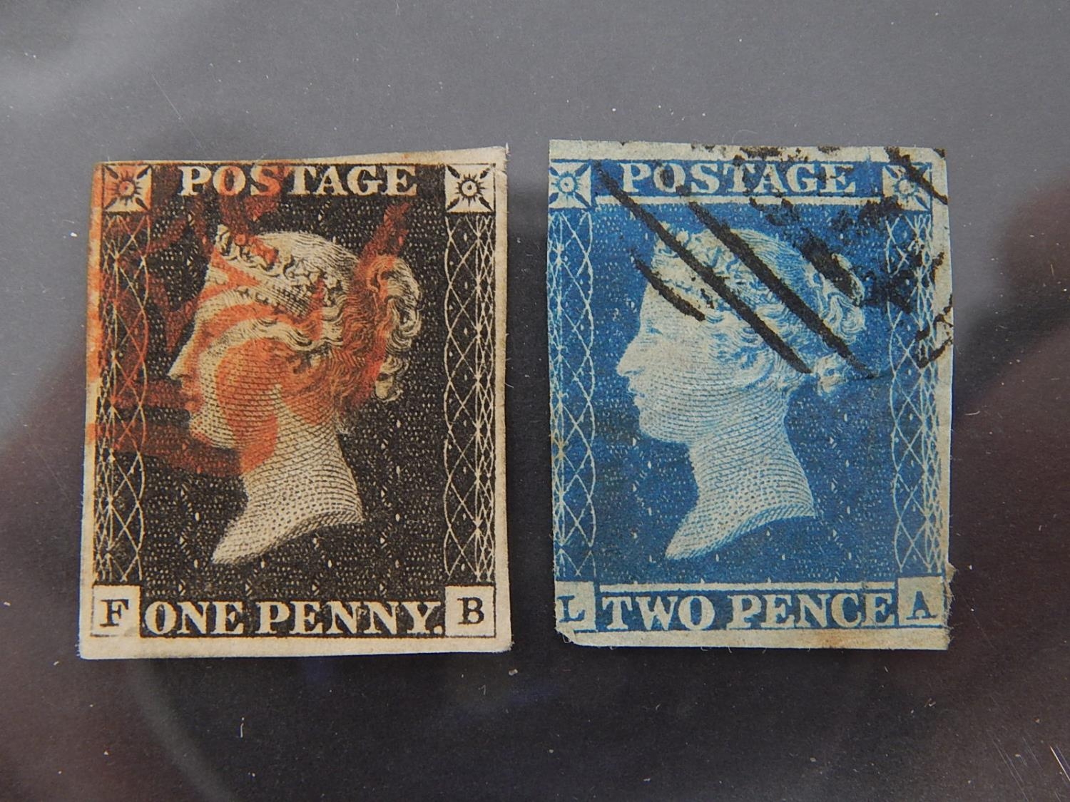 Queen Victoria Penny Black and Twopenny Blue Stamps