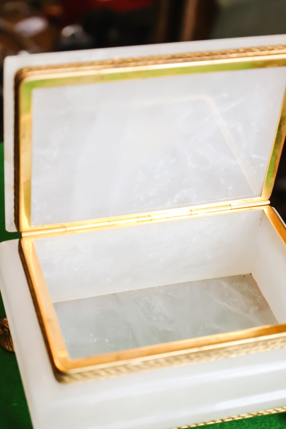 Antique Ormolu Mounted Carved Quartz Ladies Jewellery Box Shaped Supports Approximately 20cm Wide
