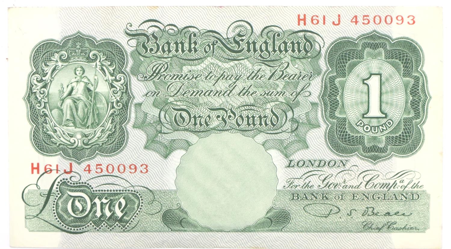 Beale one pound note of Queen Elizabeth II in good condition H61J 450093. P&P Group 1 (£14+VAT for the first lot and £1+VAT for subsequent lots)