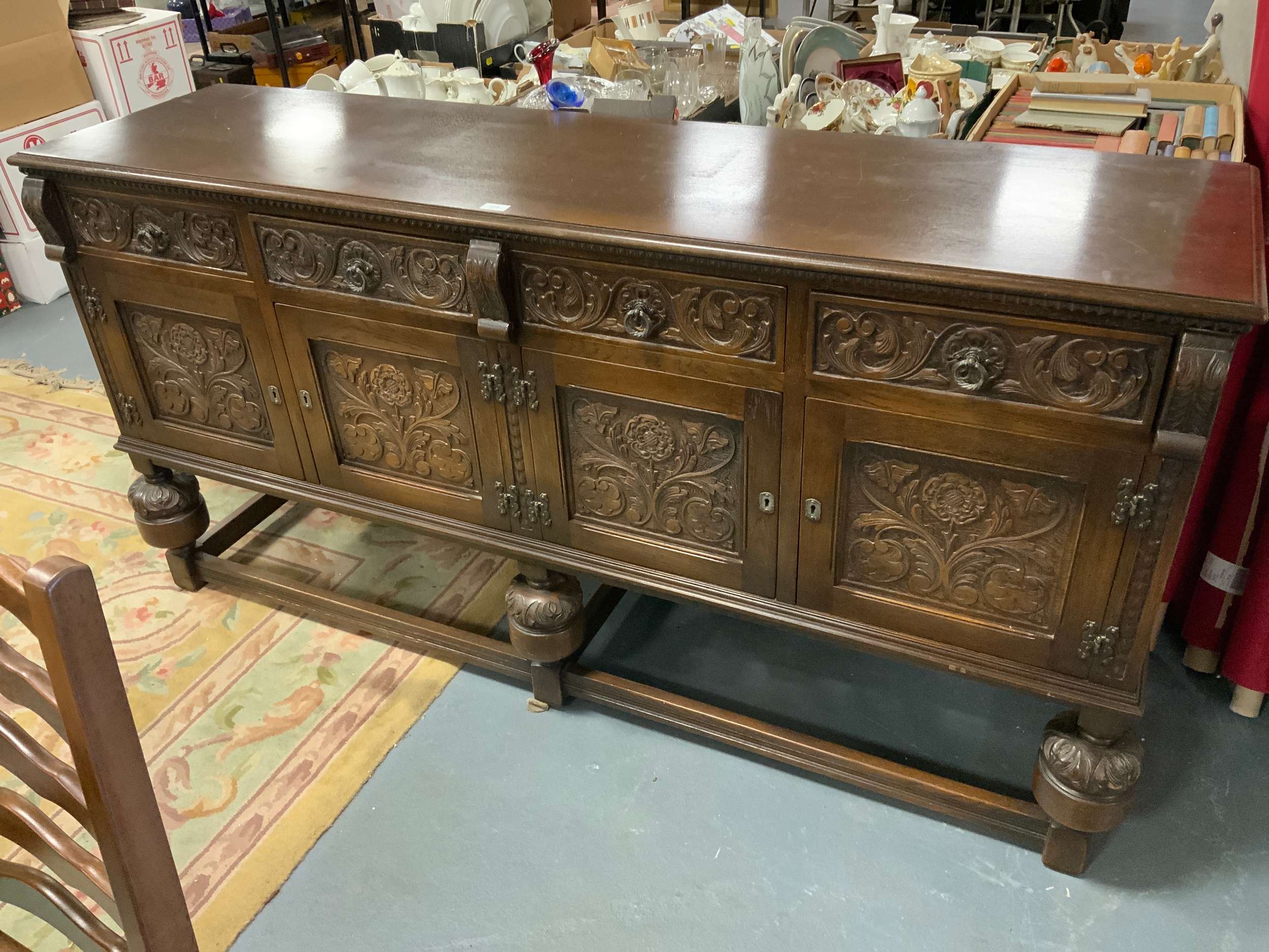 A large carved oak Jacobean style sideboard H 94 cm W 188 cm