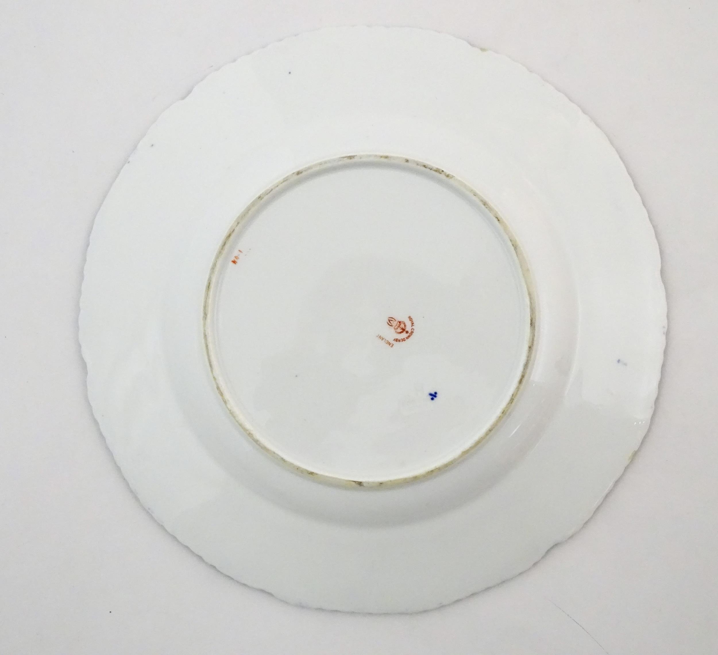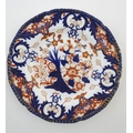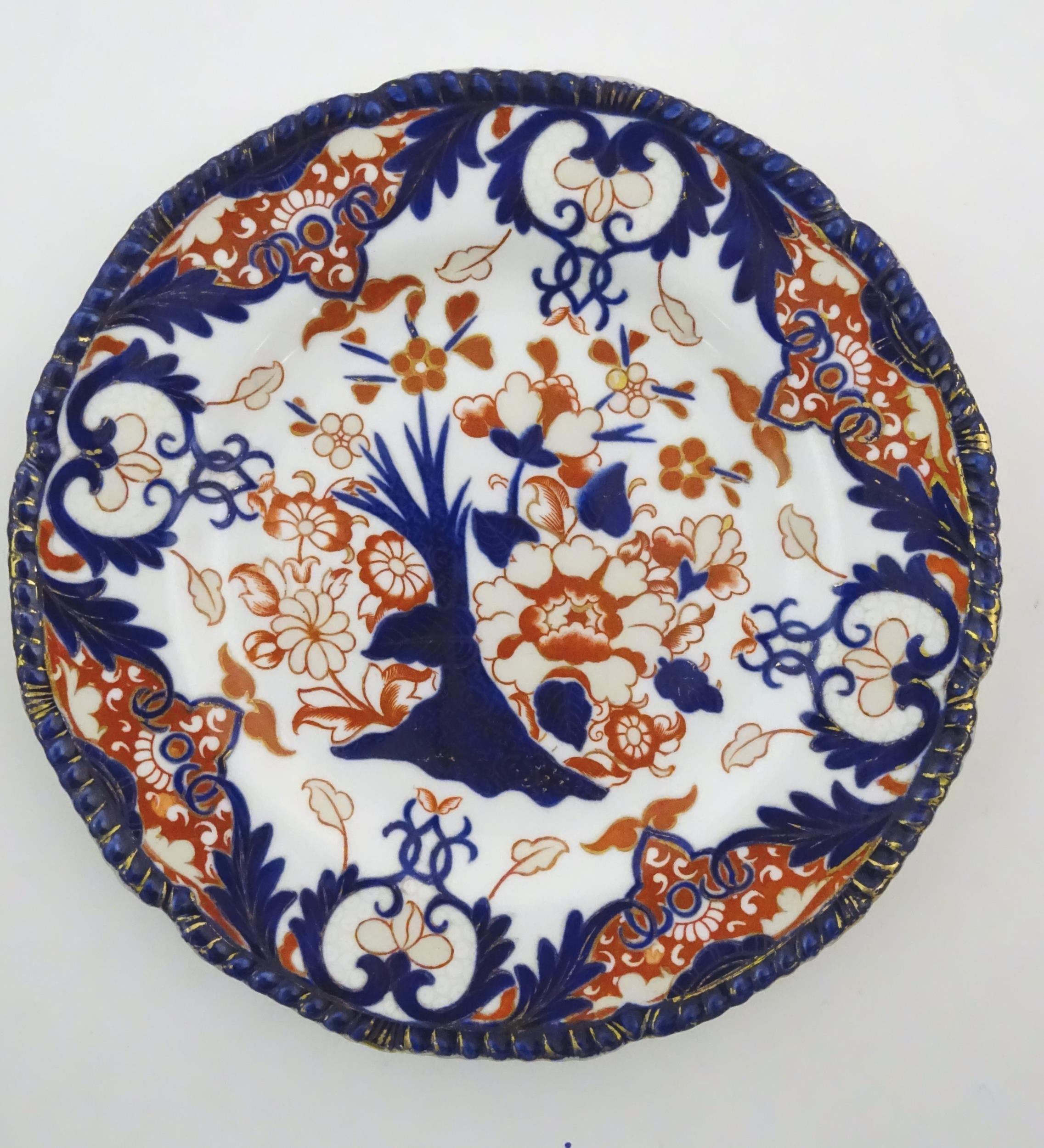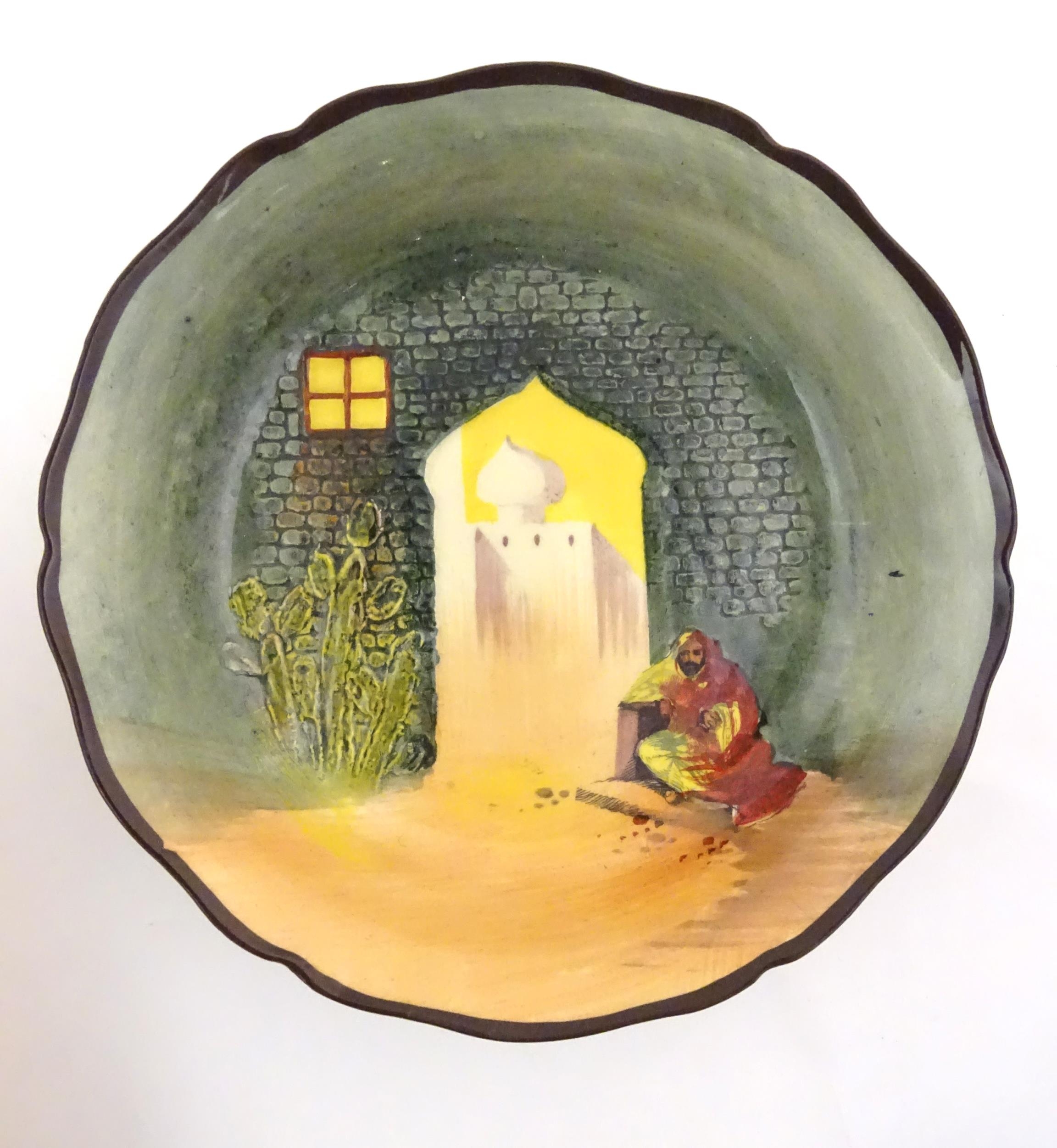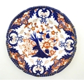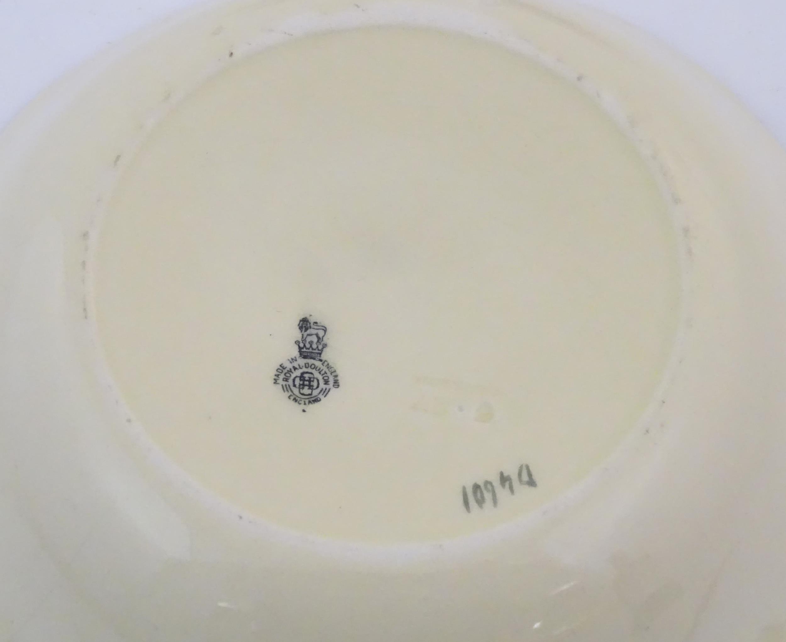 Two Royal Doulton wares in the pattern Arabian Nights, comprising bowl and squared plate with relief cactus detail; and a Royal Doulton seriesware plate in the pattern Fireside. Together with a Royal Crown Derby plate decorated in the Imari palette with flowers and foliage. Royal Crown Derby plate approx. 10 1/4" diameter (4)