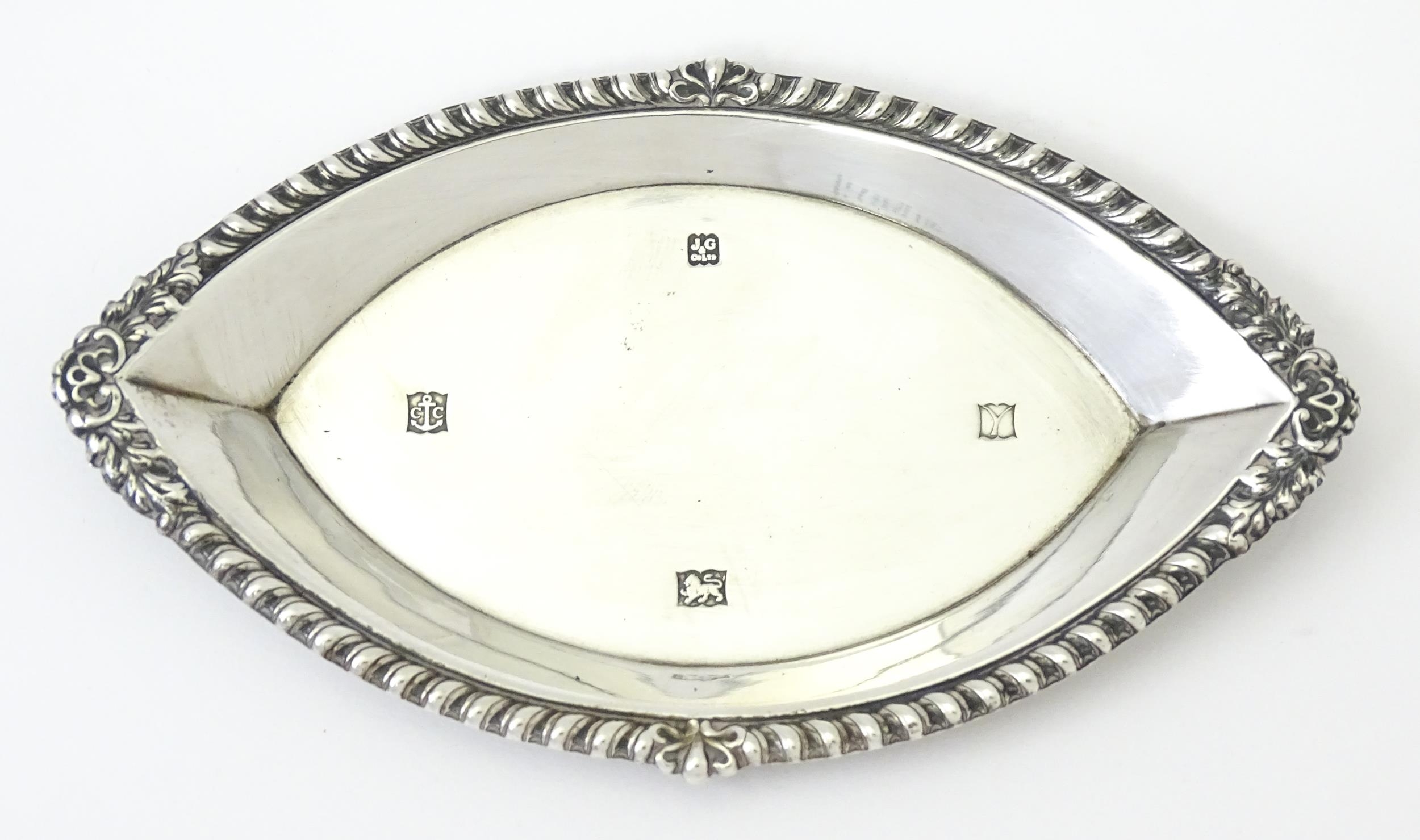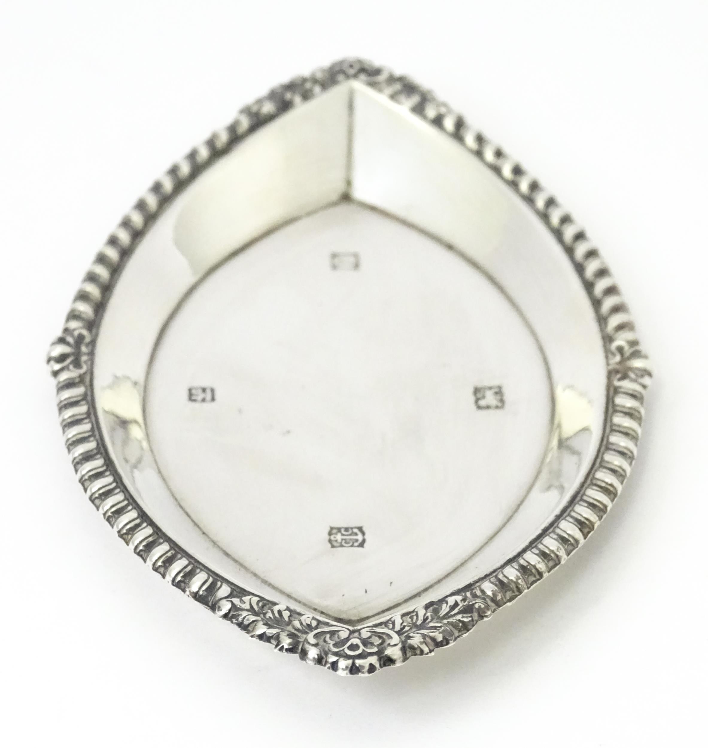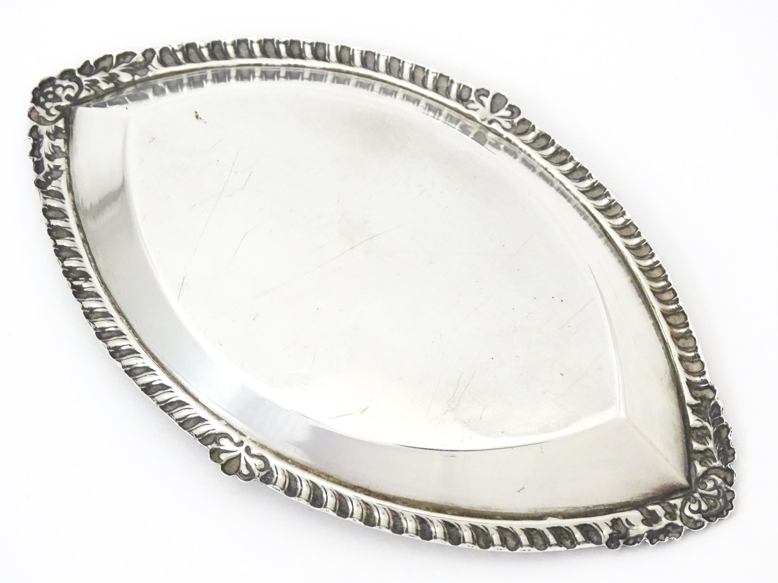 A silver pin dish of lozenge form, hallmarked Birmingham 1973. Approx. 5 1/4" wide