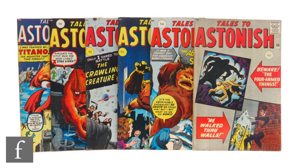 Six Marvel Tales to Astonish issues comprising #10, #20, #22, #23, #24, and #26, 1960s, all British pence copies. (6)