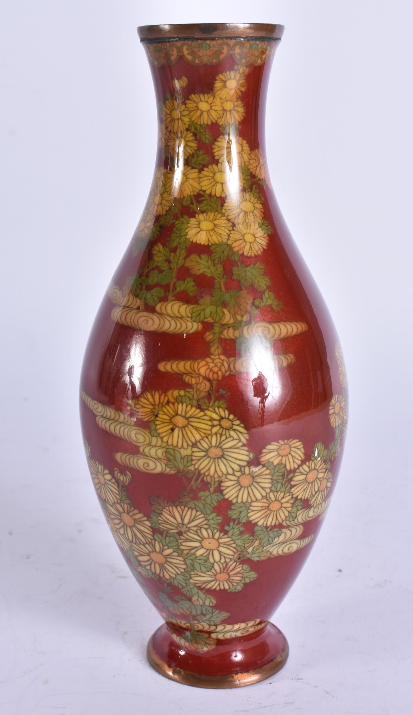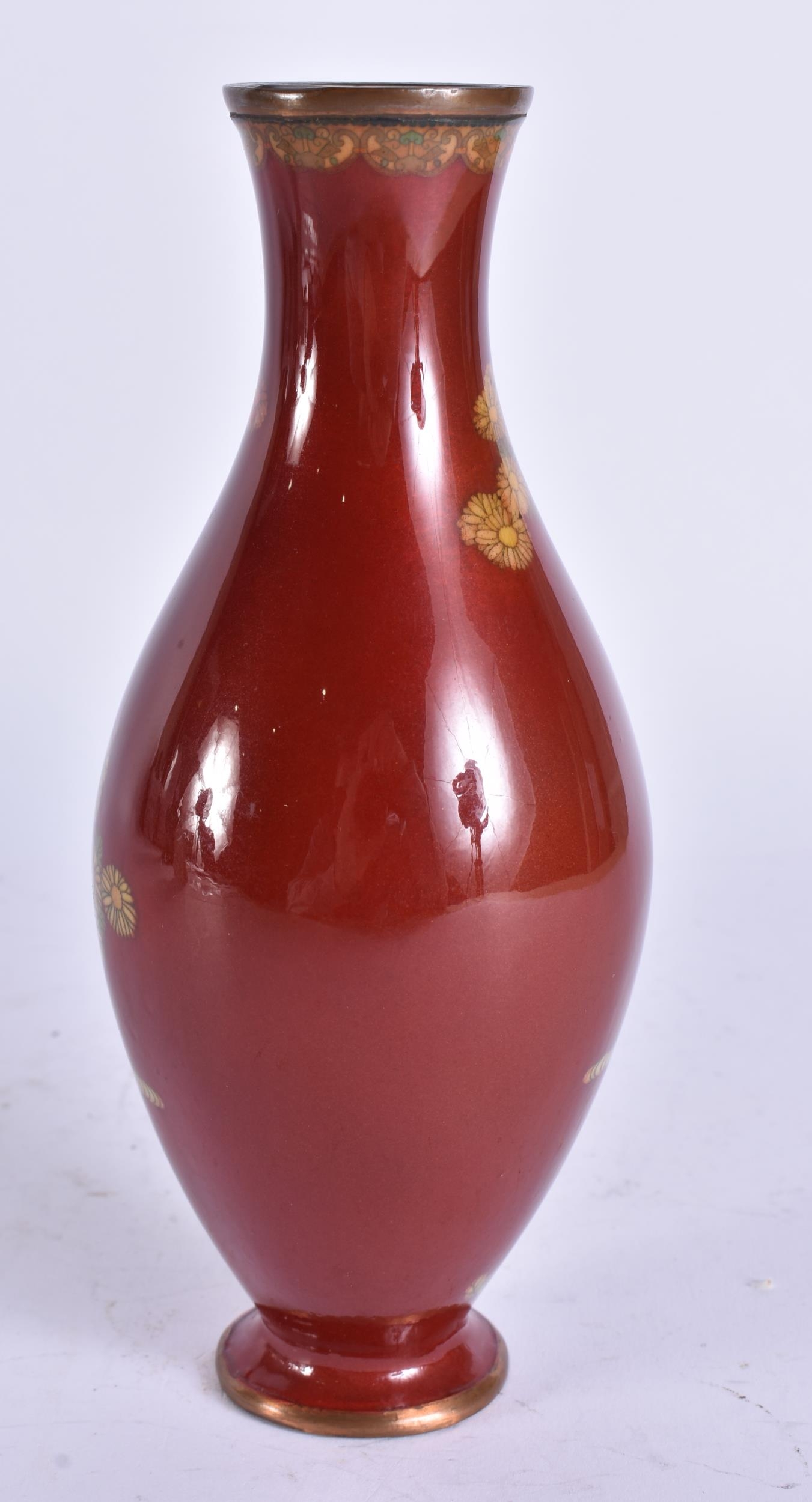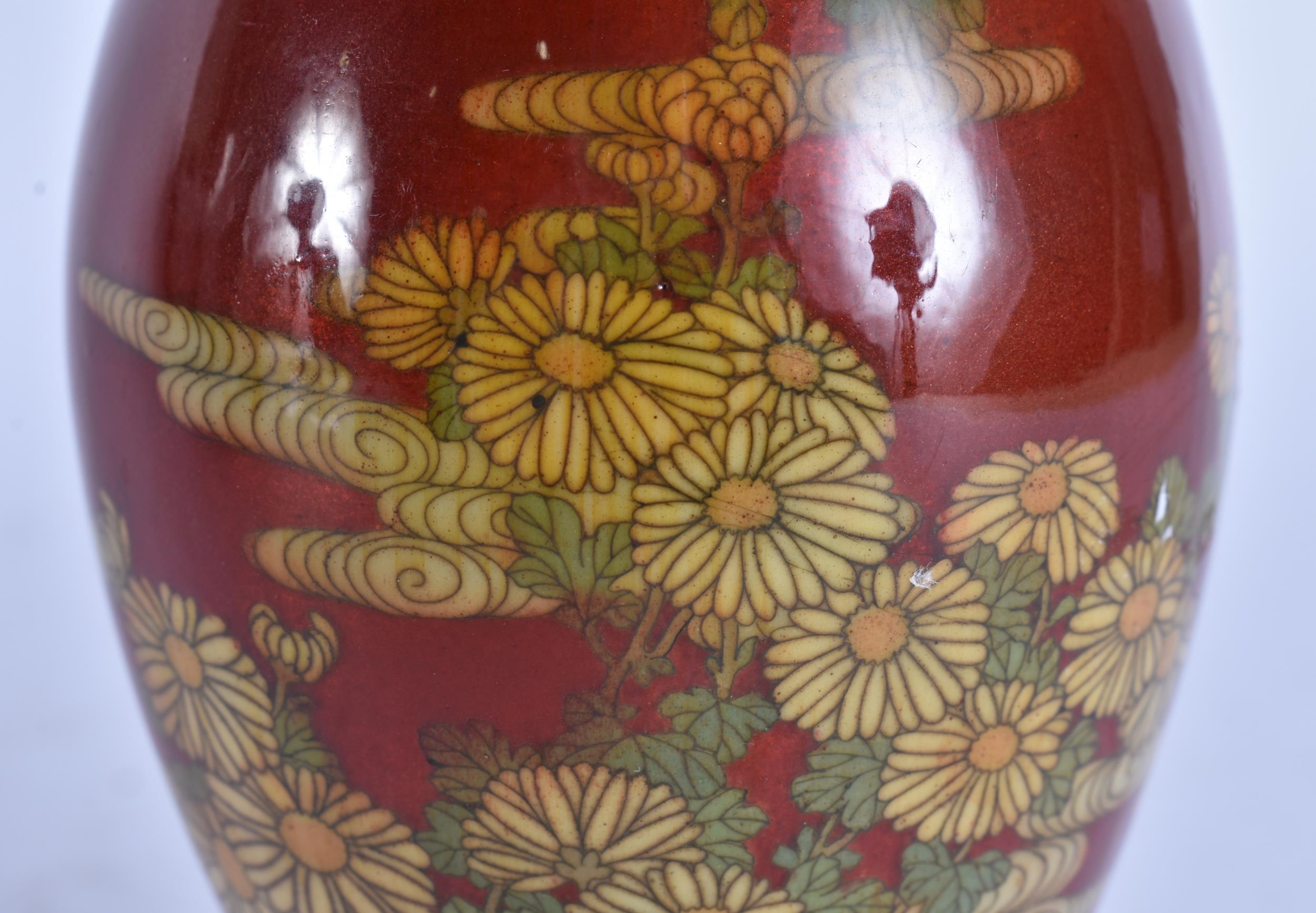 A 19TH CENTURY JAPANESE MEIJI PERIOD CLOISONNE ENAMEL VASE. 18 cm high.