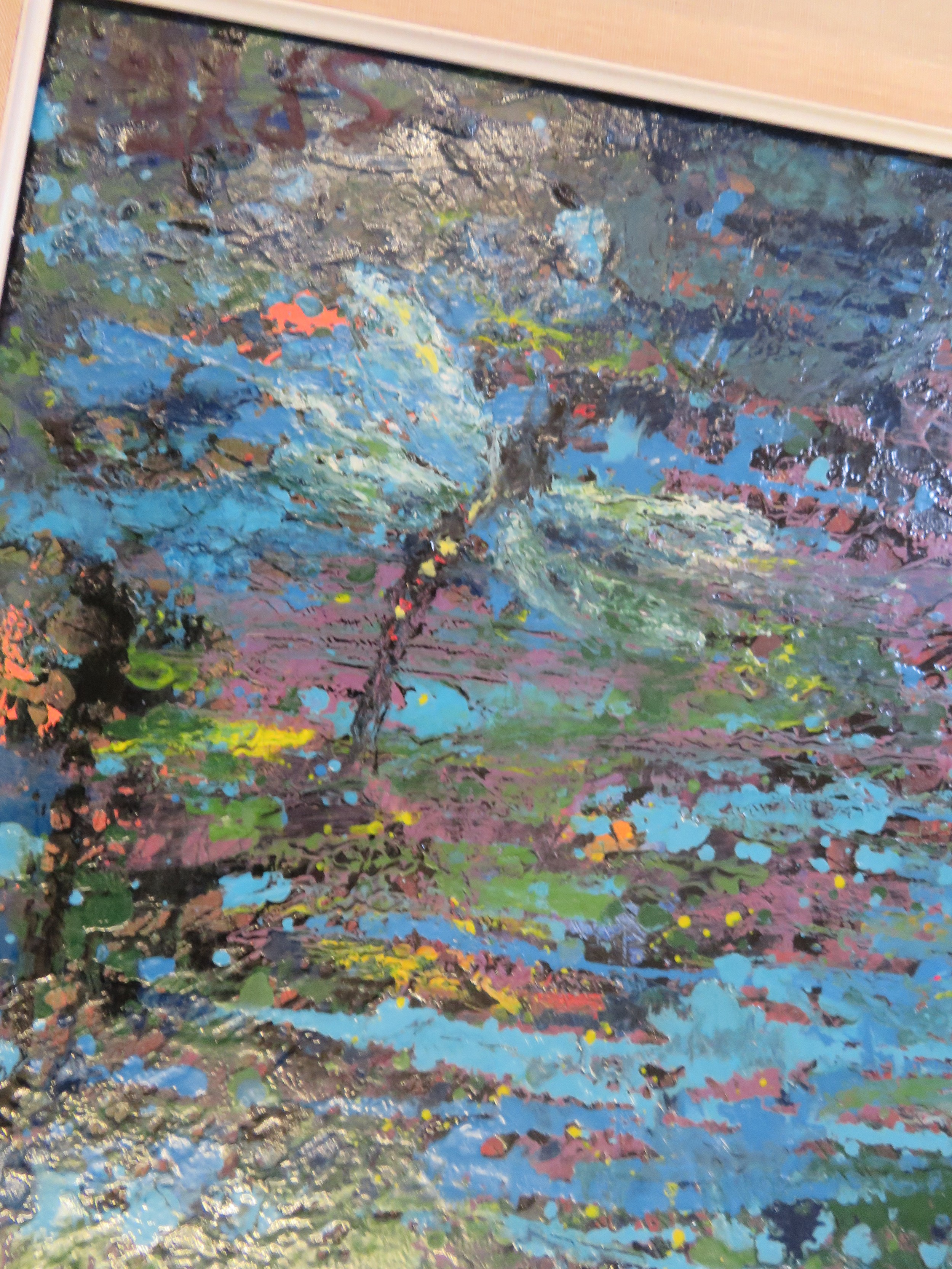 An oil painting on canvas depicting 'Dragonfly', Mrs. Stella Pye, 1 Montpellier Terrace, Torquay 1962.
