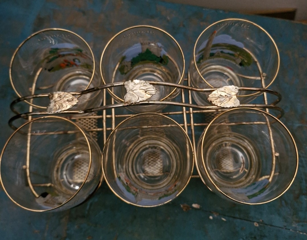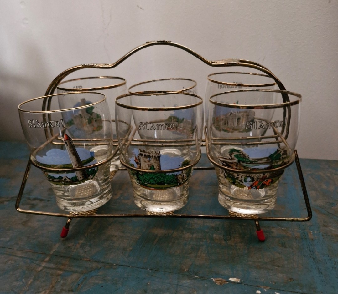An old set of Slainte Tudorcraft Irish Souvenir glasses.