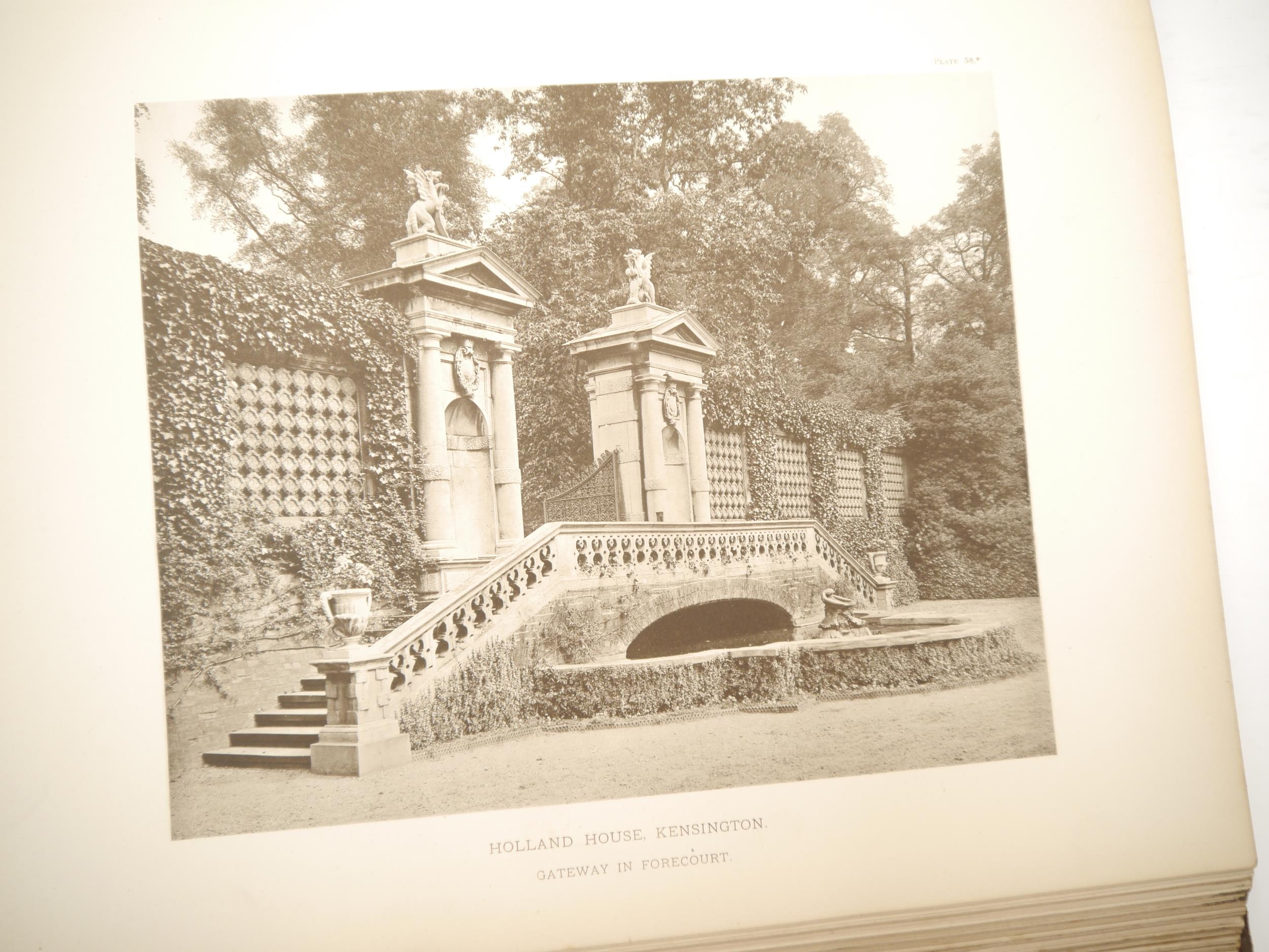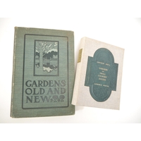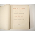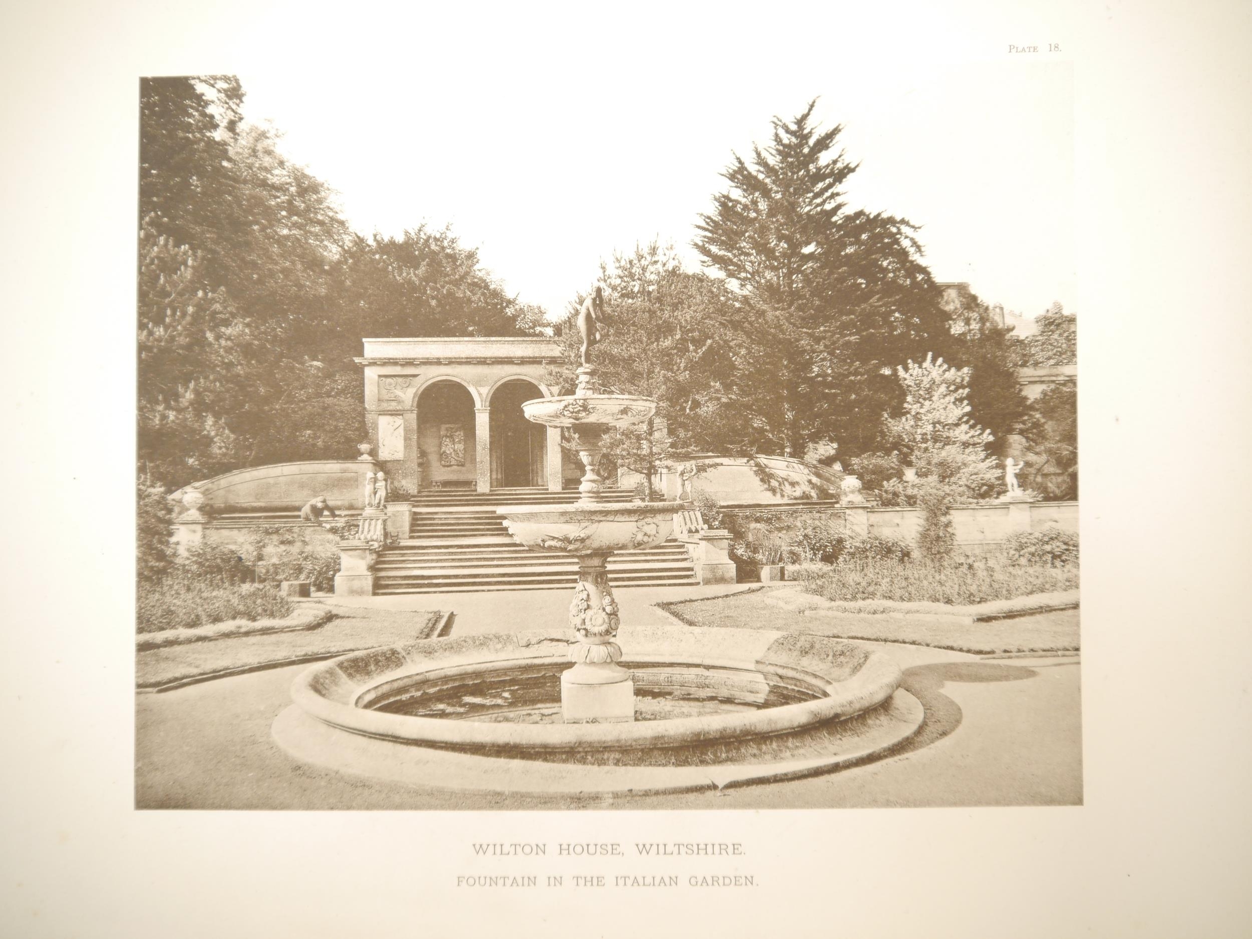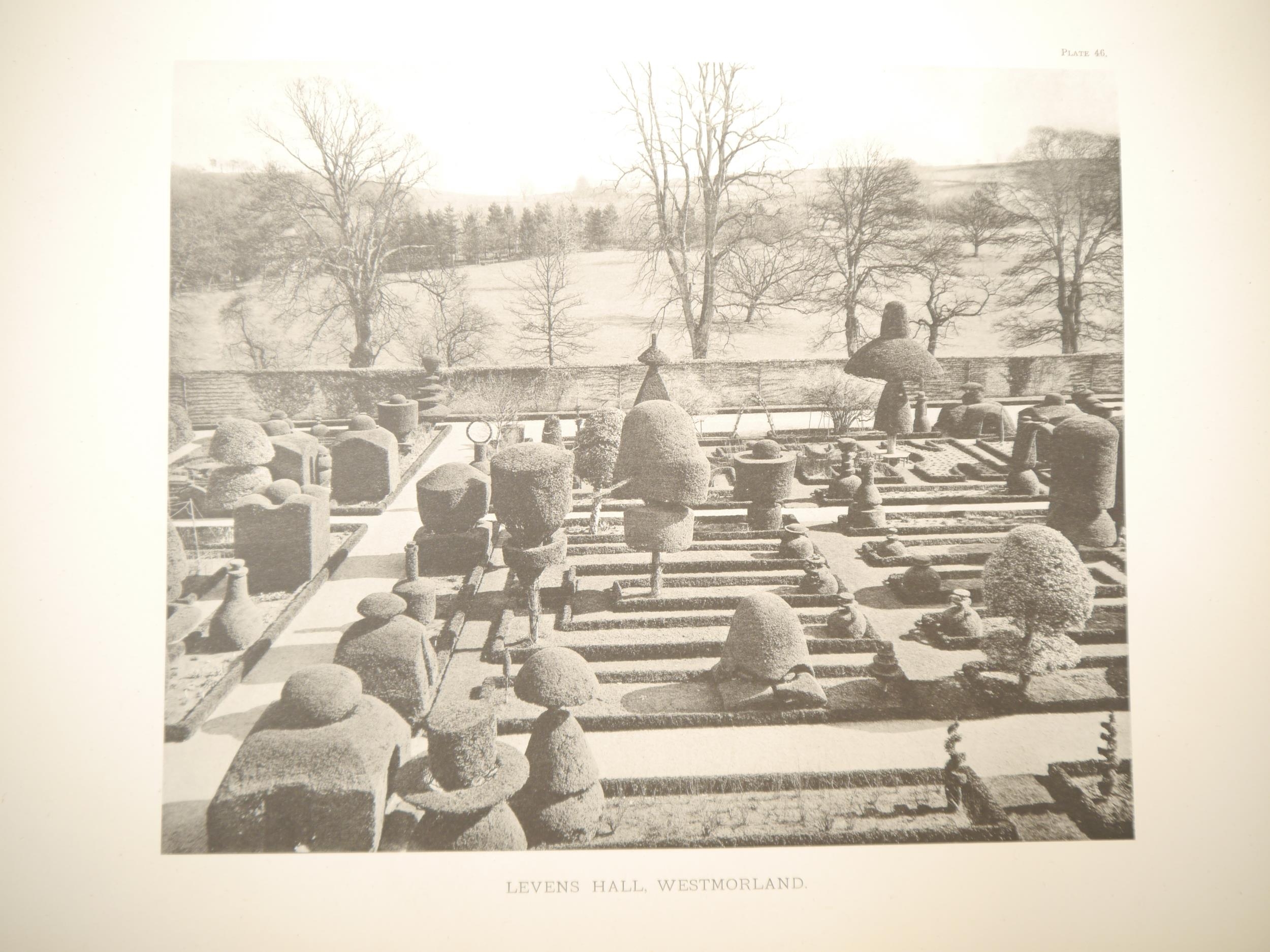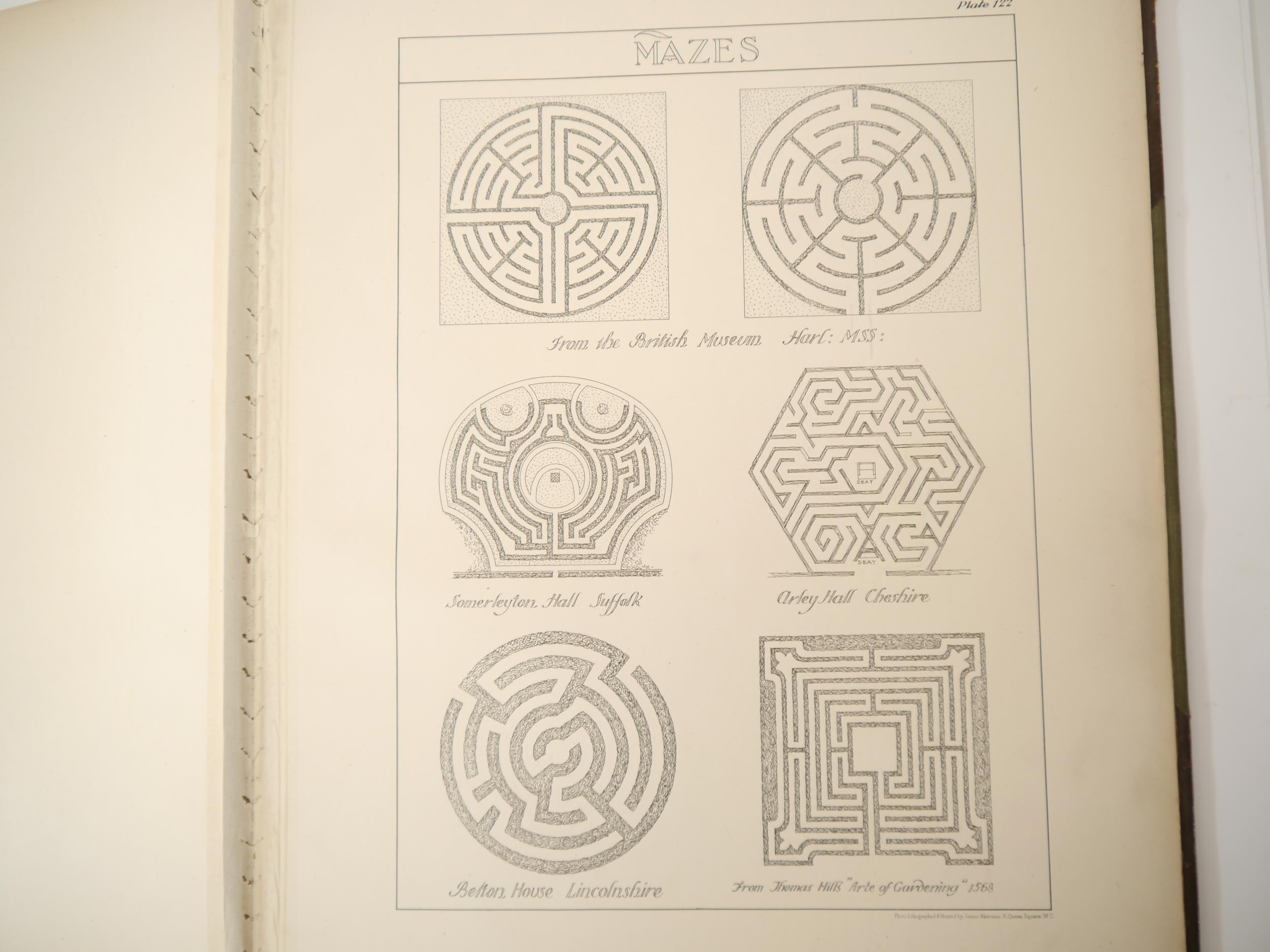H. Inigo Triggs: 'Formal Gardens in England and Scotland - Their Planning and Arrangement, Architectural and Ornamental Features', London, Batsford, 1902, six page list of subscribers, 125 plates as called for (of which 72 from drawings by Trigg and L. Rome Guthrie, and 53 from photographs by Charles Latham), xxiv,63,[1]pp, elephant folio, original half green morocco gilt over olive cloth (slightly worn), all edges gilt. An impressive work illustrative of estates and their gardens produced during the turn of the century revival of interest in the formal garden by Henry Inigo Triggs (1876-1923), one of the foremost proponents of formal garden design and country house architecture of the period.