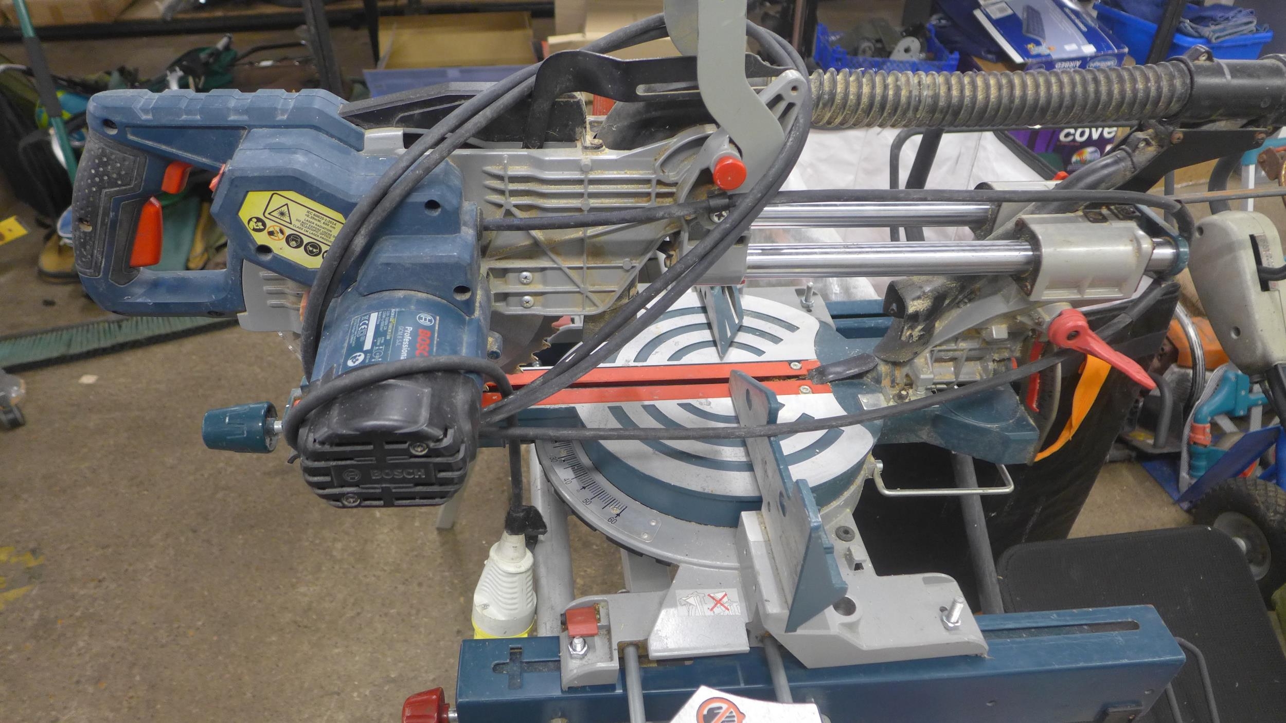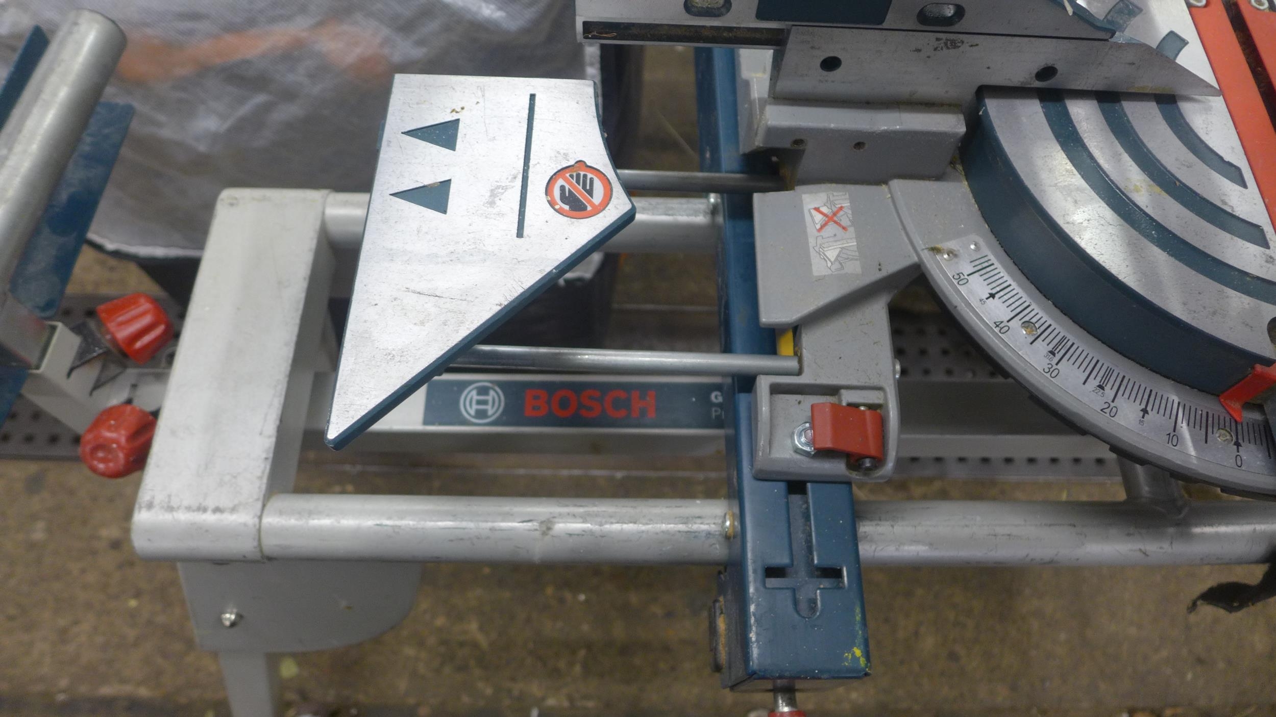 A Bosch Professional GCM85JL, 110V chop saw with a Bosch GTA2600 with saw stand and various accessories