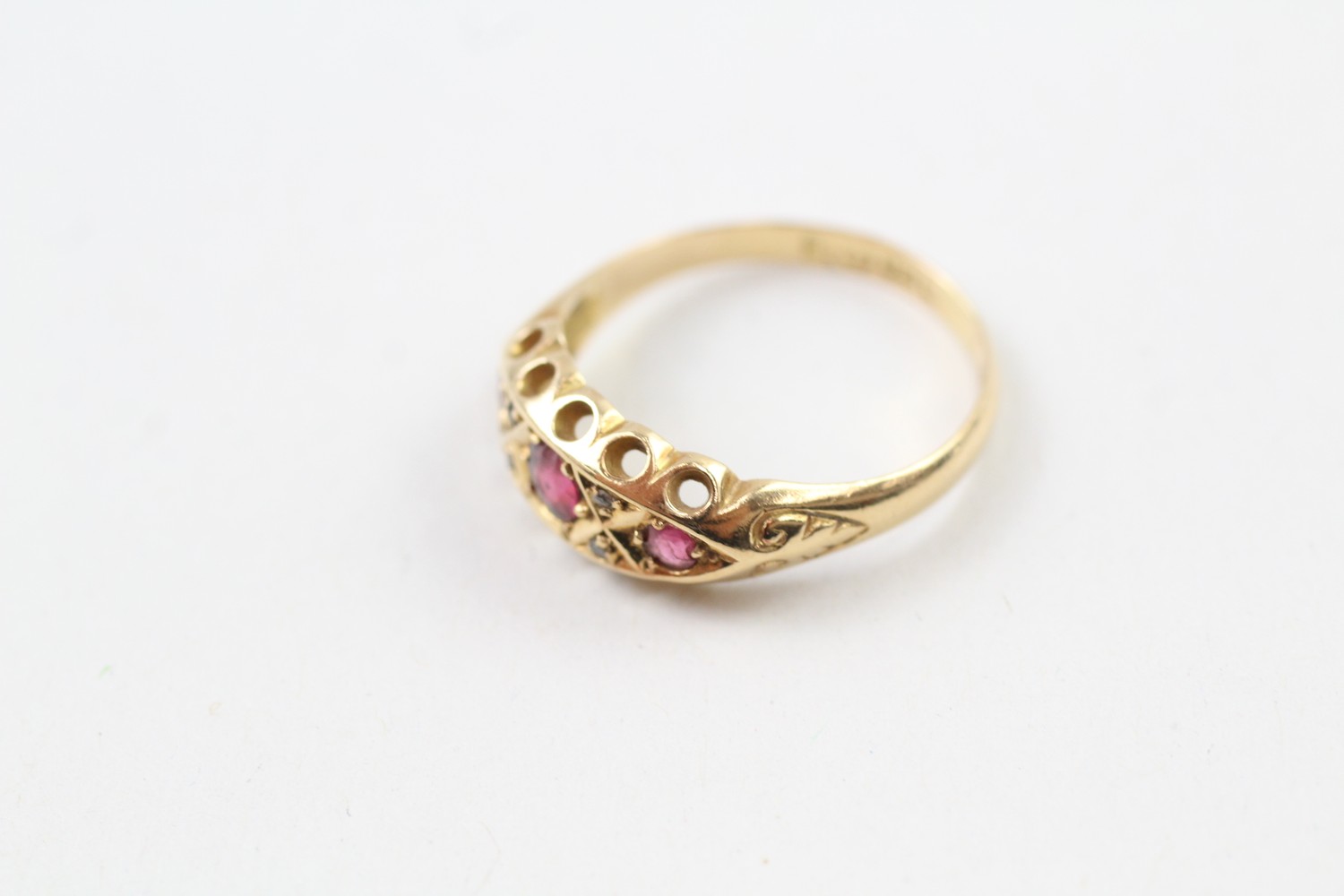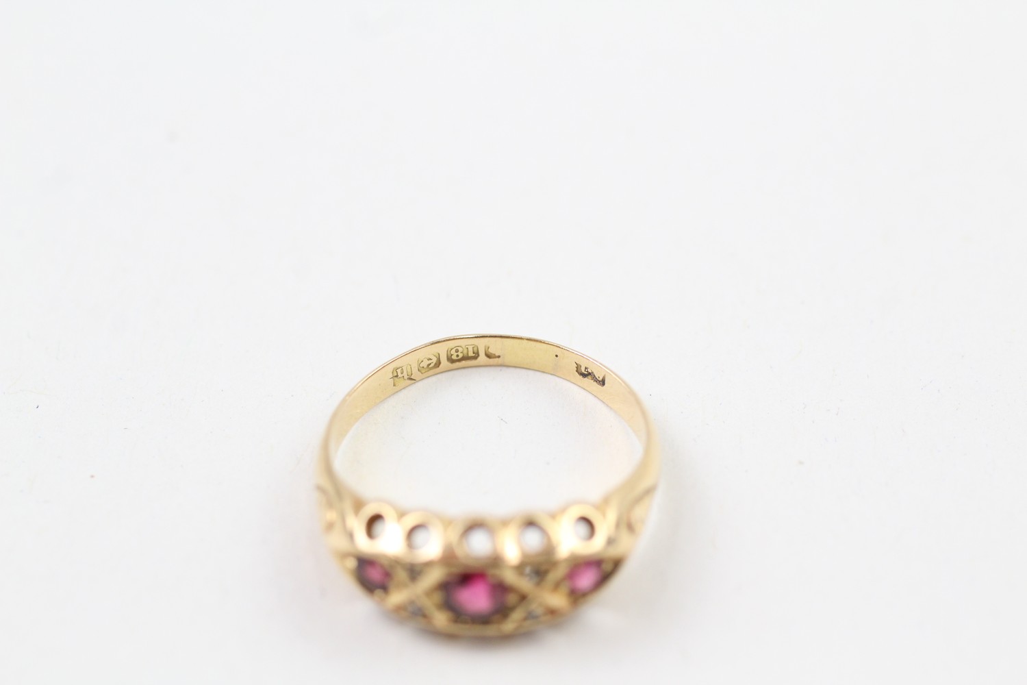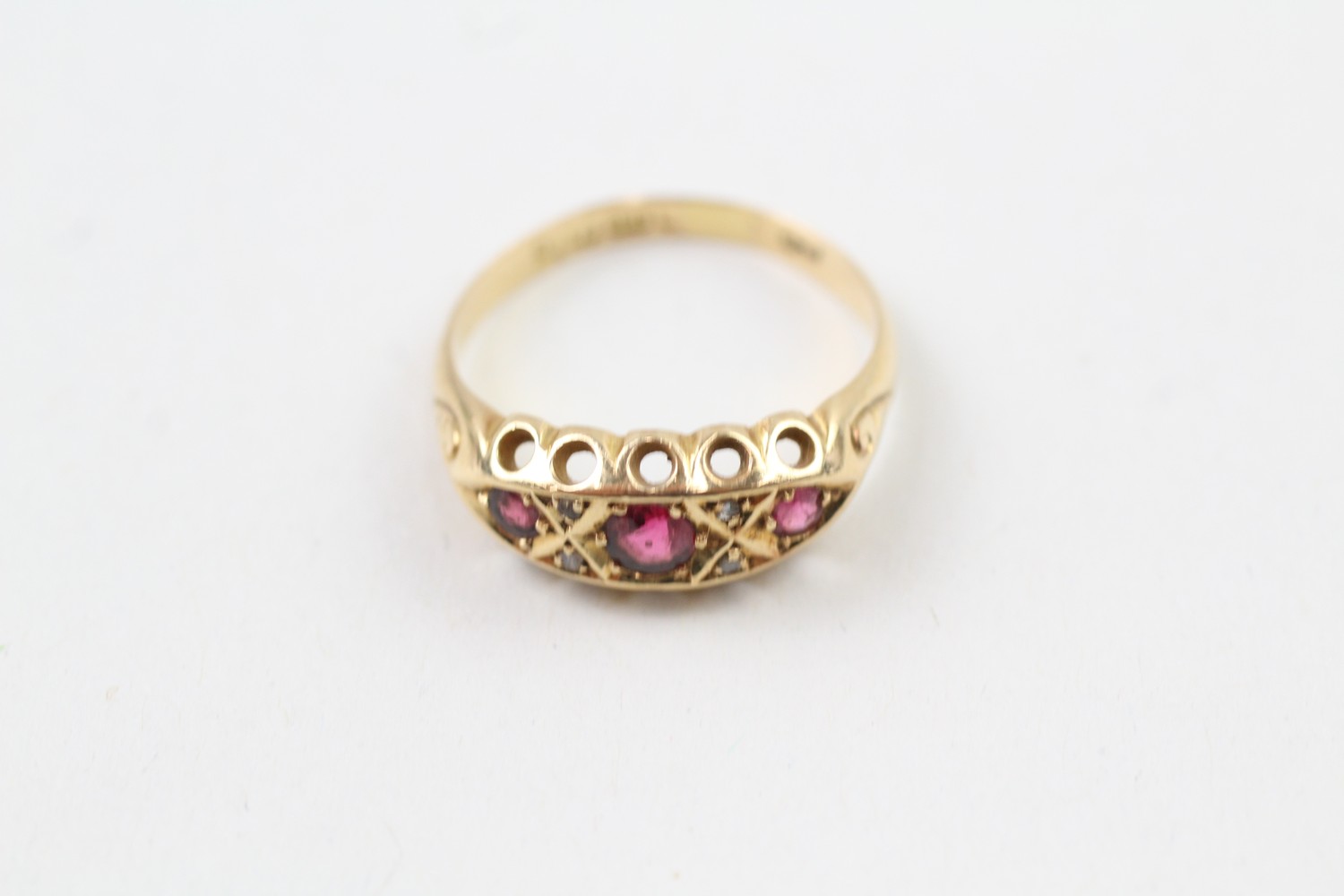 AN 18CT GOLD, DIAMOND AND RUBY PASTE DRESS RING, Weight: 3.0gms