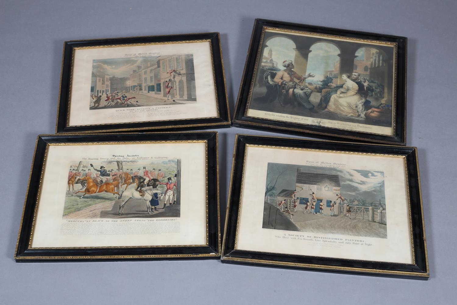 AFTER H ALKEN, Sporting Anecdotes - A Society of Distinguished Painters and Quick Work Without a Contract, The Hunting Sweep and the Duke, engraving with hand colouring, 36cm x 47.5cm; together with Wm Say after Fradelle - Othello..., aquatint, 41.5cm x 46cm