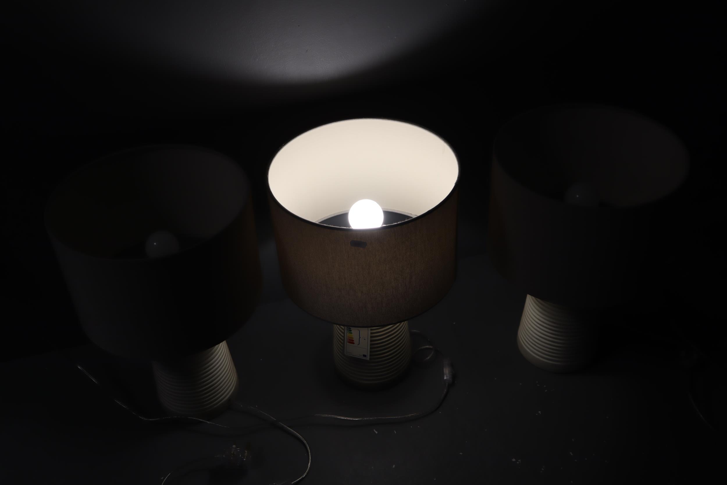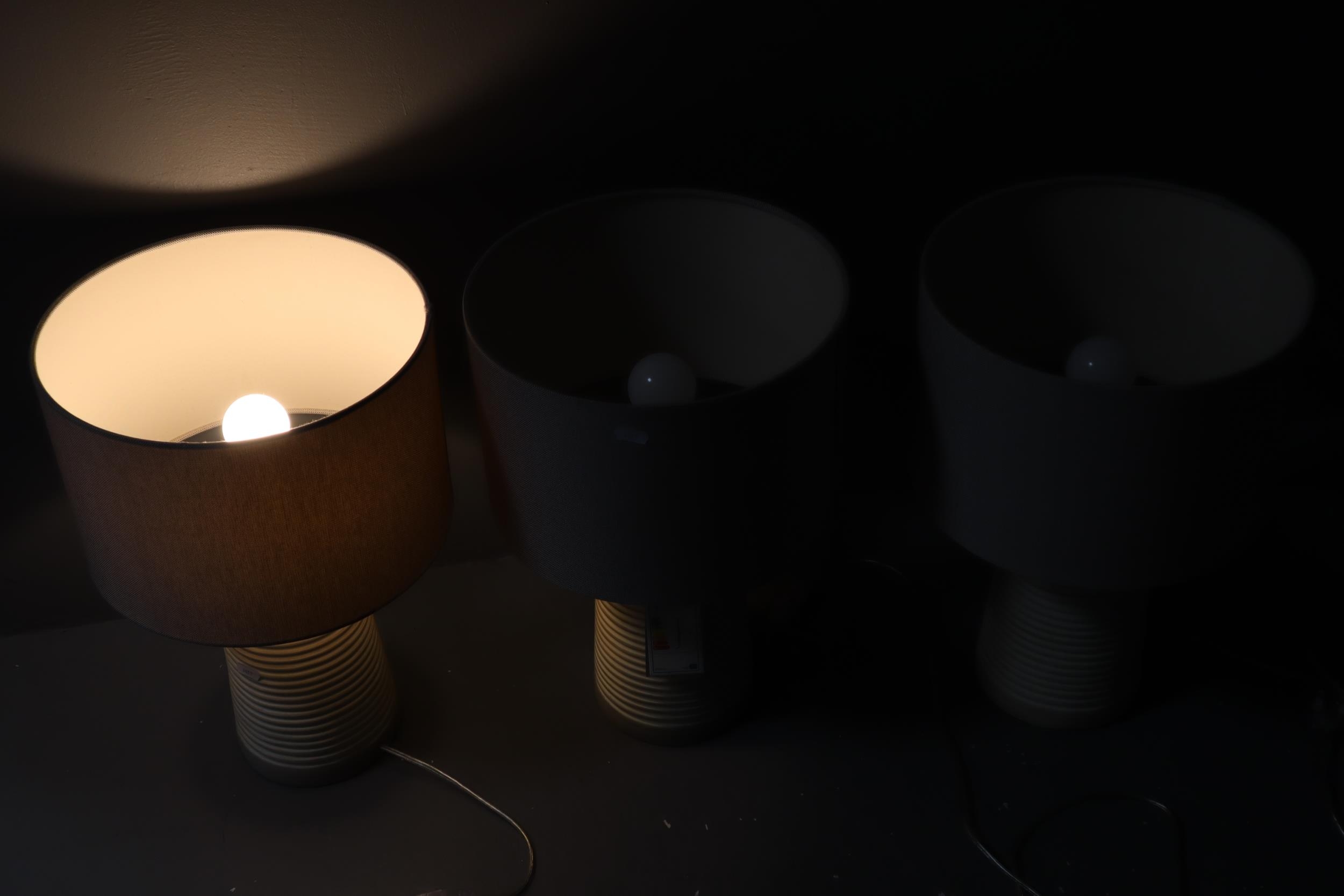 Set of Three Contemporary Table Lamps, Light Up When Tested. All Approx 19" Tall