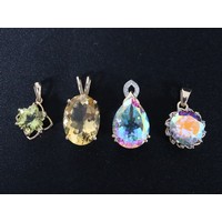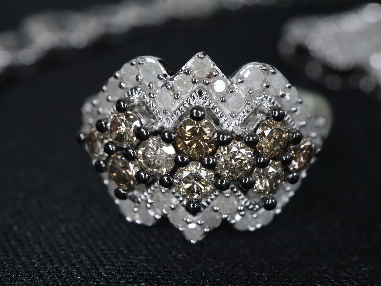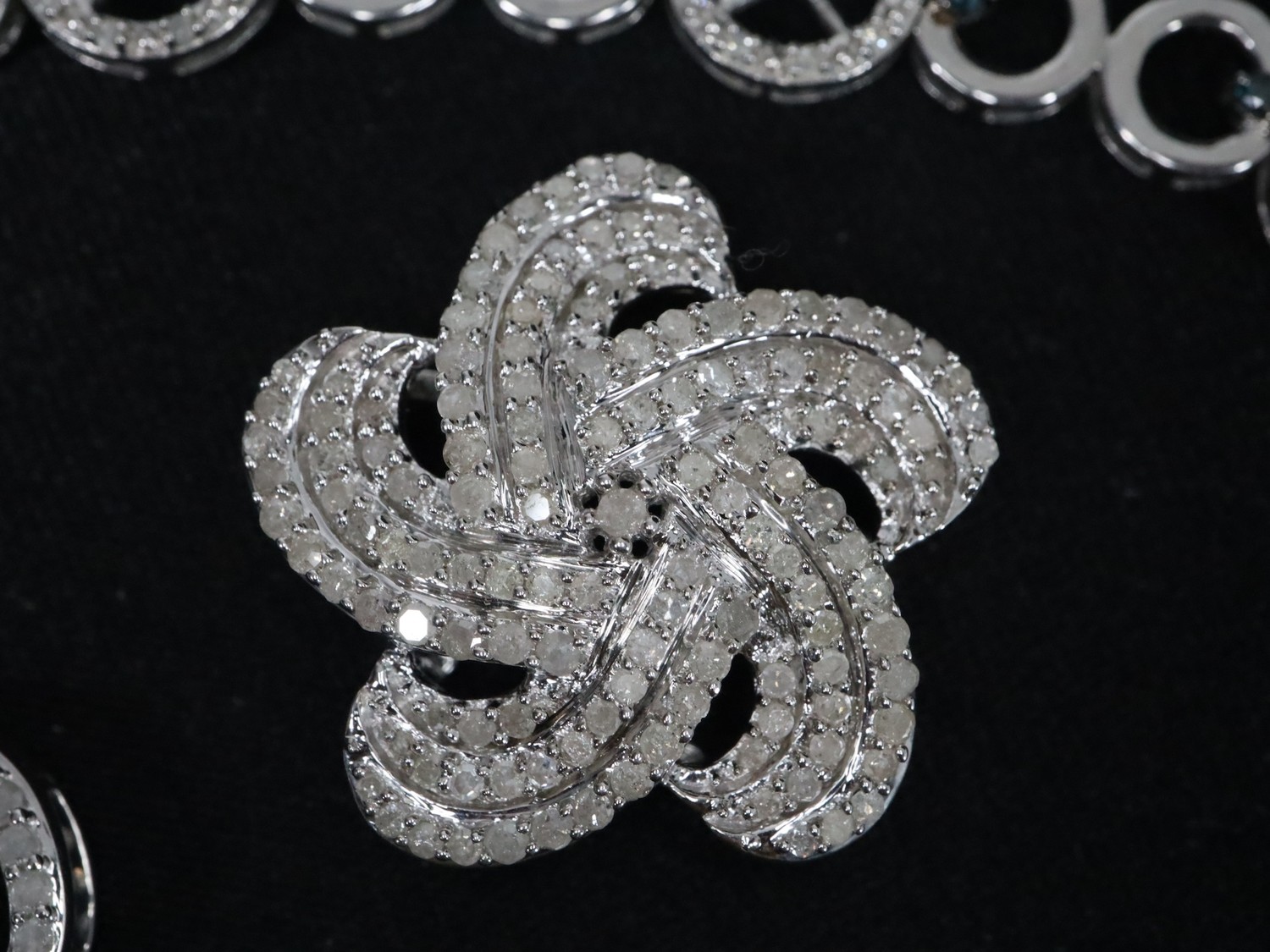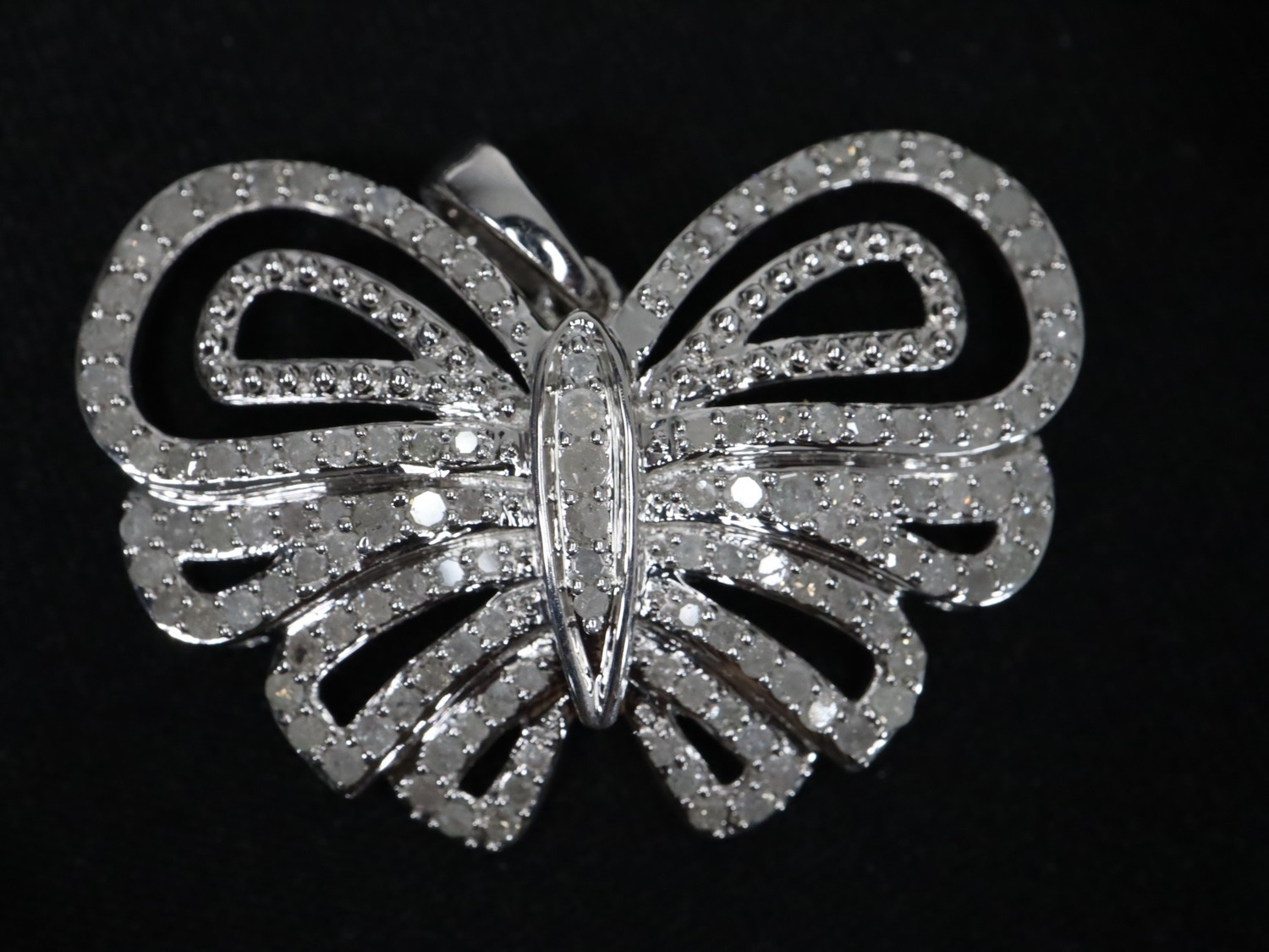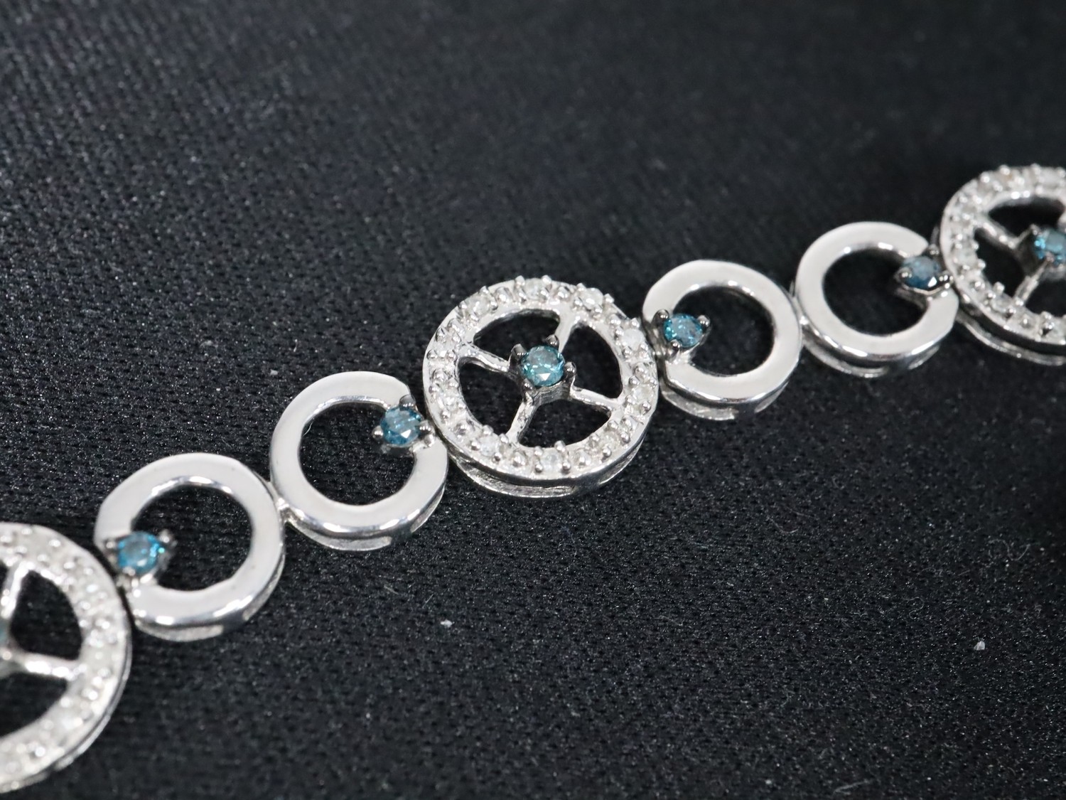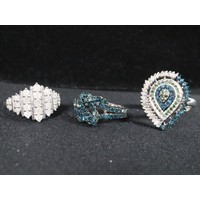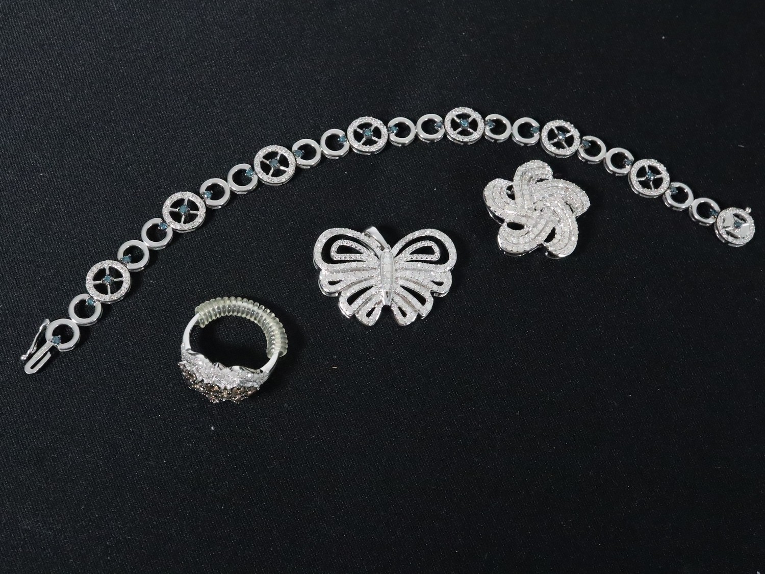 1.25ct Champagne & White Diamond Sterling Silver Ring, 1.05ct Diamond Sterling Silver Butterfly Pendant, 1.05ct Diamond Sterling Silver Pendant & 3/4ct Blue & White Diamond Sterling Silver Bracelet (7.5")