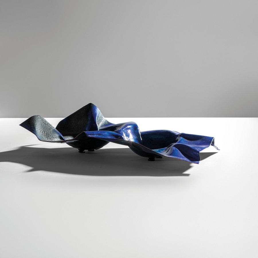 Strasin. Centrotavola. Rame smaltato a gran fuoco. Esecuzione Del Campo, Torino anni '90.