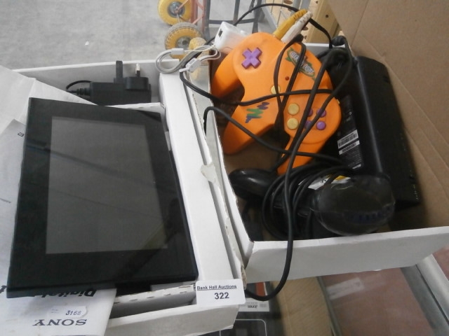 Lot including mega joy game pad, Sony digital photo frame, wii controller etc