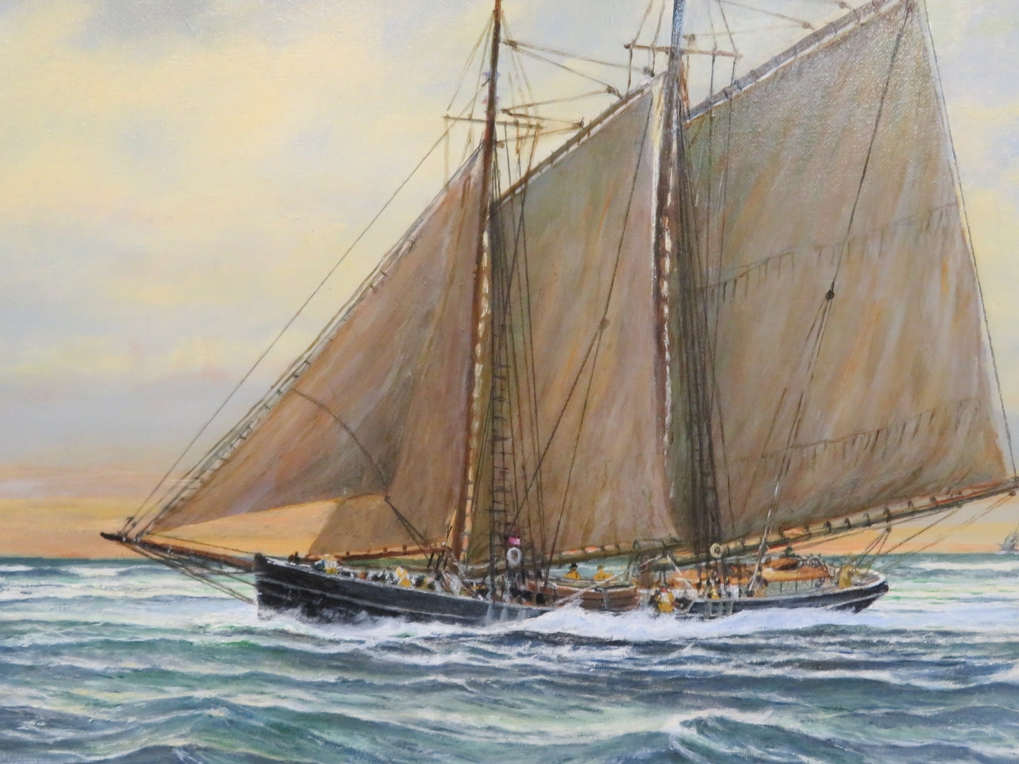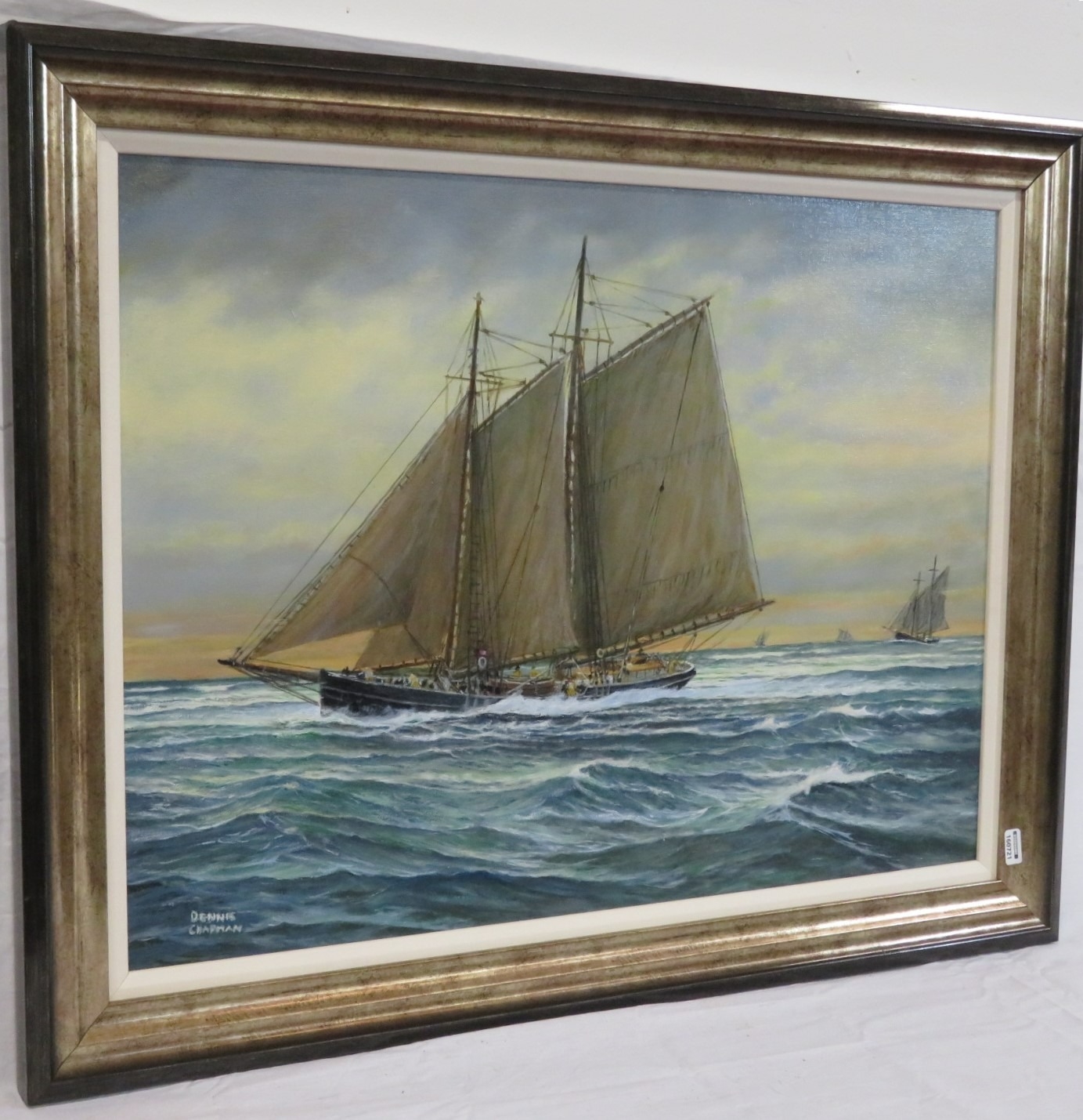 Dennis Chapman 'Gaff rigged boats under sail' oil on board, 45x60cm, signed