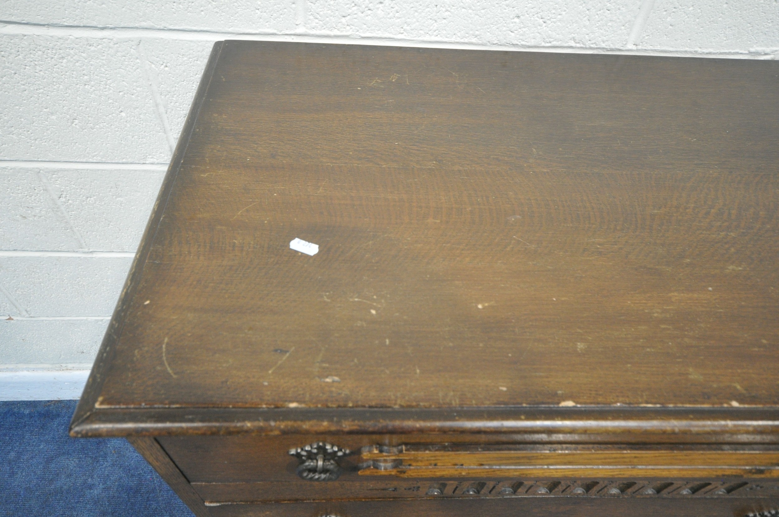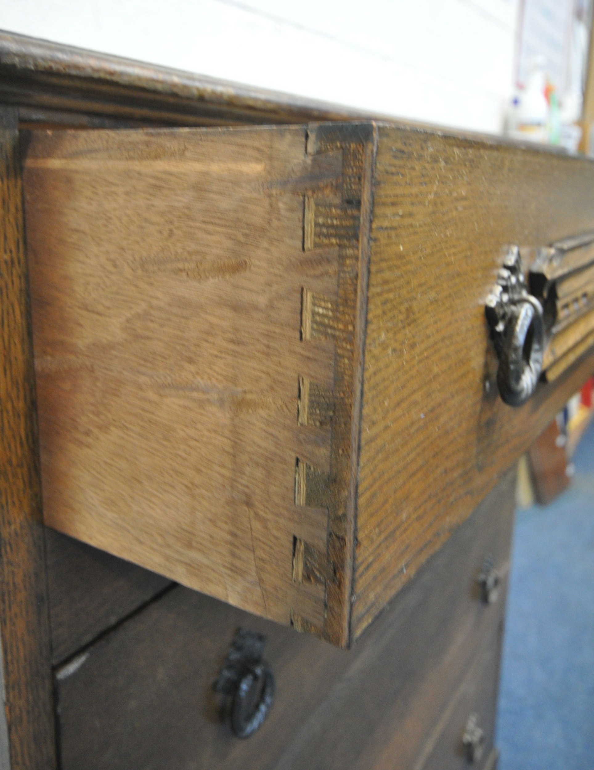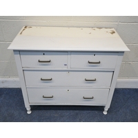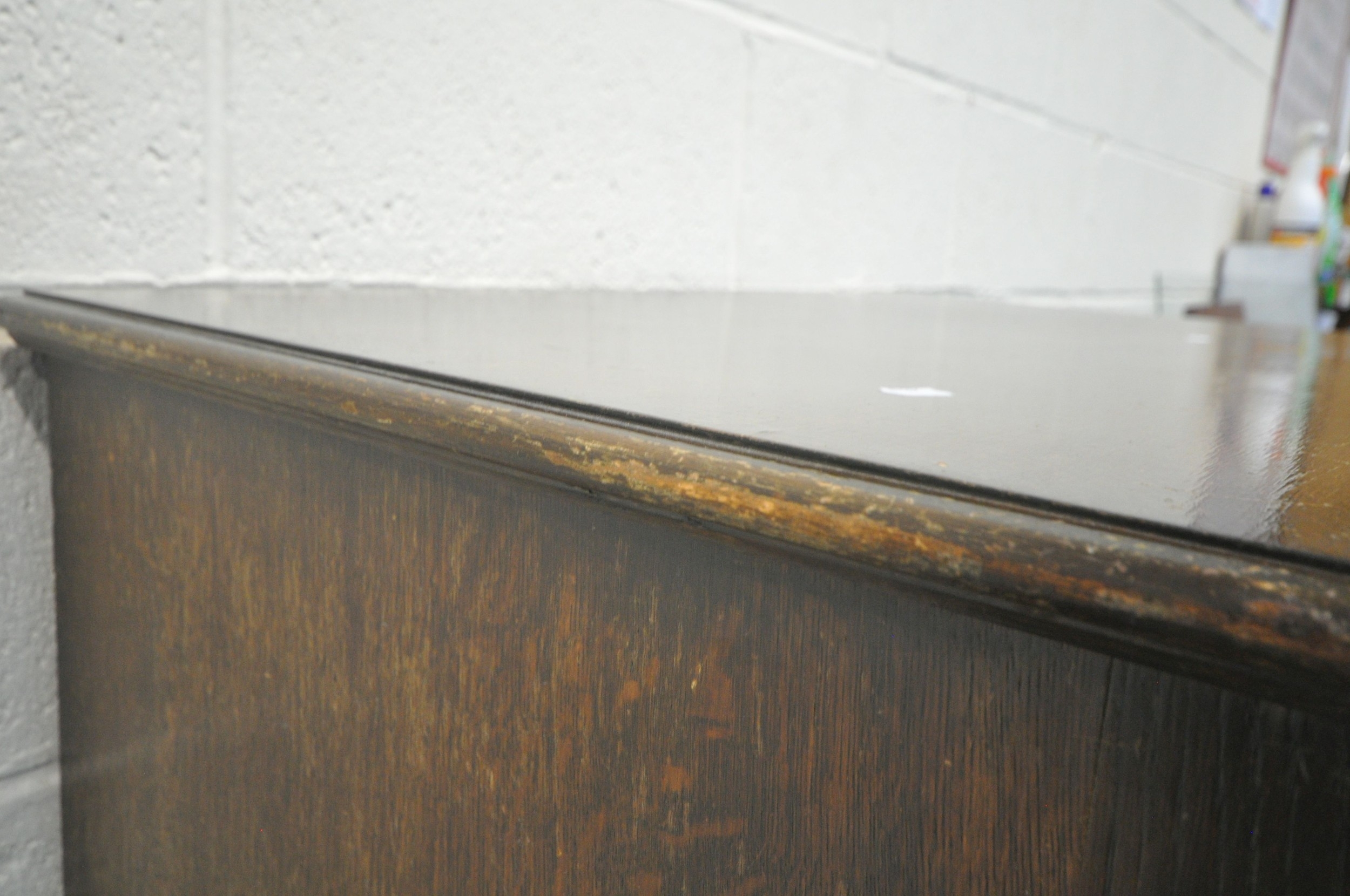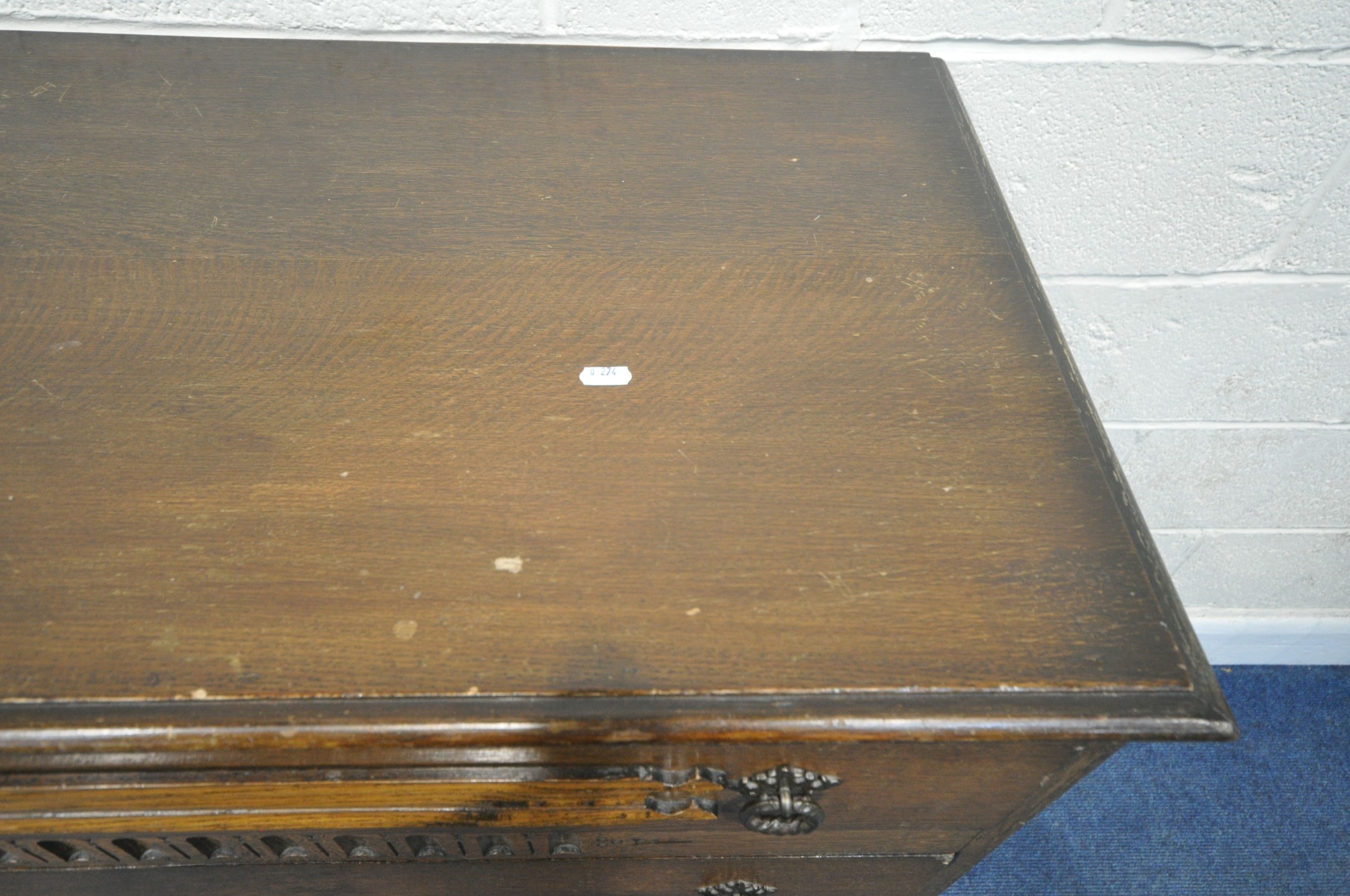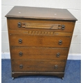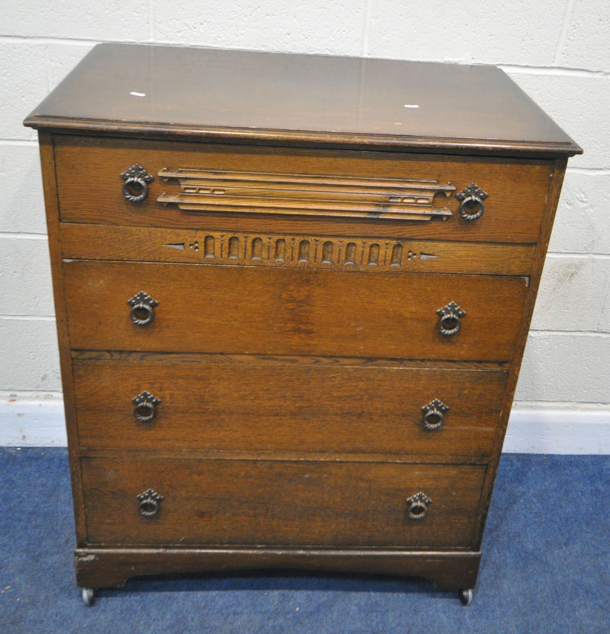 A 20TH CENTURY OAK CHEST OF FOUR DRAWERS, raised on castors, width 87cm x depth 42cm x height 108cm, condition report: marks and scuffs, other signs of usage