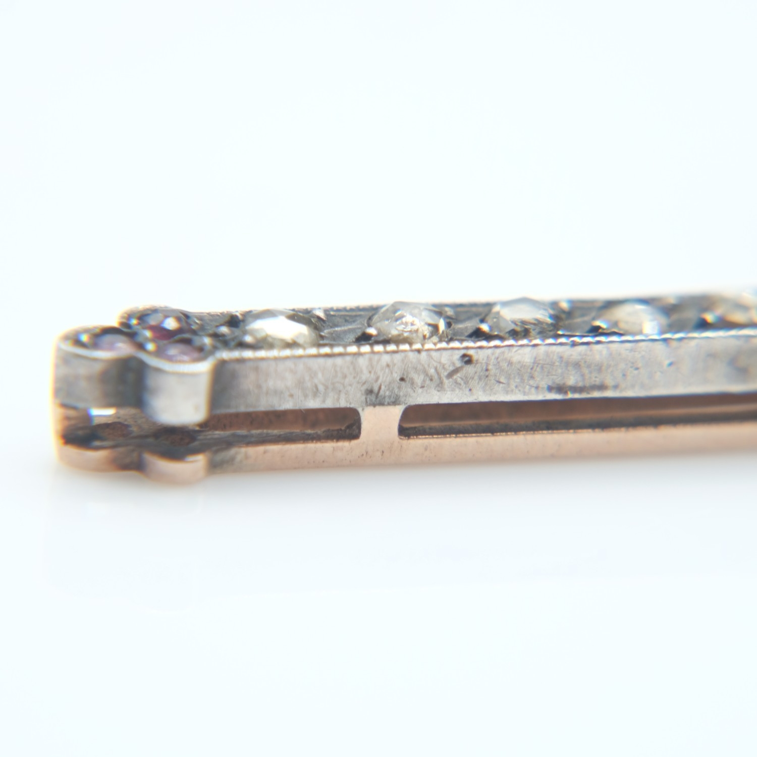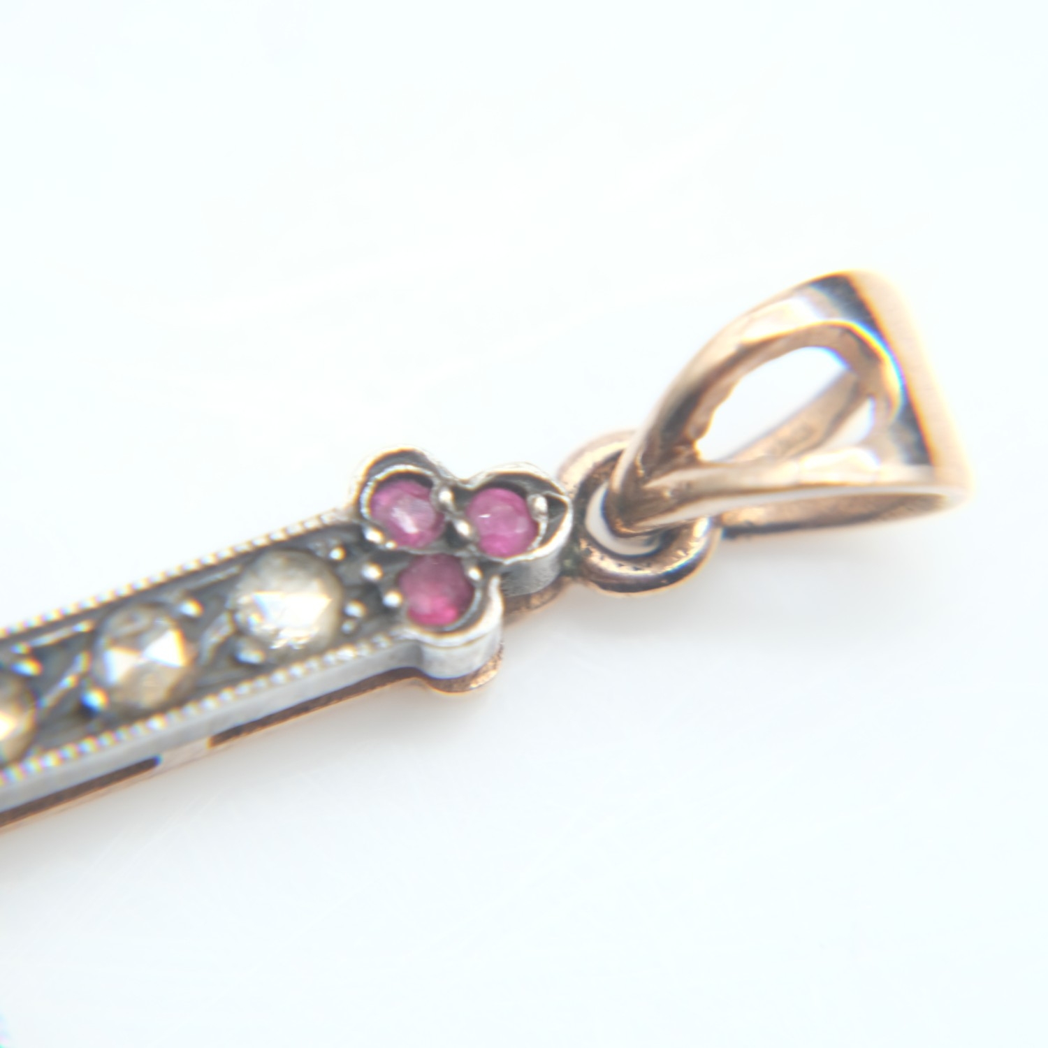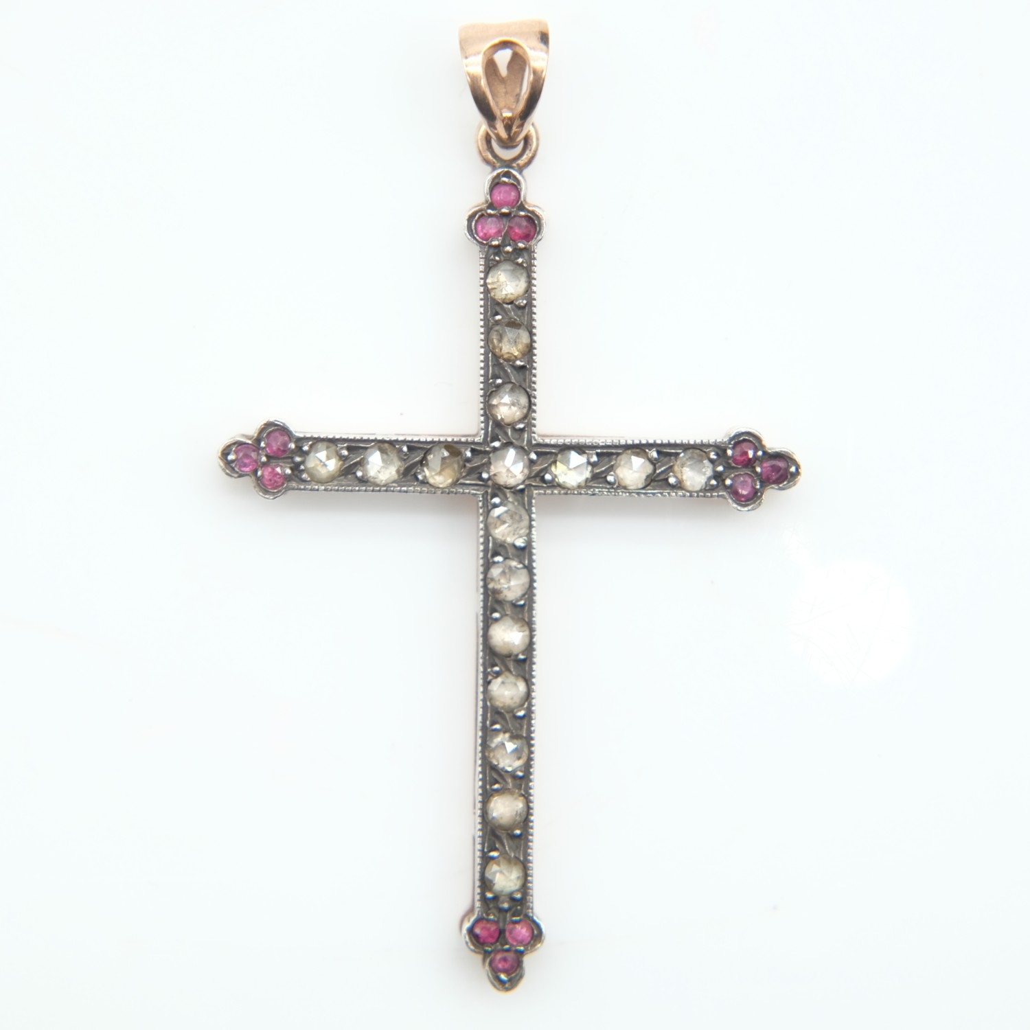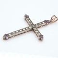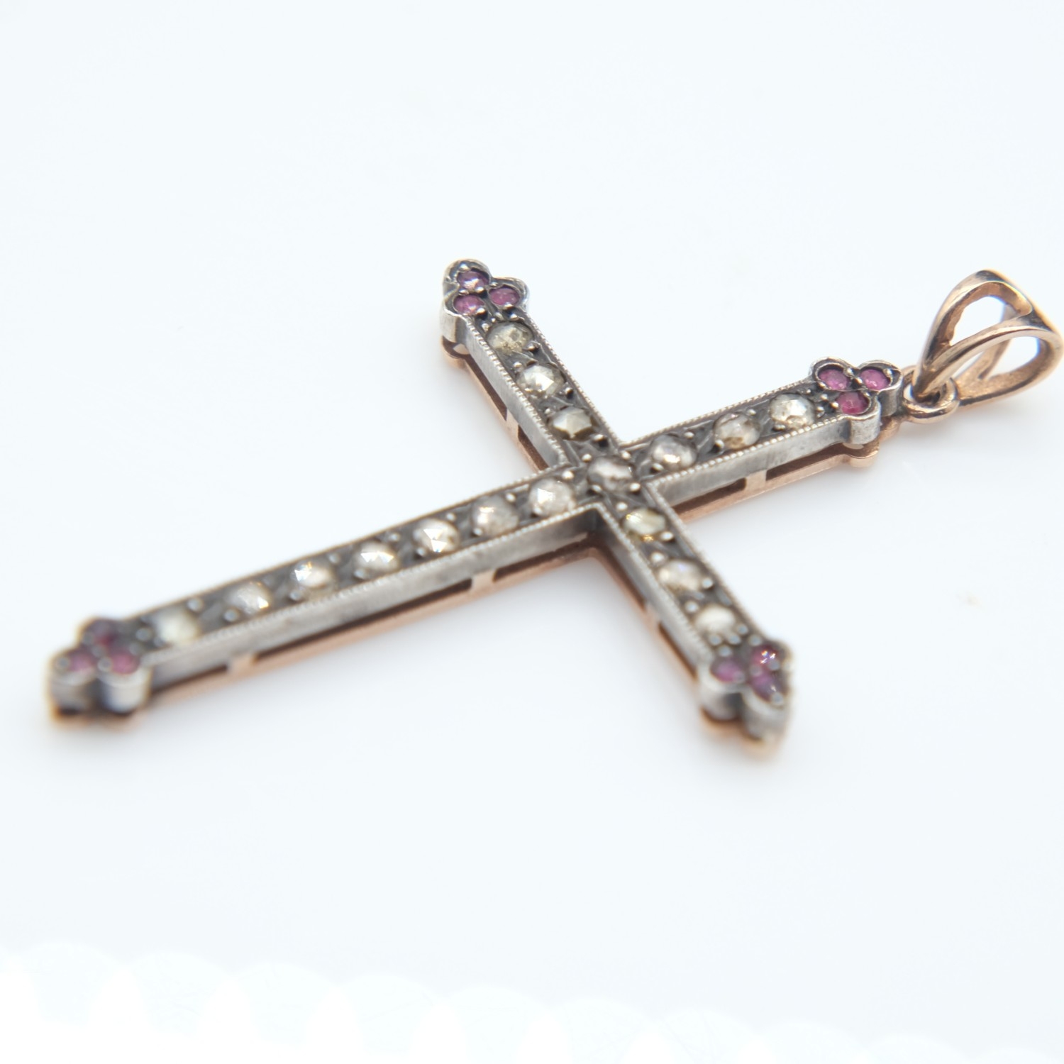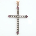 14ct rose gold and silver cross pendant set with rose cut diamonds and rubies, H: 60 mm, 7.1g. UK P&P Group 0 (£7+VAT for the first lot and £1+VAT for subsequent lots)