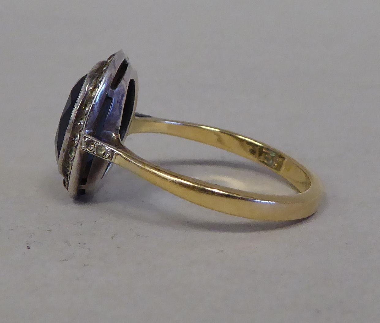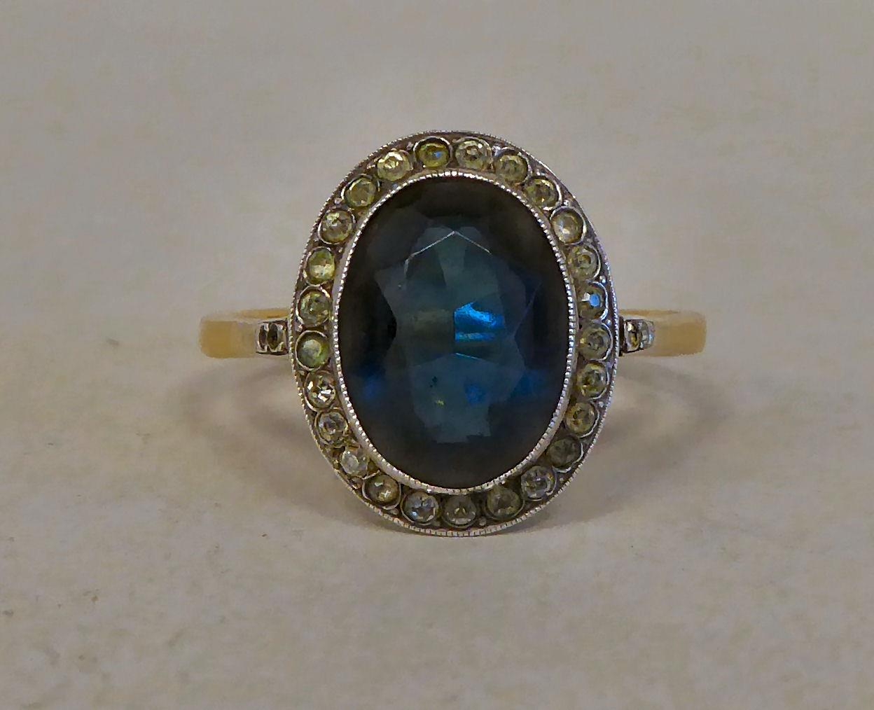 An 18ct gold cluster ring, set with blue and white stones (approx. weight 4.9 grams)