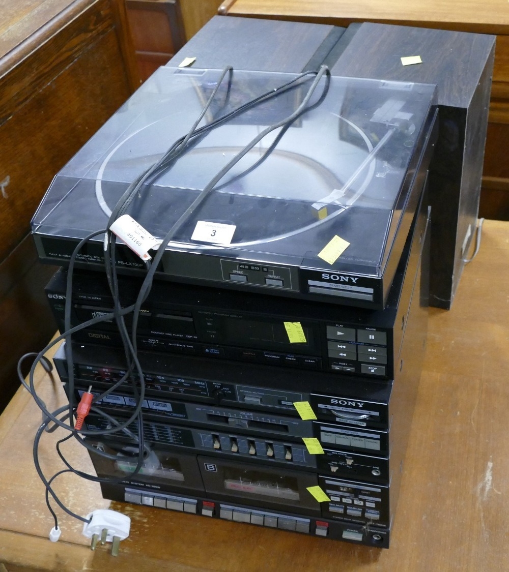 Sony stacking hi-fi system, turntable PSLX700P and two speakers