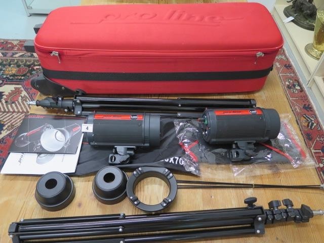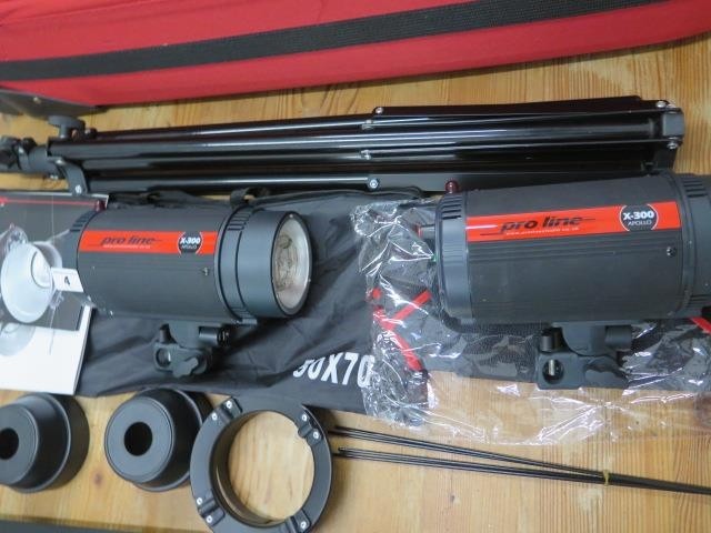 A Proline Apollo x-300 creative lighting two head photographic flash kit with hard case, in working order, retail price £185