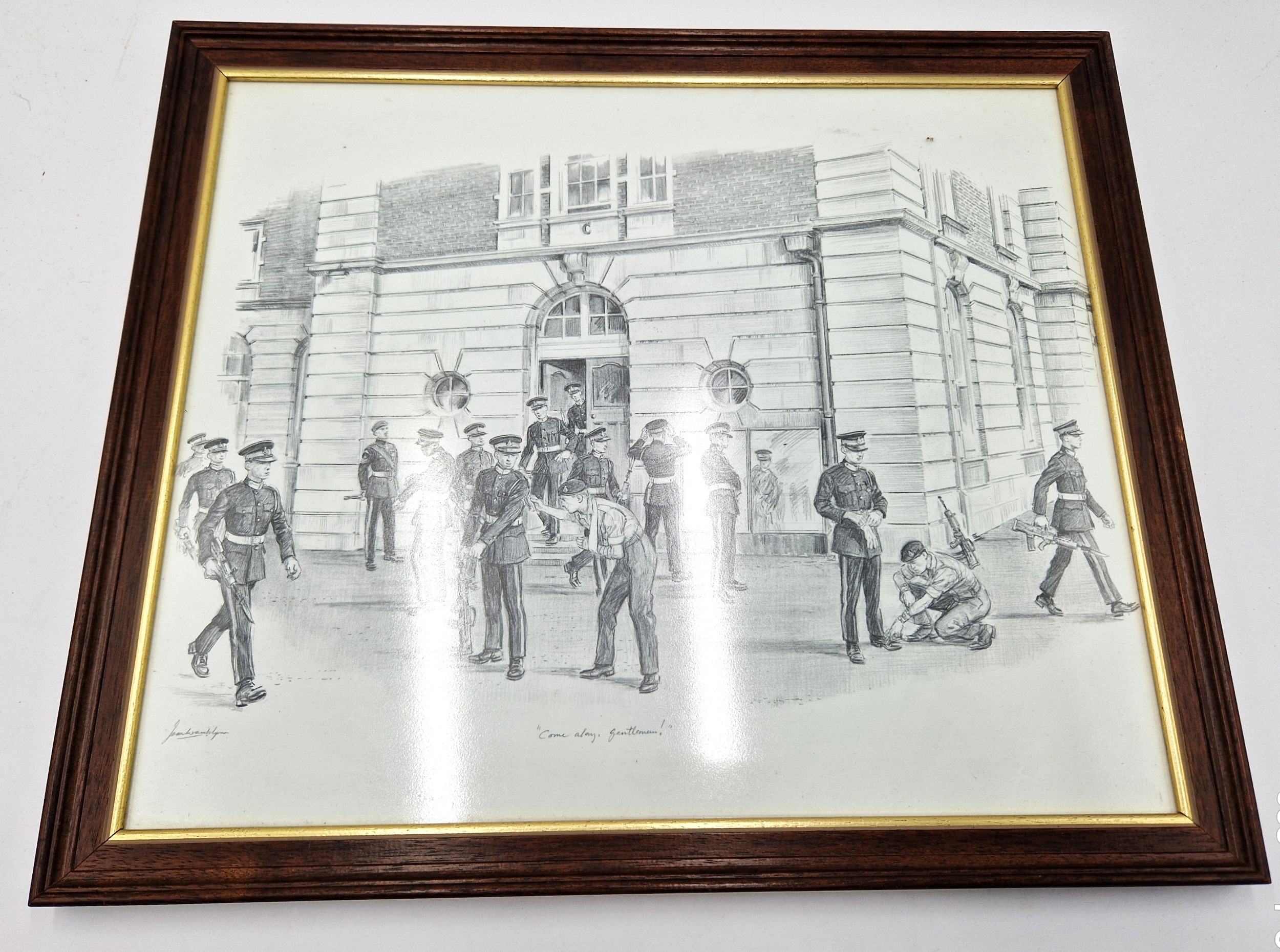 FRAMED & GLAZED Extra Large 47cm x 40cm PRINT "COME ALONG, GENTLEMEN" SANDHURST ROYAL MILITARY ACADEMY Signed By Joan Wanklyn